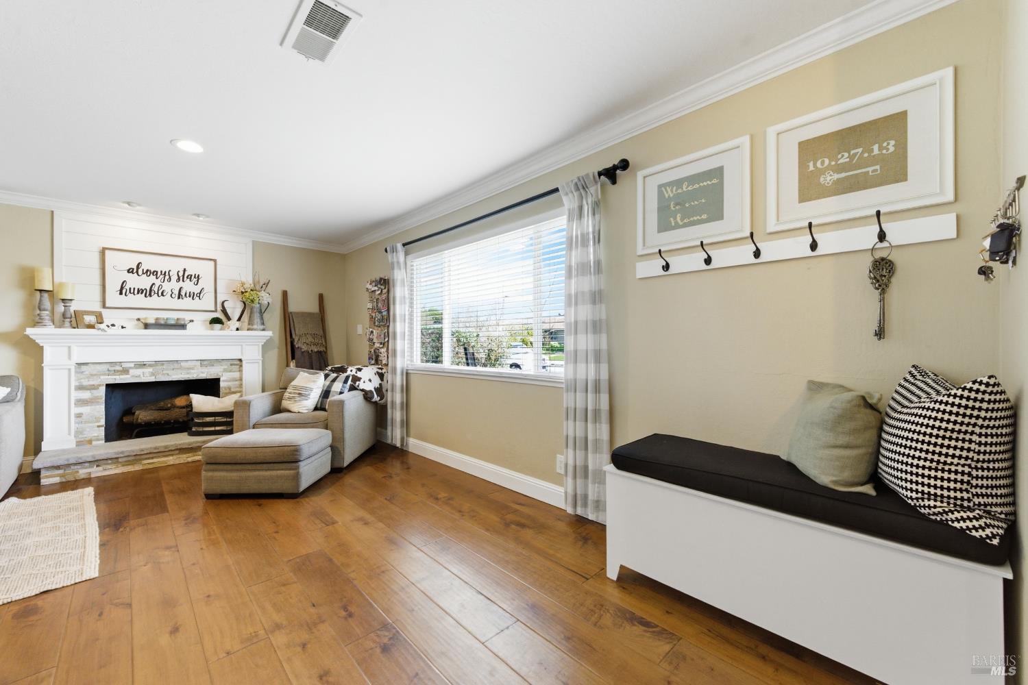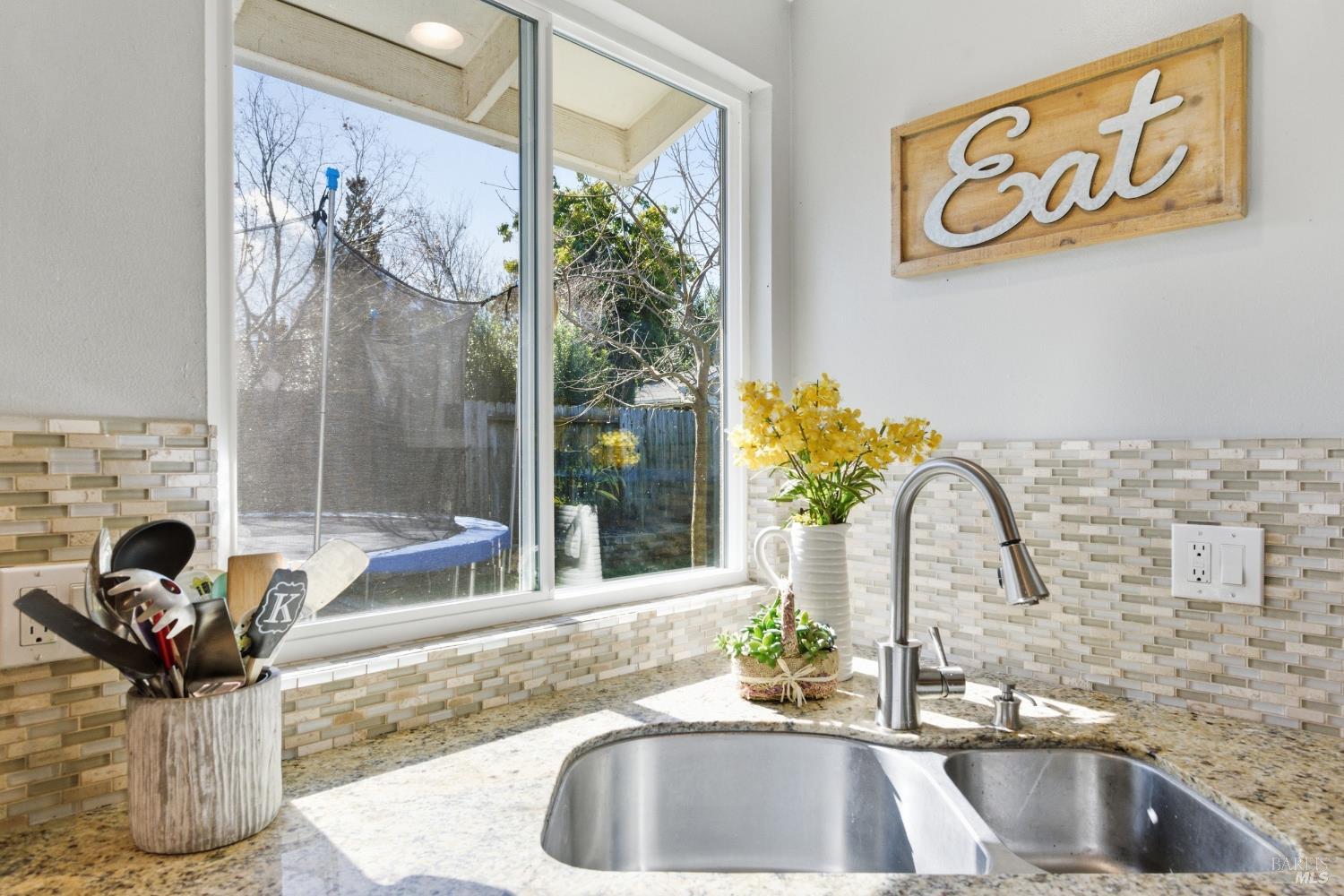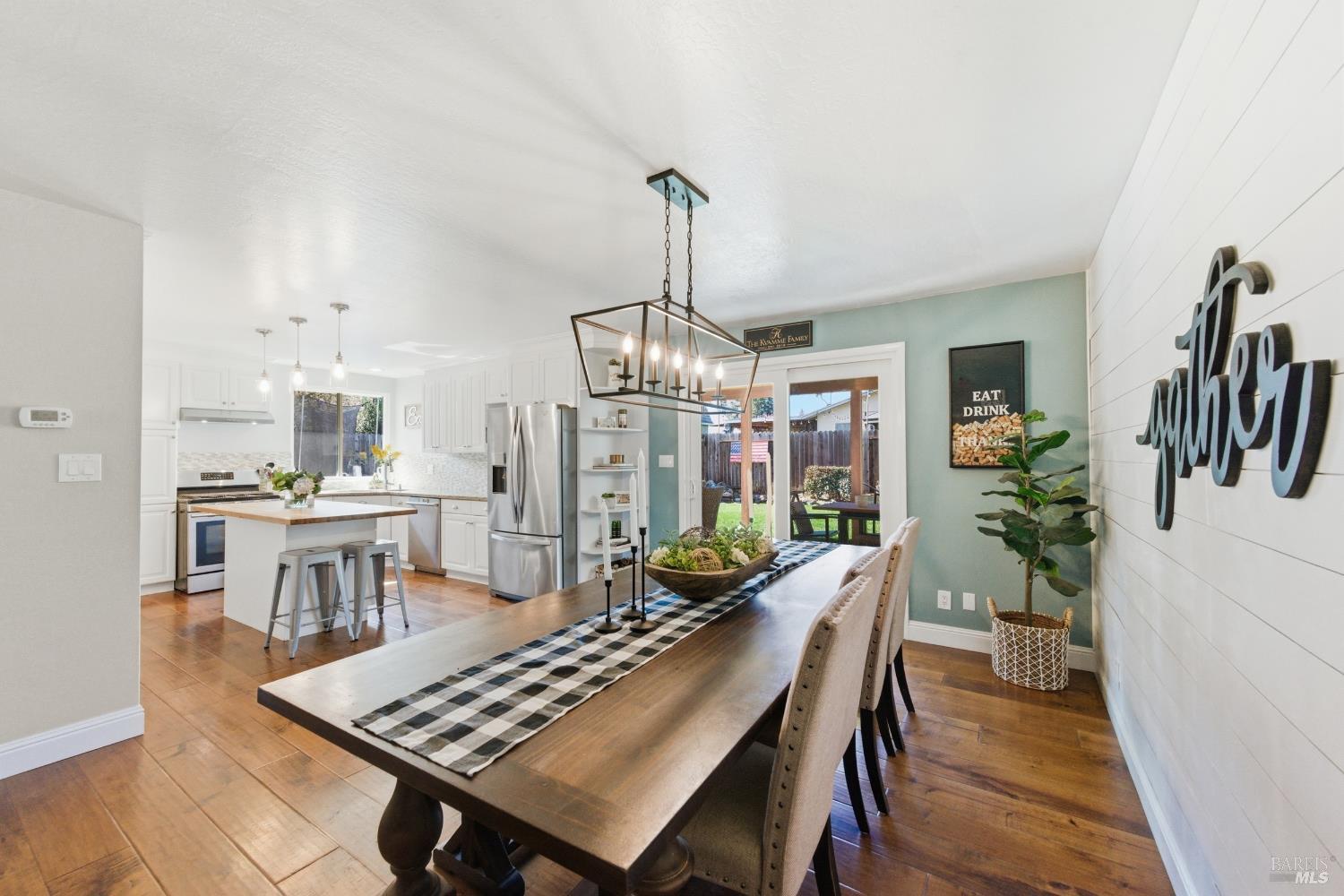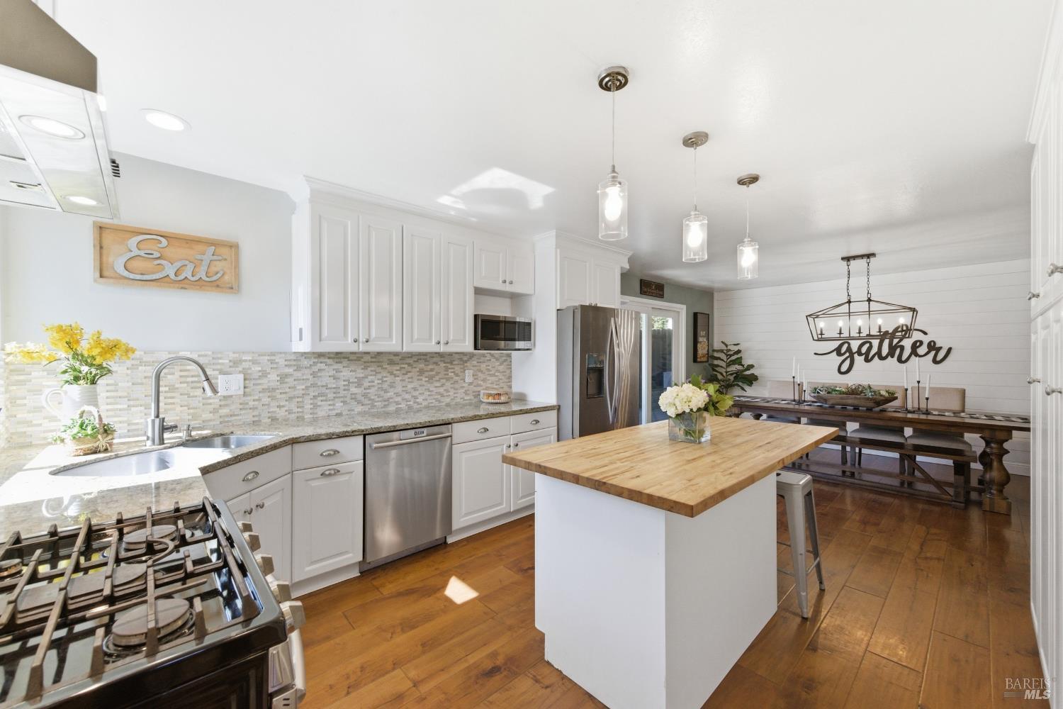 Welcome to life in the "Mac Streets!" Situated in one of Napa's most established neighborhoods, this thoughtfully updated 4-bedroom, 2.5-bath home offers over 1,700 square feet of comfortable living designed for both everyday ease and effortless entertaining. Step inside to warm tones, wood flooring, dual pane windows, and central HVAC for year-round comfort. The kitchen serves as the heart of the home, featuring a gas range, granite countertops, tile backsplash, butcher block island, and a dining area that opens directly to the covered patio through a sliding glass door perfect for indoor-outdoor living. A main-level laundry room adds convenience, while upstairs offers four versatile bedrooms. One has been transformed into an impressive walk-in closet for the primary suite and can easily convert back if desired. The primary bath is light and bright with a tile walk-in shower and dual-sink vanity. Out back, the lifestyle really shines. The newly built covered patio with shades, lighting, fans, and pre-wiring for an outdoor TV creates the ideal setting for game-day gatherings and summer evenings. A lawn area, pond, lemon tree, espalier apple tree, and chicken coop/run add charm and functionality to the space. Just steps from Sutherland Park and minutes to Target, Whole Foods, and Trader Joe's, this location offers both neighborhood charm and everyday convenience.