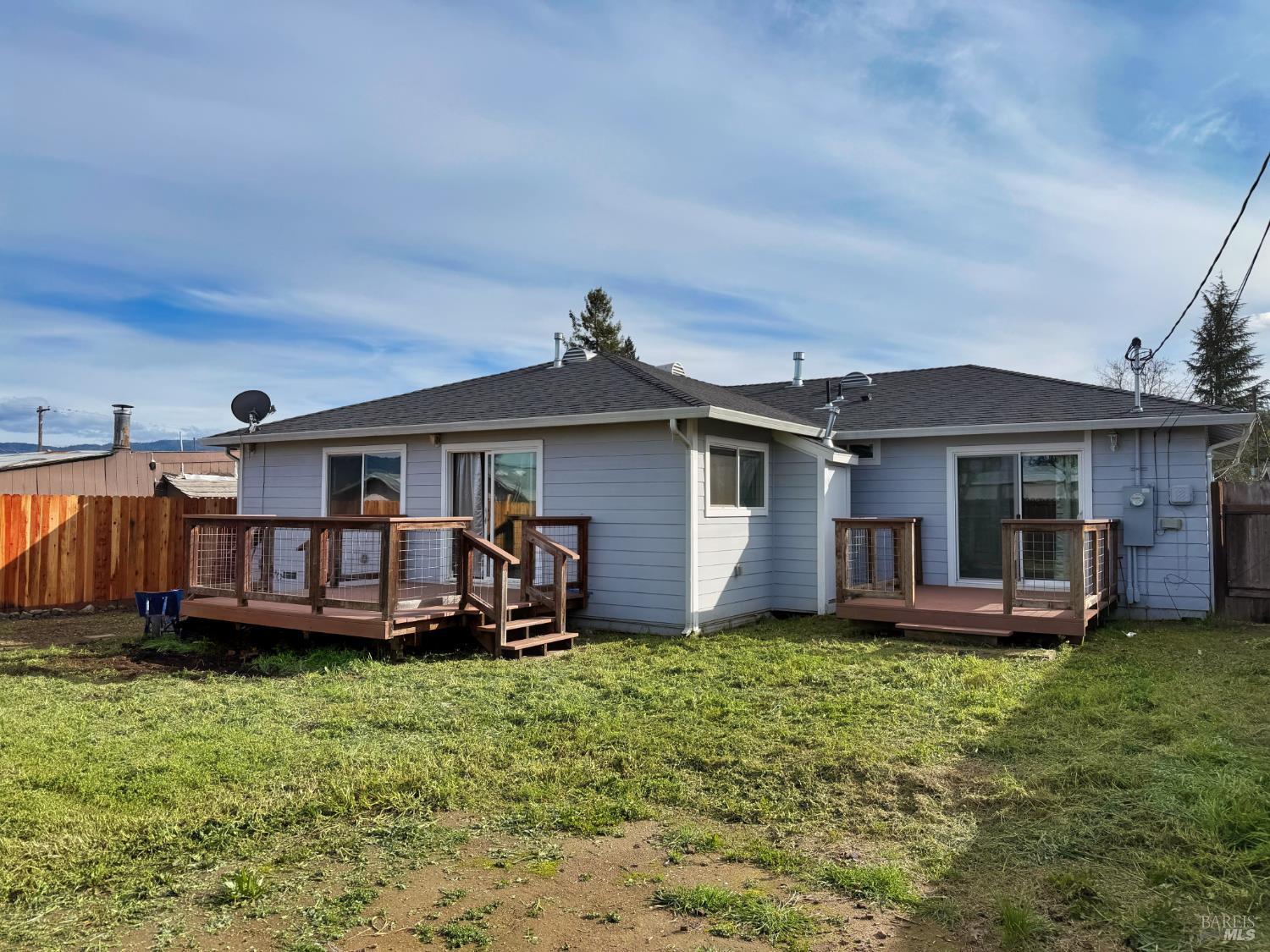 Updated 4-bedroom, 2-bathroom home totaling 1,663 sq/ft. This residence has been recently refreshed with modern vinyl plank flooring throughout and a remodeled kitchen featuring a farmhouse sink and durable composite countertops. The interior is defined by abundant natural light and a functional floor plan anchored by a classic brick fireplace in the living area. Outdoor living is a priority here, with a fully fenced backyard positioned for full sunideal for gardening or recreation. The layout includes two separate outdoor transitions: a private deck off the back bedroom and a second deck off the family room, perfect for entertaining.