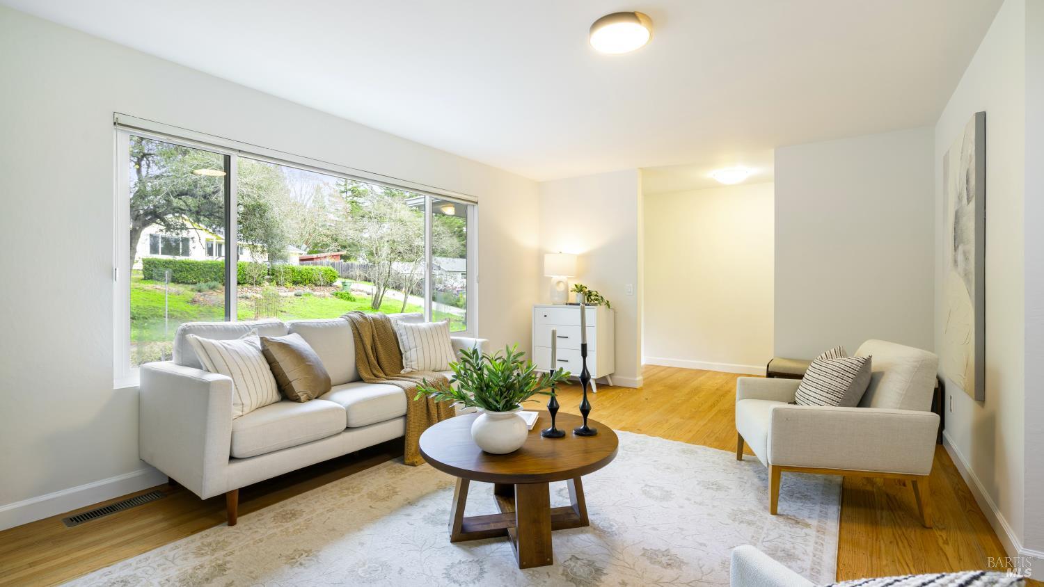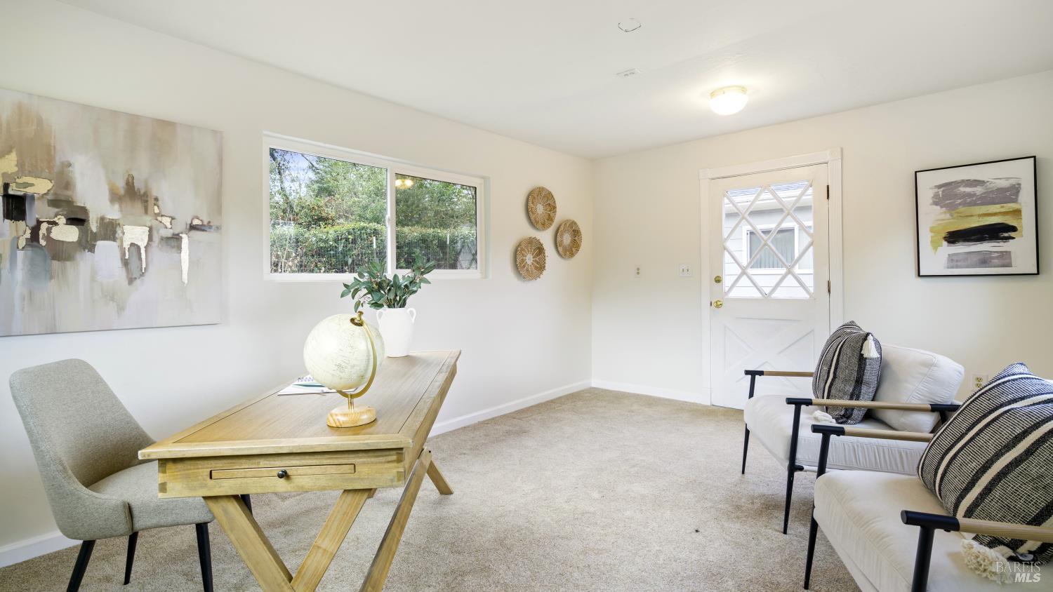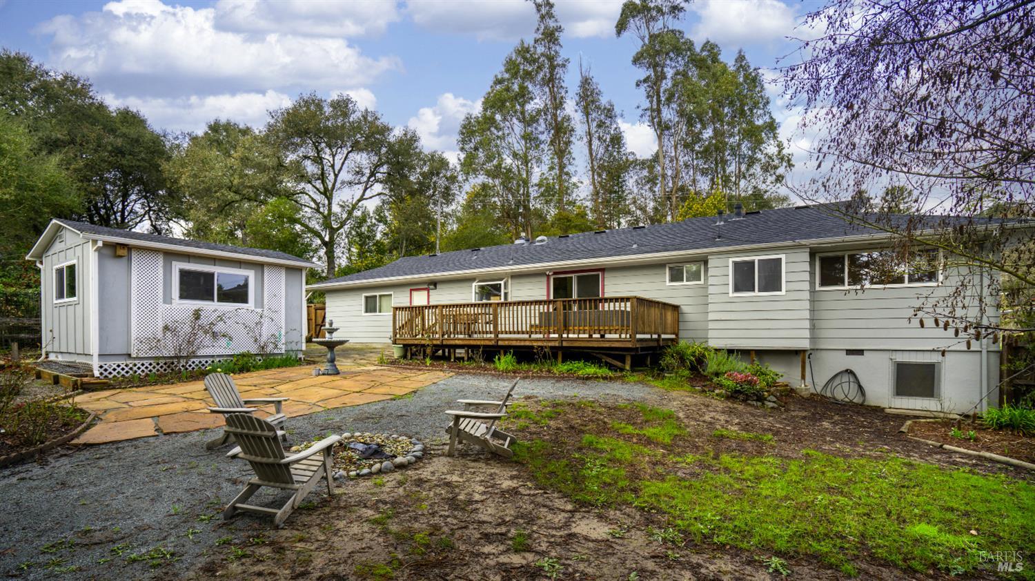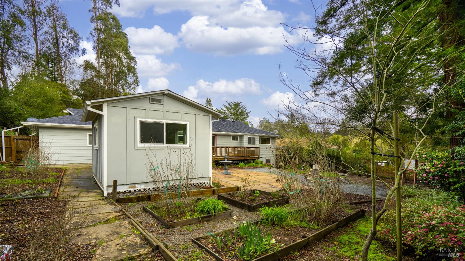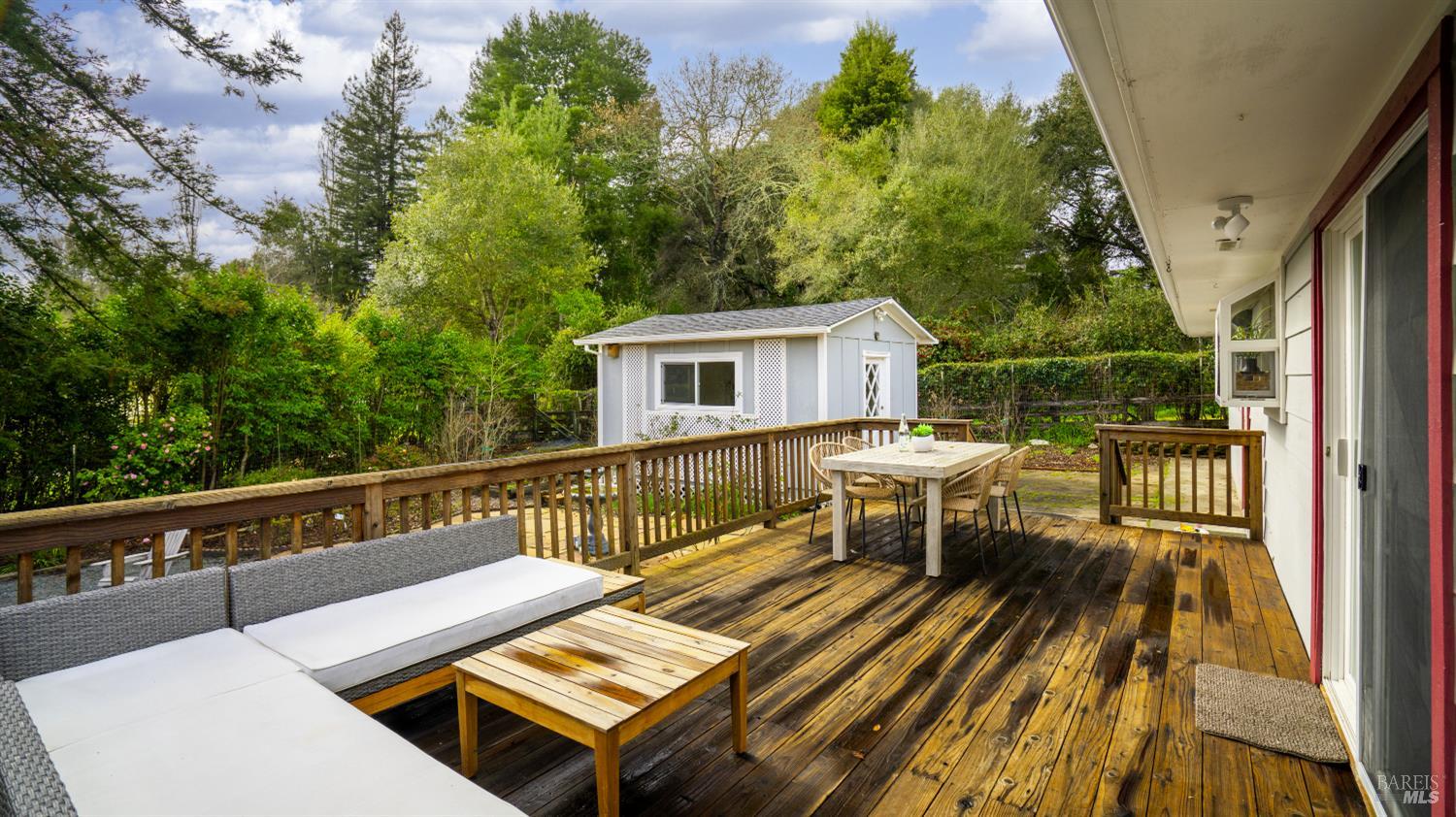 Charming single-level Sebastopol home offering the cottage-inspired lifestyle everyone loves about this area. The beautifully manicured, drought-tolerant front yard sets the tone, welcoming you into a bright and inviting living space complete with a cozy gas fireplace insert and abundant natural light. Rich oak hardwood floors flow throughout much of the home, adding warmth and timeless appeal. The kitchen features generous prep space, ample cabinetry, and a lovely garden window, while the adjoining dining area opens to the outdoors through a large sliding door perfect for enjoying meals bathed in natural light. The home includes two comfortable guest bedrooms, a full bath with an elegant vanity, and a serene primary suite with a pocket-door bathroom for added privacy. Step outside to a backyard retreat designed for both relaxation and entertaining, with a spacious deck, sitting patio, mature shade trees, flourishing garden beds, and a fantastic detached office/bonus room ideal for working from home, hobbies, or guests. Located just moments from vibrant downtown Sebastopol with its shops, dining, and entertainment, close to local parks and community favorites, and with easy access to Hwy 12 for commuting, this home truly offers the best of Sonoma County living.