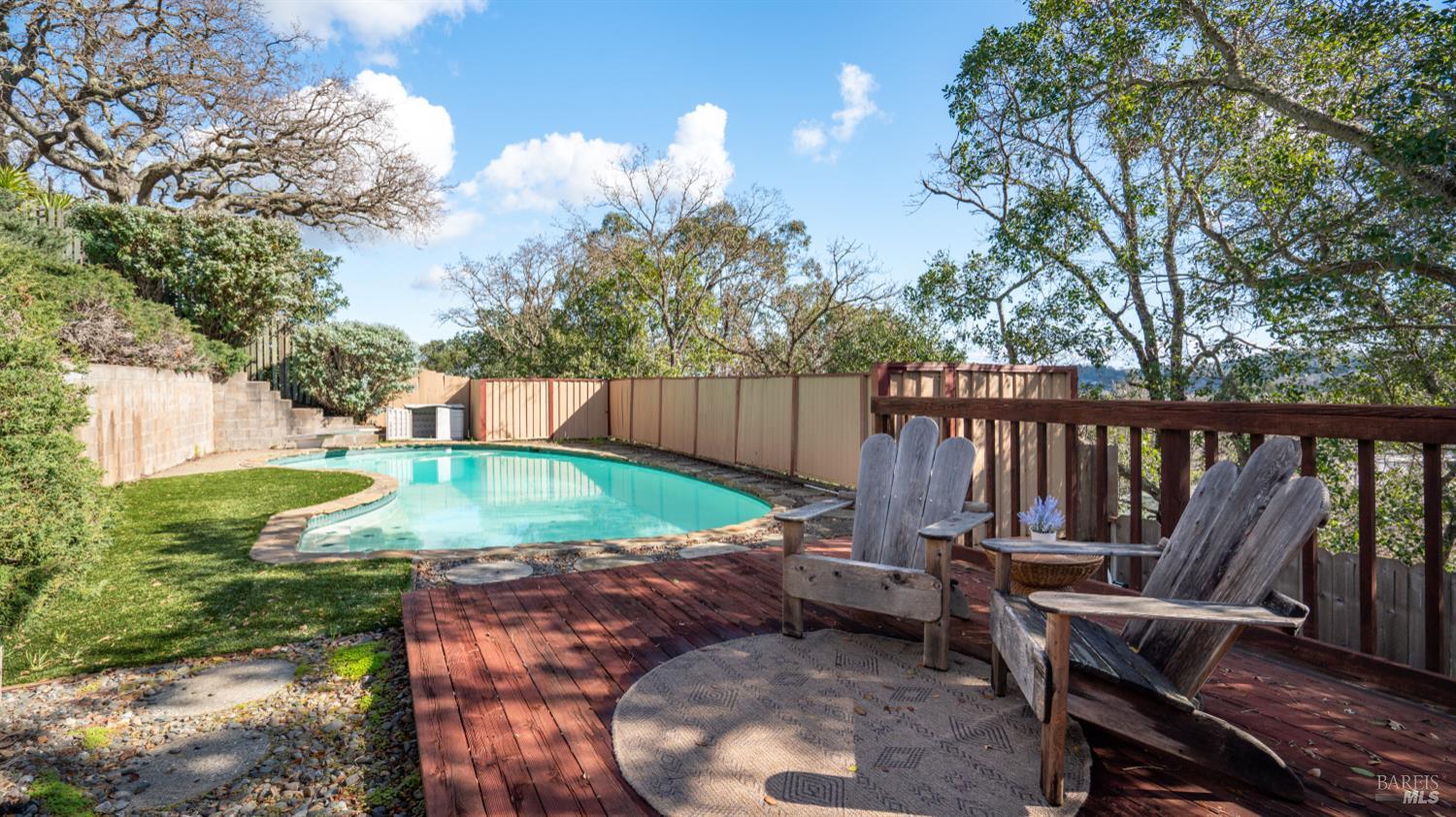 First time on the market! This well-loved 4 bedroom, 2.5 bath home is located in the peaceful and picturesque President's subdivision on a sun-drenched lot surrounded by hills. With inviting curb appeal, the home's welcoming ambiance continues inside with an abundance of natural light that fills every room. The floorplan offers an open kitchen/family room area with glass doors leading to view deck, as well as a formal living room with fireplace and an adjoining dining room that's perfect for entertaining. The primary bedroom provides a comfortable and private retreat. The additional bedrooms are well-proportioned and can accommodate a variety of furniture configurations. Venture outside to enjoy the expansive yard with a covered deck that's ideal for al fresco dining or by relaxing by the pool. The attached two-car garage has ample storage. Freshly painted interior and roof was replaced in 2025. The home is in close proximity to local schools and shopping.