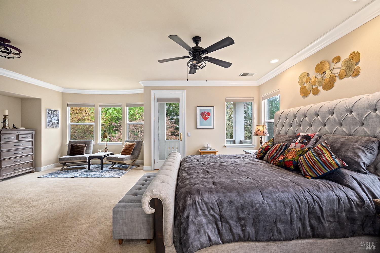 Refined, gracious, yet so easy to relax into and love, this 4 bedroom, 3 full bath home is captivating and inspiring indoors and out. Come inside, where the elegant circular entry leads to the adjoining sitting room and breathtaking dining room ready to welcome friends and family. Explore further and enter into the wide open spaces of the light-filled kitchen and family room, showing glimpses of the professionally designed gardens beyond. The stage is set for gatherings large and small from the kitchen, which features a custom prep island with hand-rubbed Walnut countertop, wine refrigerator and seating, updated dishwasher, double ovens, a six-burner Viking cooktop, and chef's hood. Open to the warm and sunny family room, these rooms provide the heartbeat of life. Also on the main floor, you'll find a versatile bedroom currently styled as an office, full bath, well-outfitted laundry room with backyard access, and an attached studio/storage room behind the garage, ideal for a home gym or creative workspace. Upstairs the expansive master suite steals the show with its private balcony offering sunset views, a true claw-foot soaking tub, dual vanities, a makeup station, a large stall shower, and an impressive walk-in/walk-around closet. Two additional bedrooms, a hall bath, and a charming reading nook within the turret overlooking the dining room complete the upper level. Live amidst this gorgeous private setting, surrounded by its beautifully designed landscape with an outdoor dining gazebo and gathering patio, where every day feels like a tranquil escape. Meticulously maintained, this property is more than just a home, it's a lifestyle upgrade. The owned solar system ensures energy efficiency, incredible savings on electricity, and sustainability. Room to grow, entertain, and thrive for years to come!