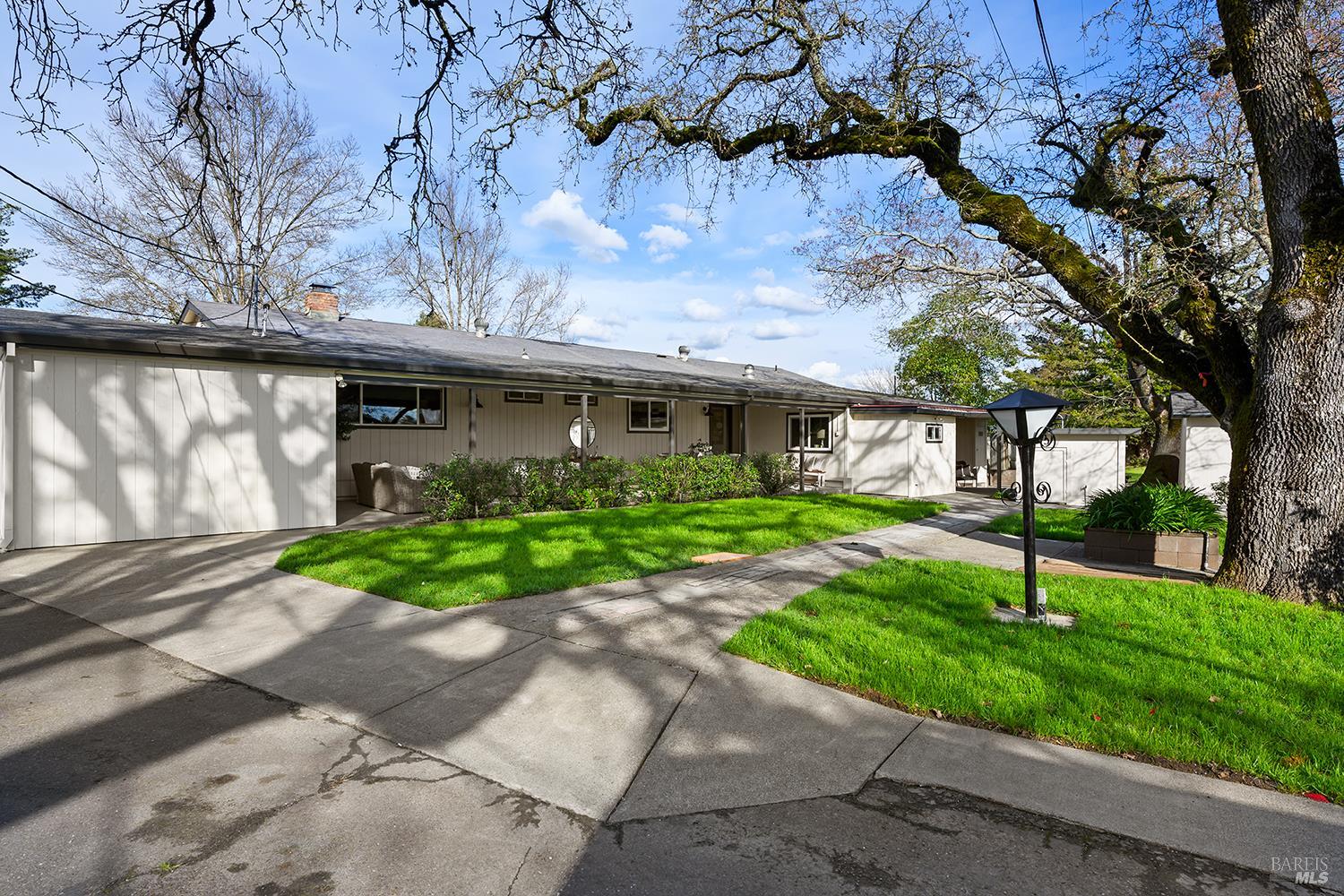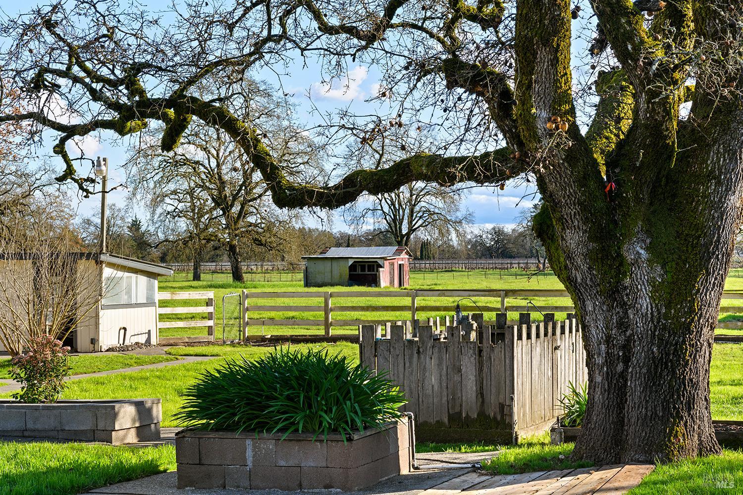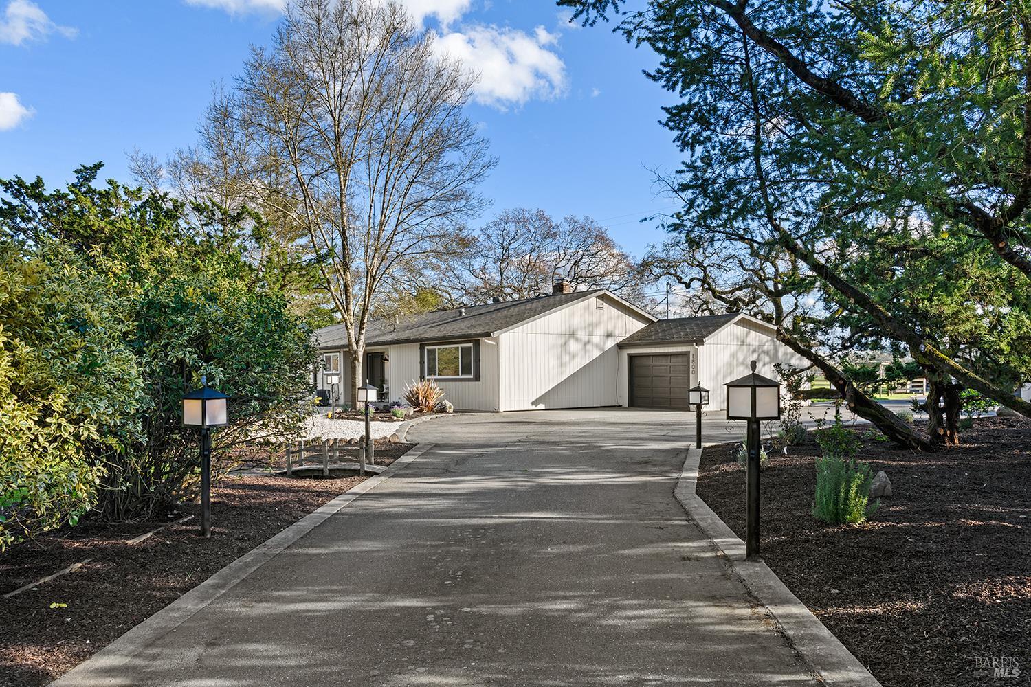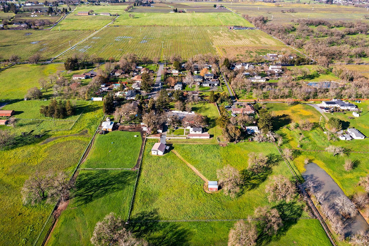 Set up for generational living, this beautifully refreshed sprawling single-story home is located at the end of a quiet country lane on 3.85+/- pristine acres. Set amidst majestic oaks, the main home as set up will accommodate two separate living situations, and then there is a detached finished flex space that can serve as an ideal home office, or could be guest quarters for the occasional visitor. There is a barn perfectly suited for the gentleman farmer, and two additional sizable outbuildings that could serve as car or RV storage, or even just as workshops. Horses, cows, goats or sheep would be happy on this level parcel in the middle of Sonoma County's premier Russian River Wine Country. This is peace and serenity at its finest close to all conveniences.