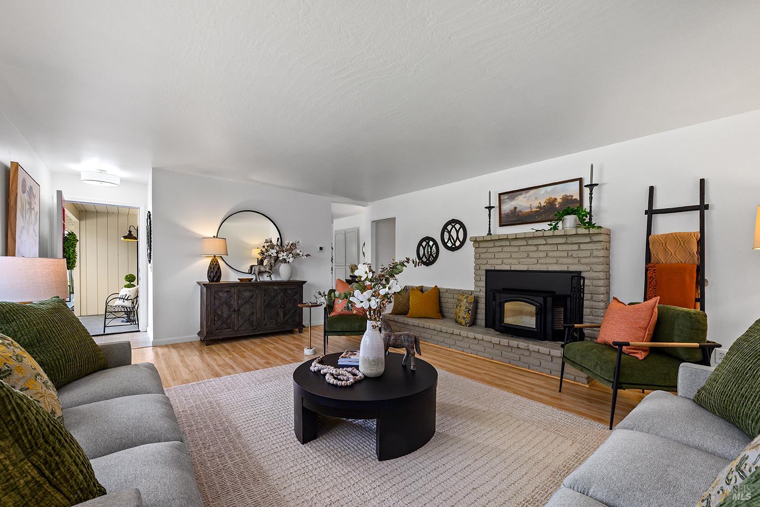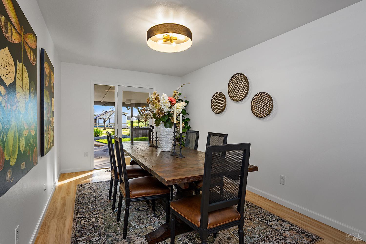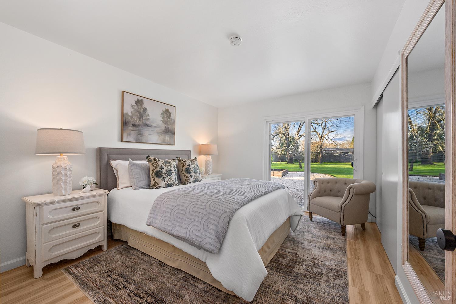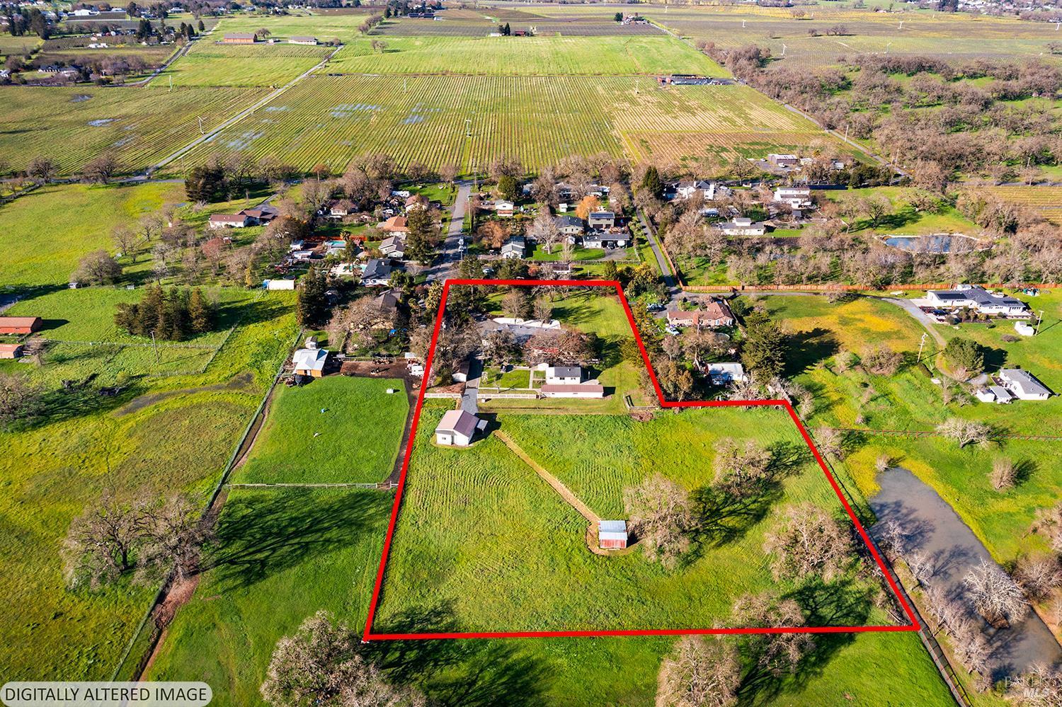 Set up for generational living, this beautifully refreshed sprawling single-story home is located at the end of a quiet country lane on 3.85+/- pristine acres. Set amidst majestic oaks, the main home as set up will accommodate two separate living situations, and then there is a detached finished flex space that can serve as an ideal home office, or could be guest quarters for the occasional visitor. There is a barn perfectly suited for the gentleman farmer, and two additional sizable outbuildings that could serve as car or RV storage, or even just as workshops. Horses, cows, goats or sheep would be happy on this level parcel in the middle of Sonoma County's premier Russian River Wine Country. This is peace and serenity at its finest close to all conveniences.