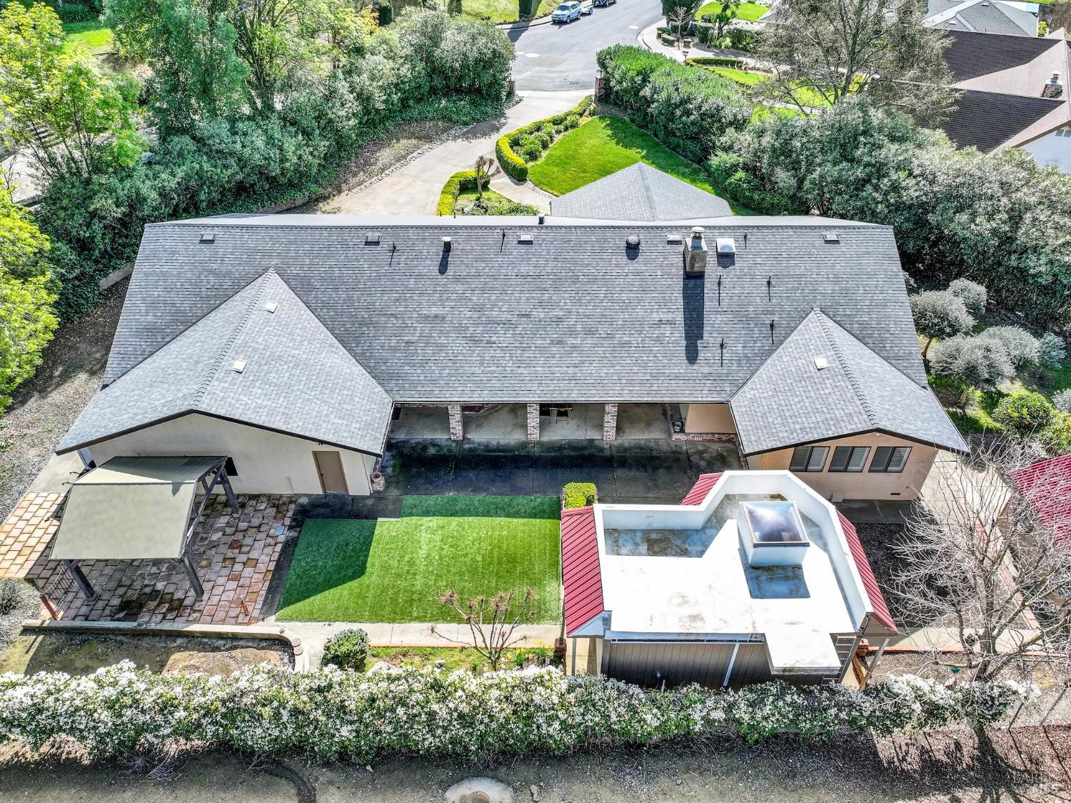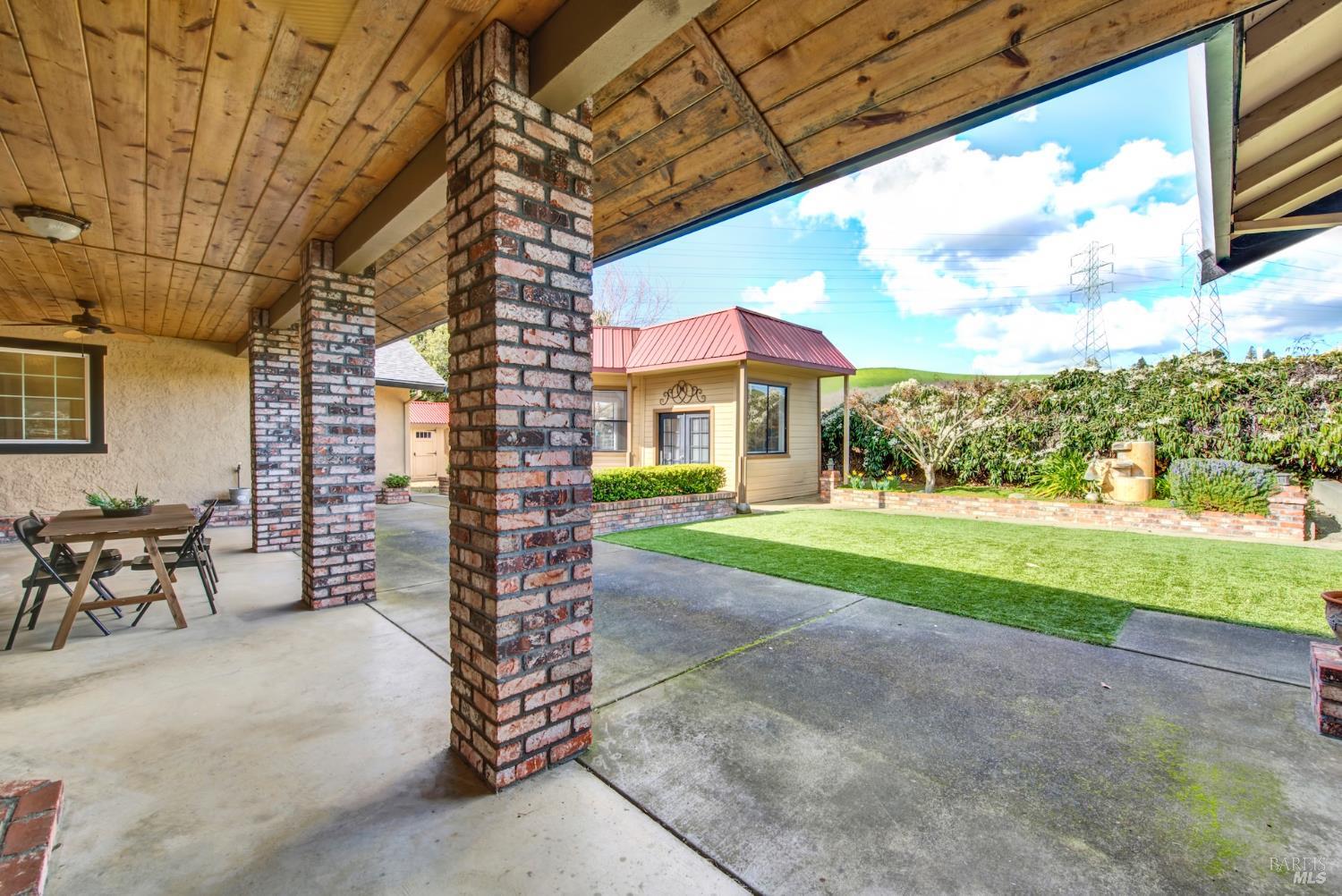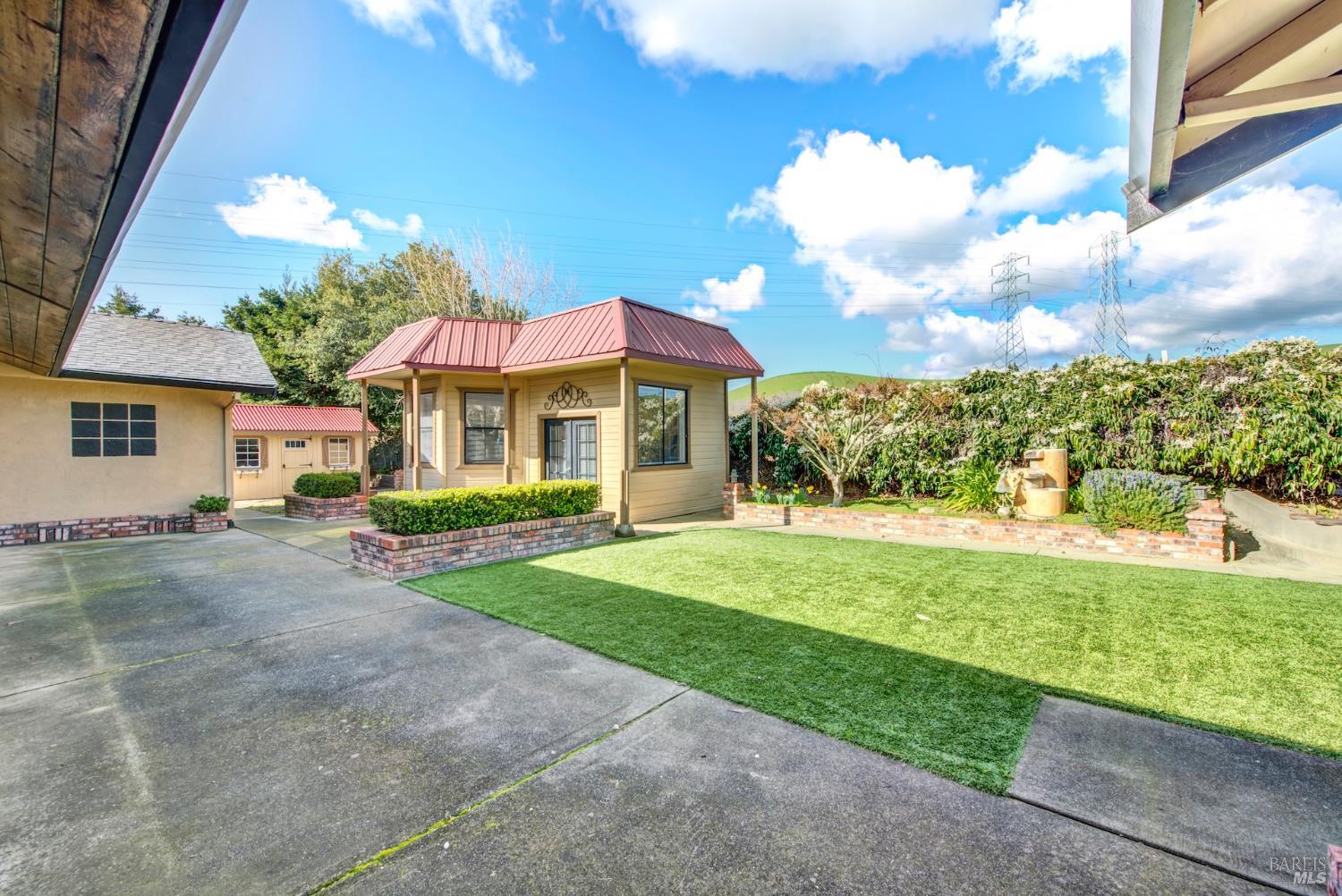 Welcome to this exceptional custom single-story residence in West Fairfield, where home becomes your mecca for sophisticated living and endless possibilities. This rare offering begins with a welcoming covered front porch that overlooks meticulously landscaped grounds, providing both privacy and tranquility. Enter through elegant double front doors into a formal living and dining room, expertly designed spaces perfect for hosting distinguished gatherings and creating lasting memories. The generously proportioned family room showcases a striking brick fireplace, while the updated kitchen stands as the heart of the home. Featuring stainless steel appliances, granite countertops, under-cabinet lighting, and a convenient walk-in pantry, the open-concept design connects seamlessly to the breakfast nook and family room, creating an ideal environment for both casual living and elegant entertaining. The primary suite serves as a luxurious private sanctuary, thoughtfully designed for rest and rejuvenation. Expansive walk-in closet provides exceptional storage and organization, while the spa-inspired en suite bathroom elevates daily routines into indulgent experiences. Unwind in the deep soaking tub after a long day, or enjoy the convenience and luxury of the spacious walk-in shower, a perfect retreat within your own home. The 3-car garage is enhanced by 2 connected storage rooms, while 3 additional covered parking spaces provide abundant room for vehicles, recreational toys, and hobby enthusiasts. A significant investment enhances this property's value: the roof was professionally replaced just one year ago at a cost exceeding $100,000 and includes a transferable 50-year guarantee, ensuring decades of worry-free protection. Additionally, this property benefits from no HOA fees and no Mello Roos, offering true ownership freedom. Situated on a premium lot with no rear neighbors, the expansive backyard offers a harmonious blend of covered and open entertaining areas surrounded by beautiful landscaping. The outdoor studio presents limitless potential, transform it into an inspiring art space with beautiful views, a serene yoga studio, a peaceful library retreat, or any vision you imagine. 2125 Mecca Court, where every detail invites you home.