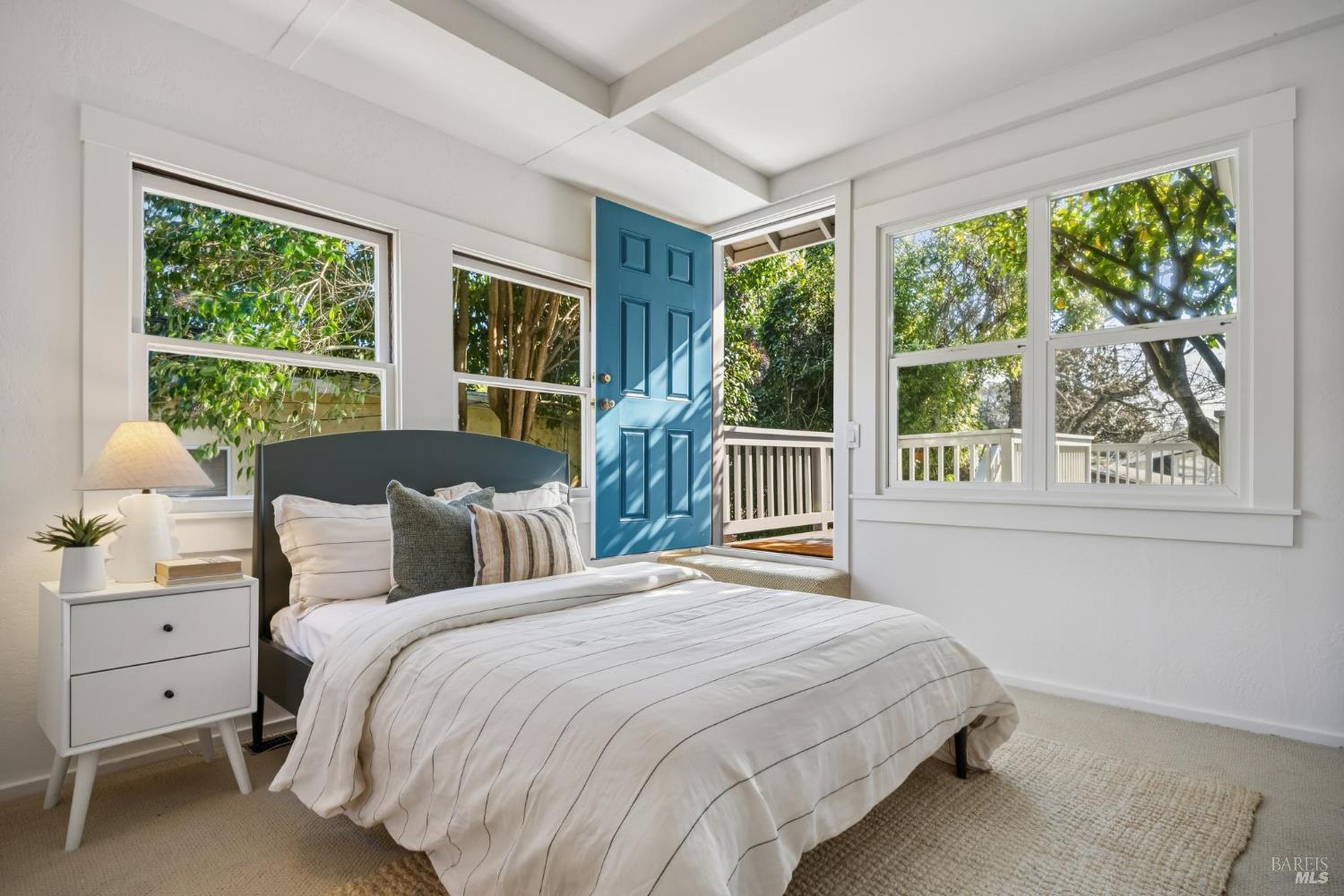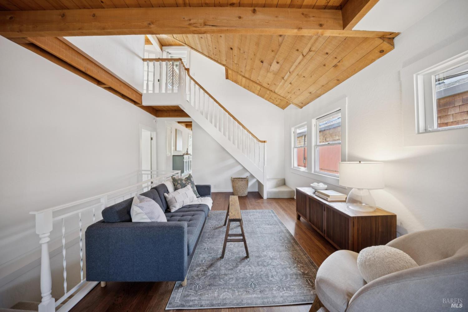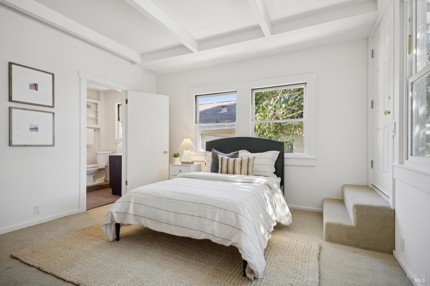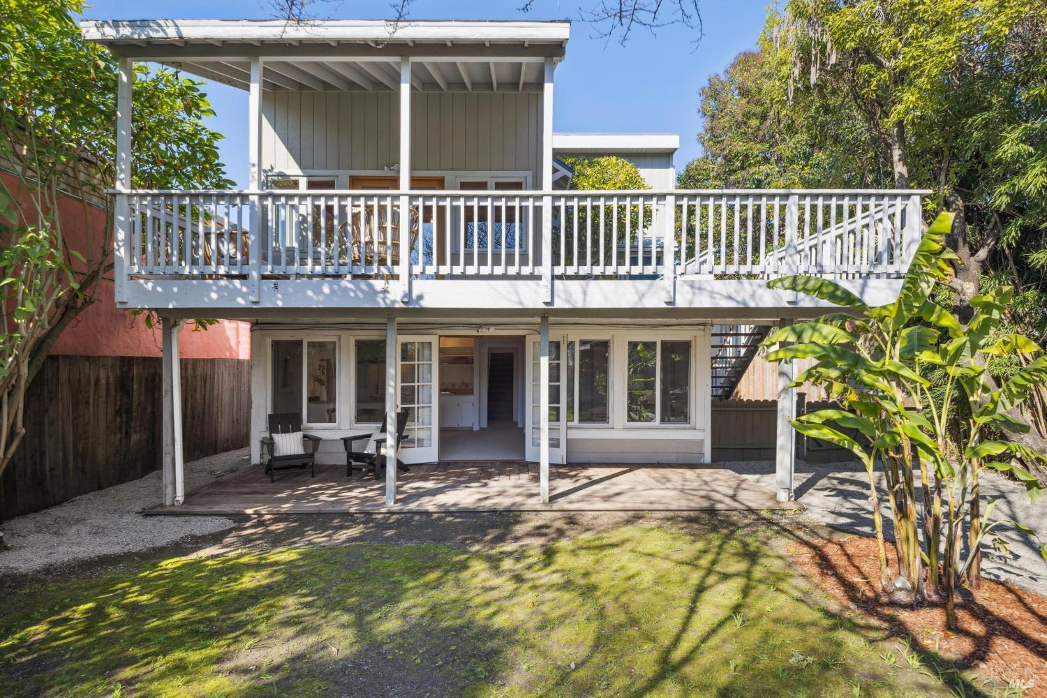 Nestled in one of San Anselmo's most sought-after neighborhoods, just minutes from the heart of its vibrant downtown, this charming Craftsman offers flexibility, privacy, and classic Marin living. A welcoming front porch invites morning coffee and relaxed neighborhood moments, while freshly painted interiors and refinished floors create a bright, refreshed atmosphere. The 4-bedroom 3-bathroom home features a spacious living room with soaring open-beam ceilings and a cozy natural gas fireplace. The kitchen offers freshly updated cabinetry and a breakfast bar, opening to the dining room where French doors lead to a sprawling back deck perfect for indoor-outdoor living and entertaining. Two bedrooms on the main share a Jack-and-Jill bathroom. Upstairs, the private primary suite provides a peaceful retreat with Tam views and a private deck. The lower level includes a kitchen with a private entrance, along with laundry and storage ideal for guests, extended family. With close proximity to downtown San Anselmo, top-rated schools, popular restaurants, boutiques, and local trails, this home offers comfort, versatility, and the best of Marin living.
