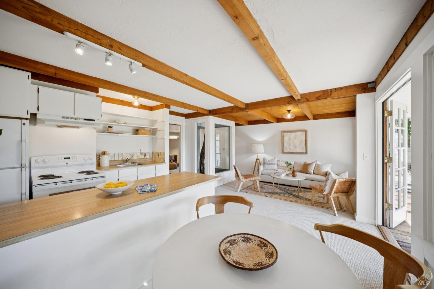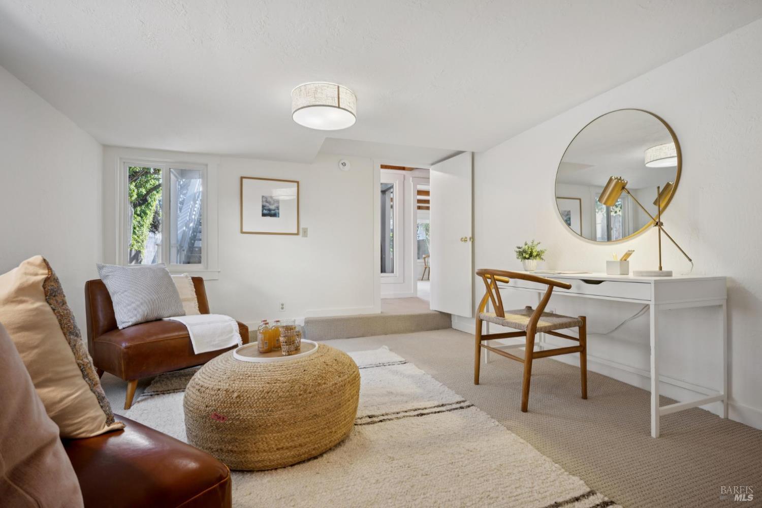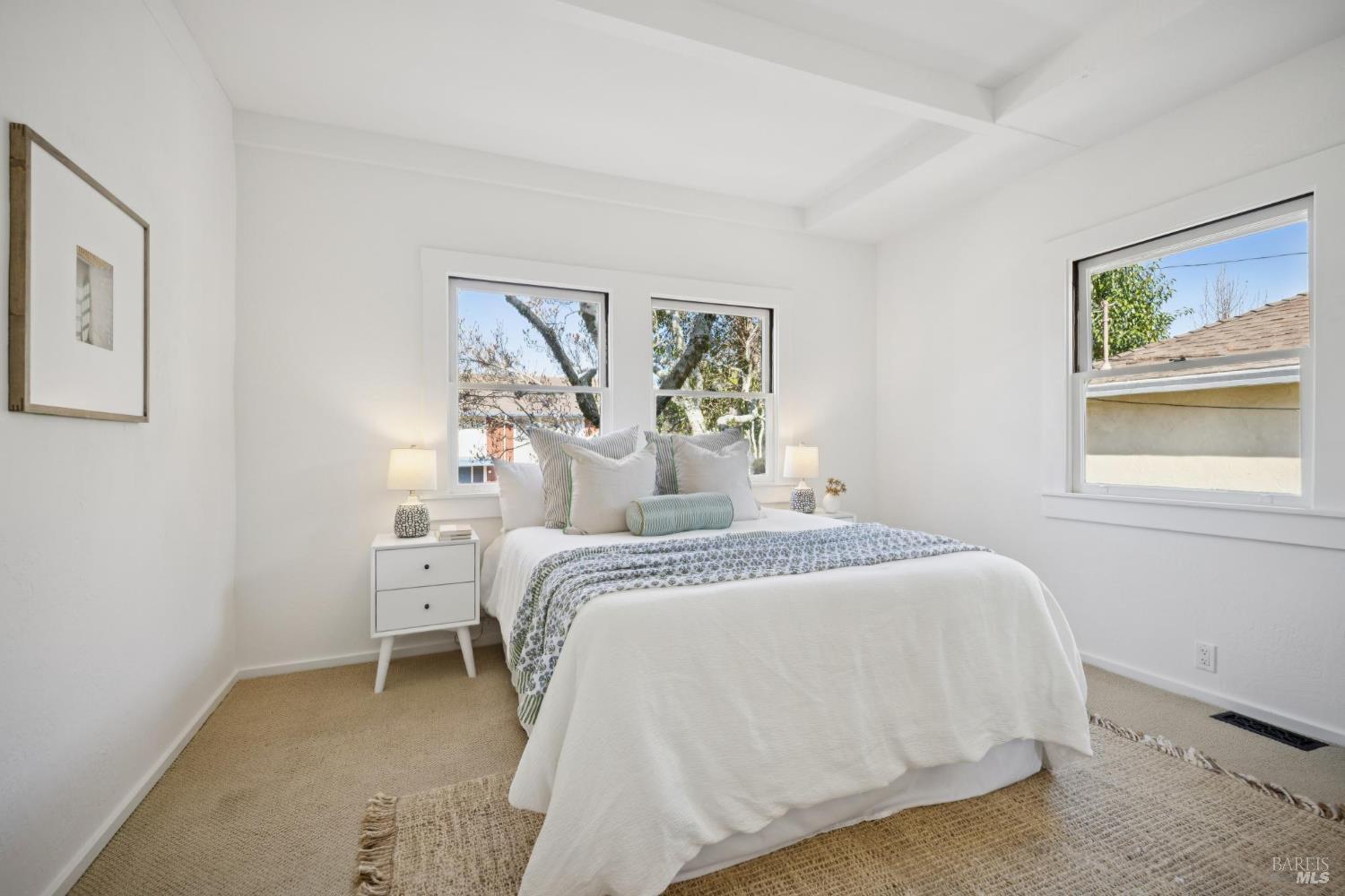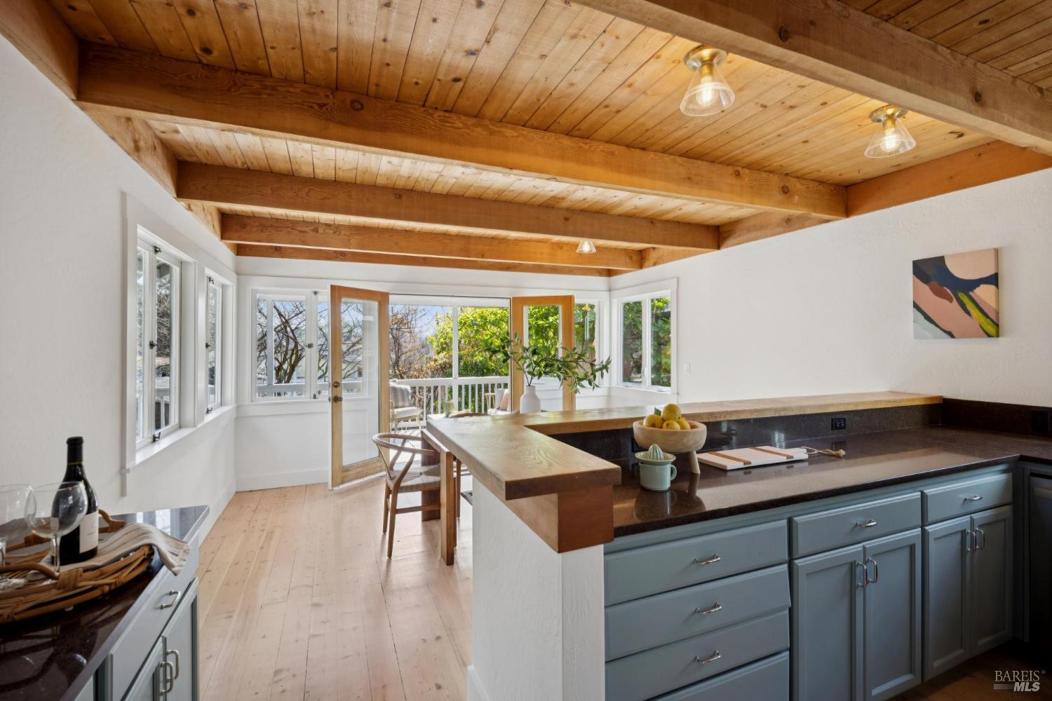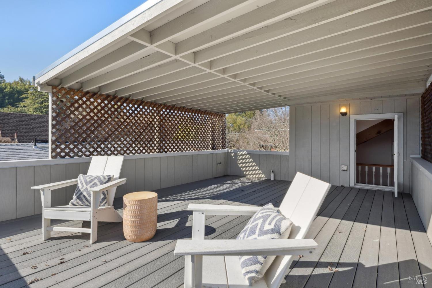 Nestled in one of San Anselmo's most sought-after neighborhoods, just minutes from the heart of its vibrant downtown, this charming Craftsman offers flexibility, privacy, and classic Marin living. A welcoming front porch invites morning coffee and relaxed neighborhood moments, while freshly painted interiors and refinished floors create a bright, refreshed atmosphere. The 4-bedroom 3-bathroom home features a spacious living room with soaring open-beam ceilings and a cozy natural gas fireplace. The kitchen offers freshly updated cabinetry and a breakfast bar, opening to the dining room where French doors lead to a sprawling back deck perfect for indoor-outdoor living and entertaining. Two bedrooms on the main share a Jack-and-Jill bathroom. Upstairs, the private primary suite provides a peaceful retreat with Tam views and a private deck. The lower level includes a kitchen with a private entrance, along with laundry and storage ideal for guests, extended family. With close proximity to downtown San Anselmo, top-rated schools, popular restaurants, boutiques, and local trails, this home offers comfort, versatility, and the best of Marin living.