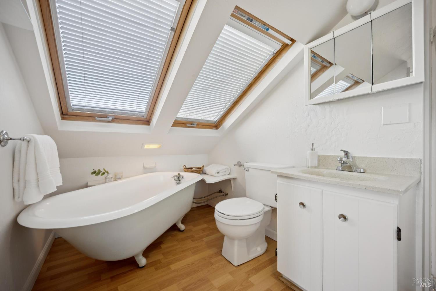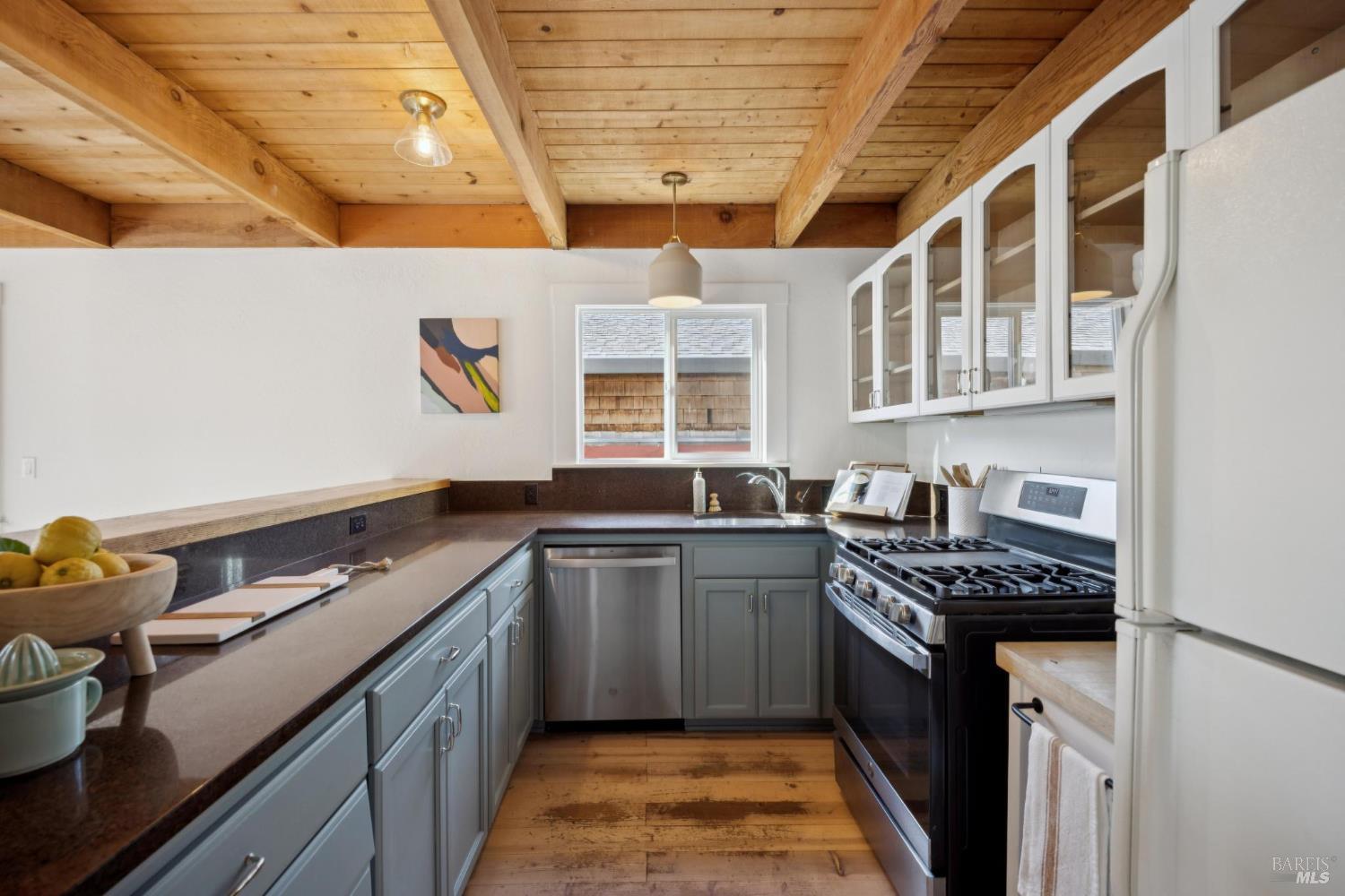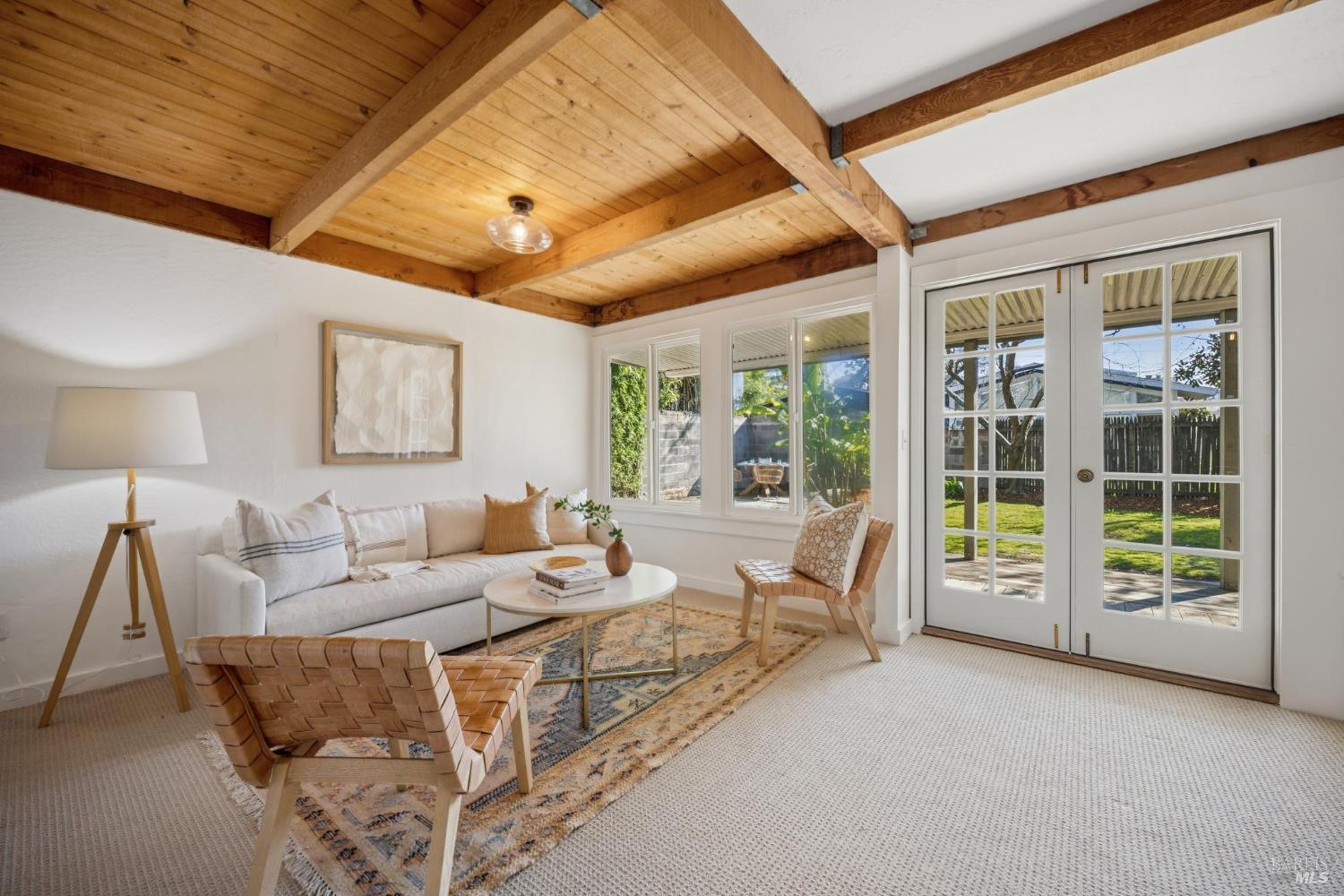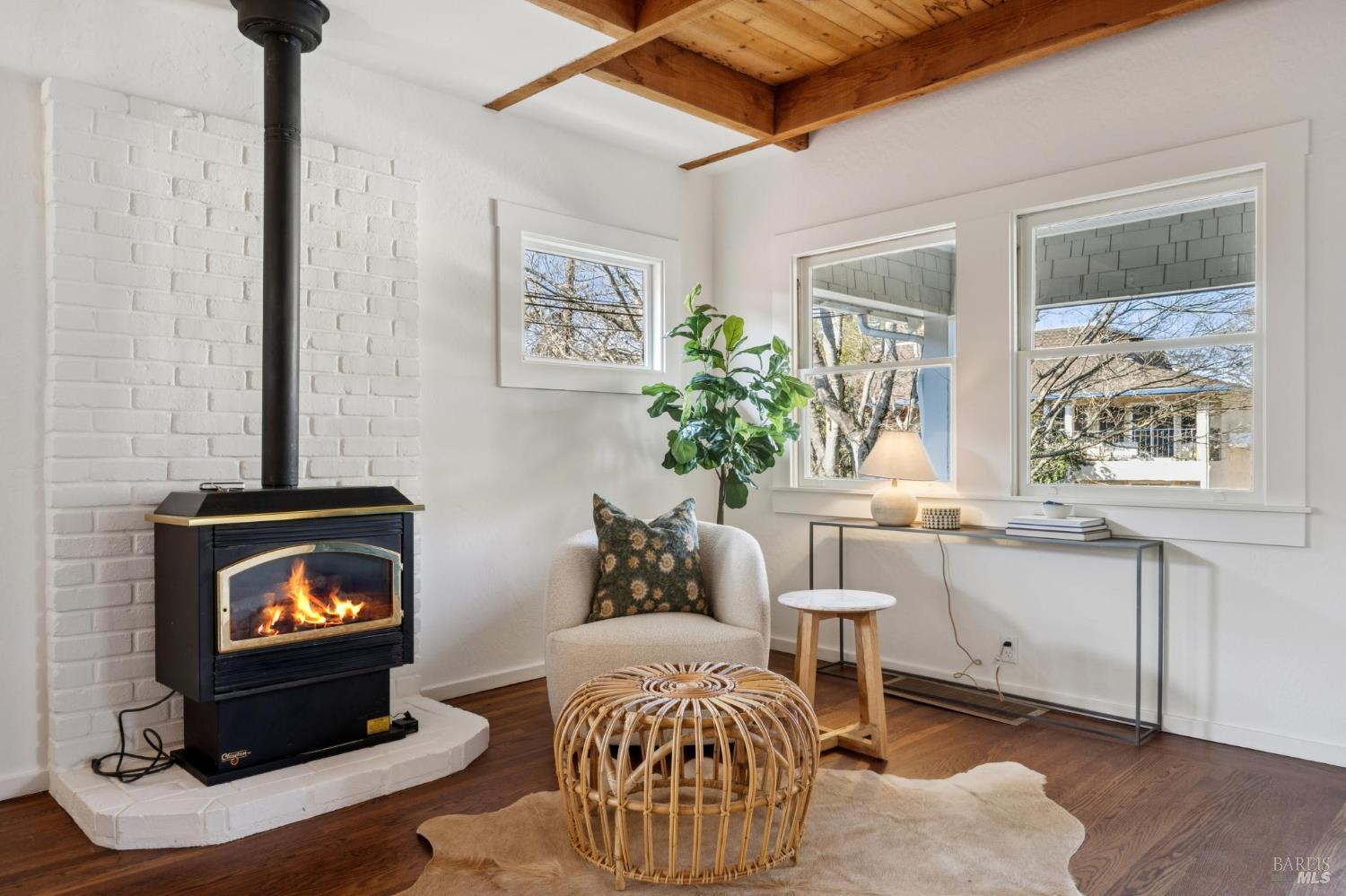 Nestled in one of San Anselmo's most sought-after neighborhoods, just minutes from the heart of its vibrant downtown, this charming Craftsman offers flexibility, privacy, and classic Marin living. A welcoming front porch invites morning coffee and relaxed neighborhood moments, while freshly painted interiors and refinished floors create a bright, refreshed atmosphere. The 4-bedroom 3-bathroom home features a spacious living room with soaring open-beam ceilings and a cozy natural gas fireplace. The kitchen offers freshly updated cabinetry and a breakfast bar, opening to the dining room where French doors lead to a sprawling back deck perfect for indoor-outdoor living and entertaining. Two bedrooms on the main share a Jack-and-Jill bathroom. Upstairs, the private primary suite provides a peaceful retreat with Tam views and a private deck. The lower level includes a kitchen with a private entrance, along with laundry and storage ideal for guests, extended family. With close proximity to downtown San Anselmo, top-rated schools, popular restaurants, boutiques, and local trails, this home offers comfort, versatility, and the best of Marin living.