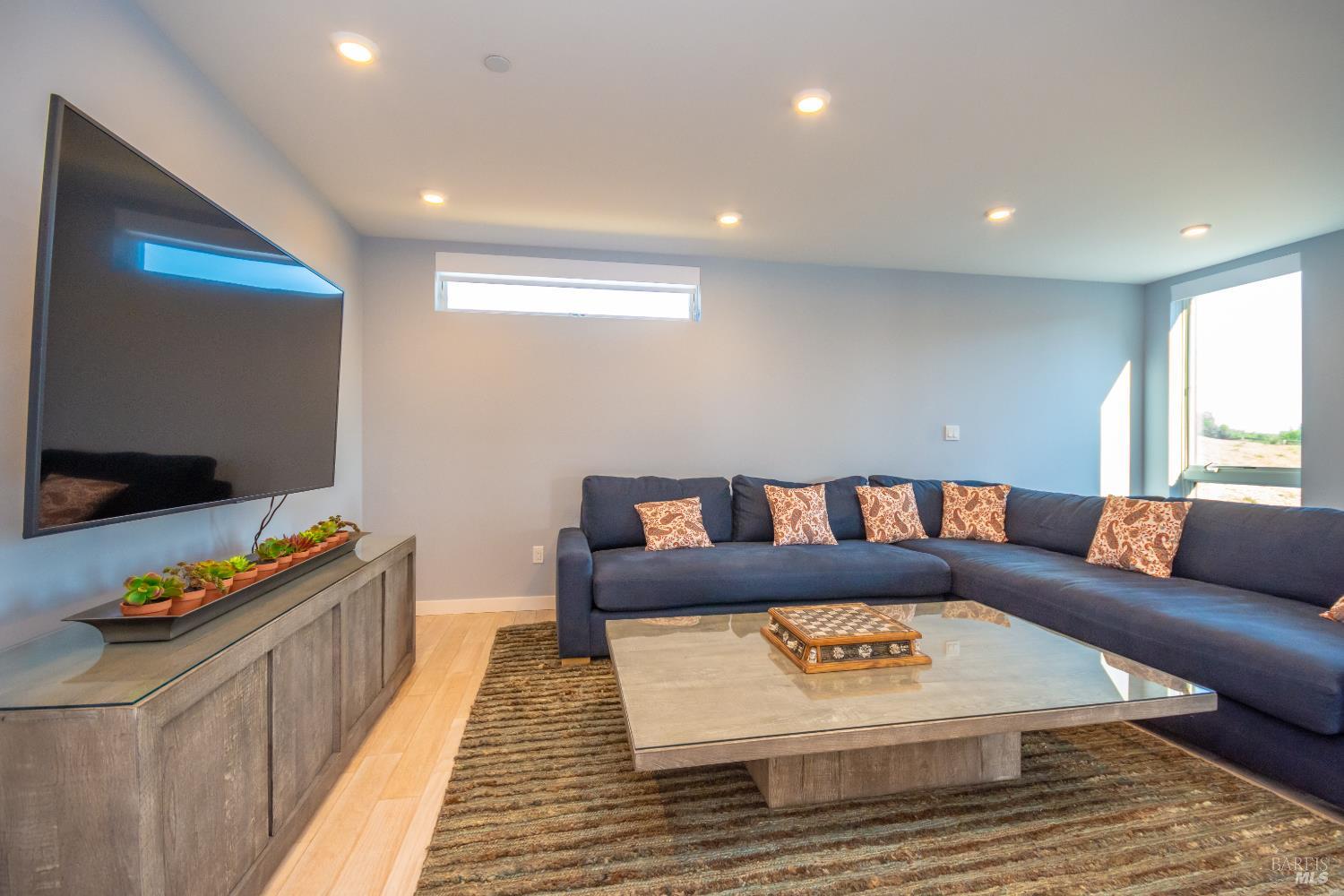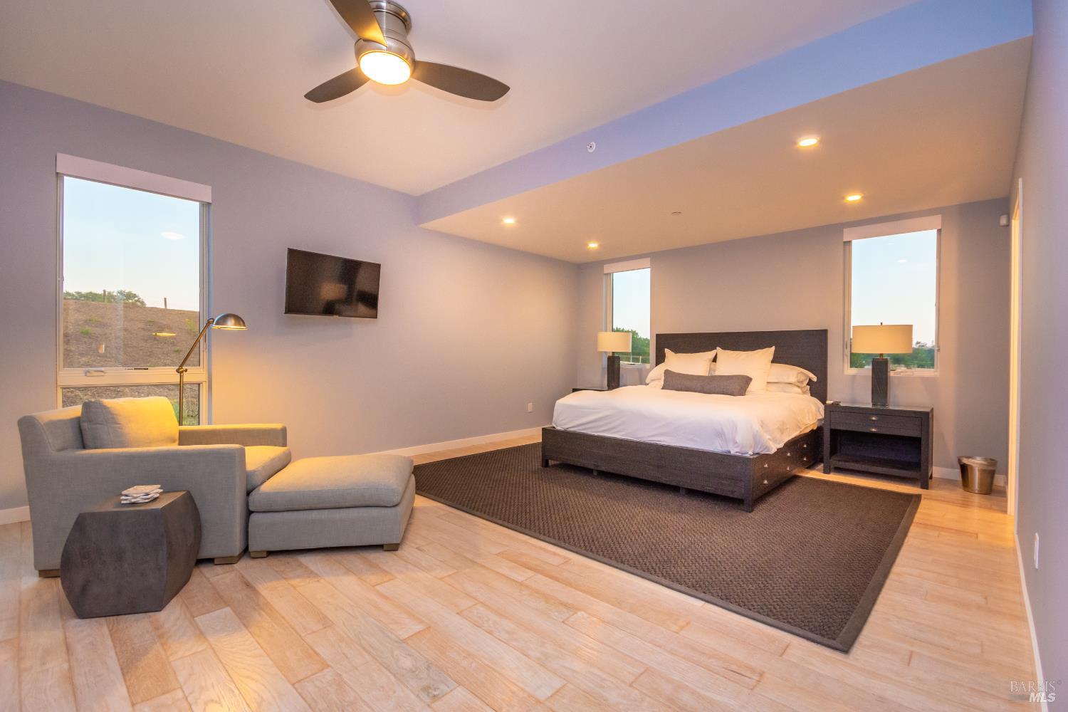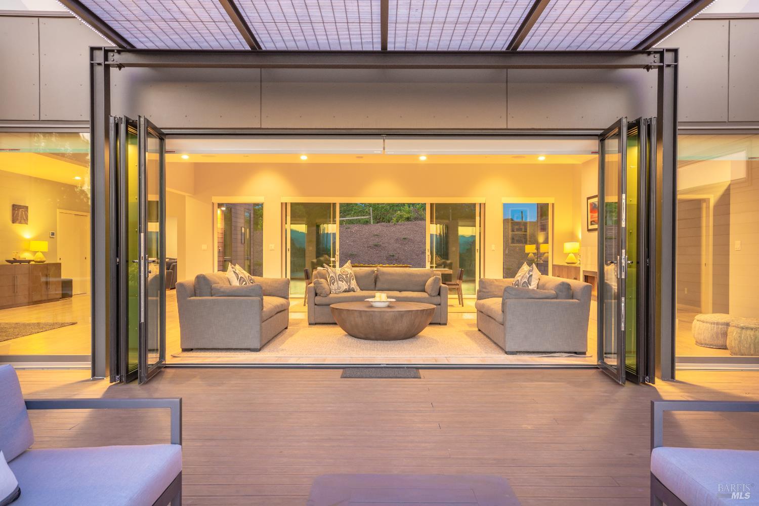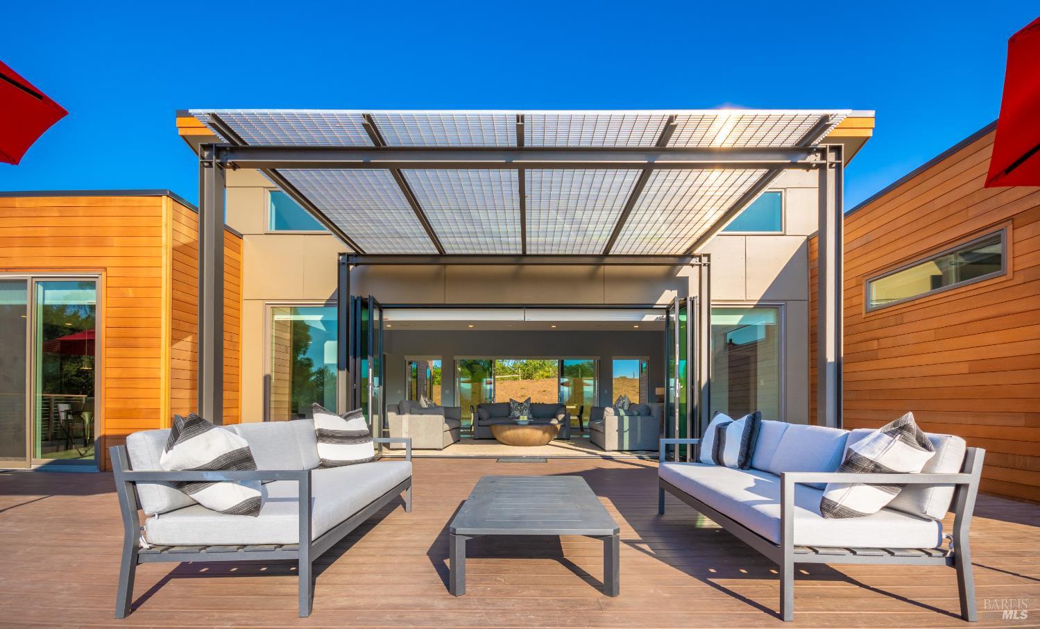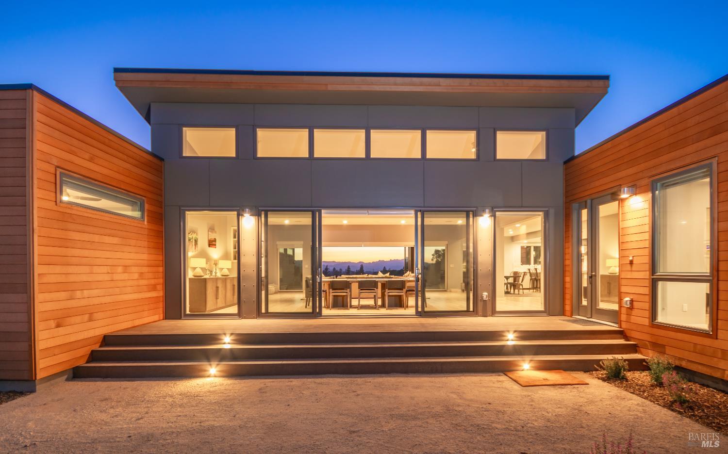 Tucked just minutes from the heart of downtown Healdsburg, this striking newer home offers a rare blend of modern design & privacy with a wine country lifestyle ease. Set amid meadow views, gardens, and forested hills, the property delivers true single-level living with seamless indoor-outdoor flow-perfect for everyday comfort and effortless entertaining. Glass-walled Nano doors open the expansive great room to the outdoors, creating a natural extension of the living space and framing serene natural surroundings. The chef's kitchen anchors the home with an oversized eat-in island along with a Wolf gas cooktop & vented hood in relationship with Sub-Zero refrigerator and separate wine refrigerator. The thoughtfully designed floor plan boasts high-end finishes with hardwood floors throughout inclusive of two private primary en-suite bedrooms plus two additional guest bedrooms that share a full bath, all on one level. A dedicated office and flexible additional room offers space for work, media, or recreation, complemented by high-speed Starlink internet. Outside, professionally landscaped grounds create a resort-like setting featuring a heated infinity-edge pool, separate spa and expansive deck with accent lighting along with both dining and lounging areas sprinkled amongst recreational amenities inclusive of bocce court, sand volleyball court and horseshoe pits. There is a private well with a complete Reverse Osmosis system installed for properly treated water to use everywhere around the home. The setting feels secluded yet is incredibly convenient - just five minutes to Healdsburg Plaza and moments from renowned wineries in Dry Creek, Alexander Valley, and the Russian River. Sustainably built with an owned 9.36kWh solar power system and eco-conscious design, this home balances luxury with efficiency and comfort. Whether used as a full-time residence or a refined Wine Country retreat, 519 Horse Barn Road offers an exceptional lifestyle in one of Sonoma County's most desirable locations.