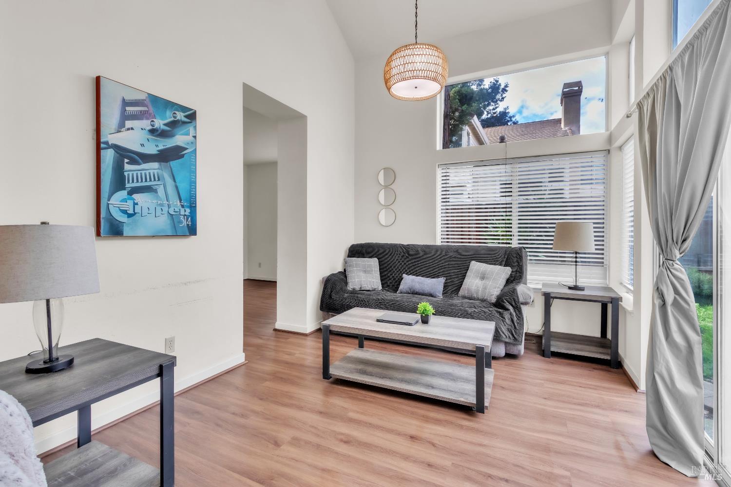 Tucked away on a quiet cul-de-sac in the sought-after Adobe Creek community, the property offers a comfortable blend of space, natural light, and convenience in one of Petaluma's well-established neighborhoods. This inviting home features soaring ceilings and expansive windows that fill the living areas with abundant natural light, creating an open and airy atmosphere ideal for both everyday living and entertaining. The main living spaces flow seamlessly, with warm flooring, a cozy fireplace, and easy access to the backyardperfect for indoor-outdoor enjoyment. The kitchen offers ample counter space and cabinetry, making it functional and efficient for daily use. Well-proportioned bedrooms provide flexibility for guests, a home office, or growing households, while the bathrooms offer generous vanities and storage. Outside, the private backyard presents an excellent opportunity to relax, garden, or entertain, with room to personalize the space to suit your lifestyle. The attached garage and thoughtful layout add to the home's overall practicality. Located in desirable East Petaluma, this property benefits from convenient access to Highway 101, making commuting throughout Sonoma and Marin Counties easy. Enjoy close proximity to neighborhood parks, schools, shopping, dining, and the charming historic downtown Petaluma with its riverfront, boutiques, and restaurants. The surrounding area offers a strong sense of community while still providing quick access to wine country, coastal destinations, and outdoor recreation. A wonderful opportunity to own a well-located home that combines comfort, functionality, and the best of Petaluma living.