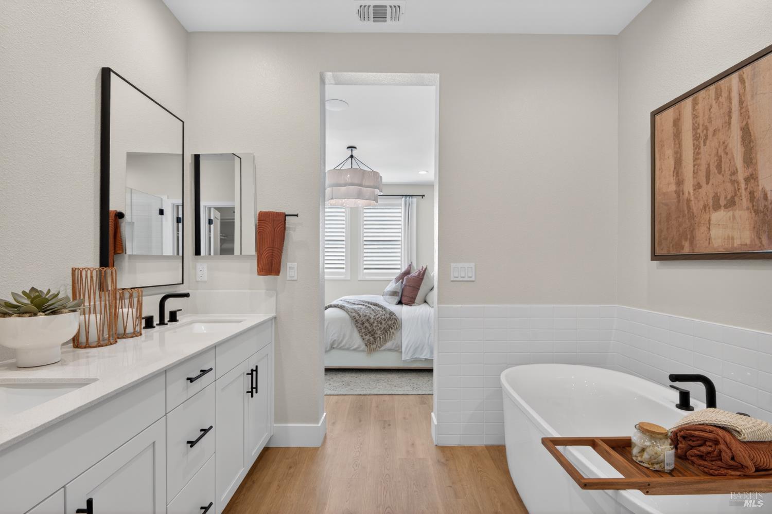 • Primary Bathroom Features Double Sinks,Shower Stall(s),Tub