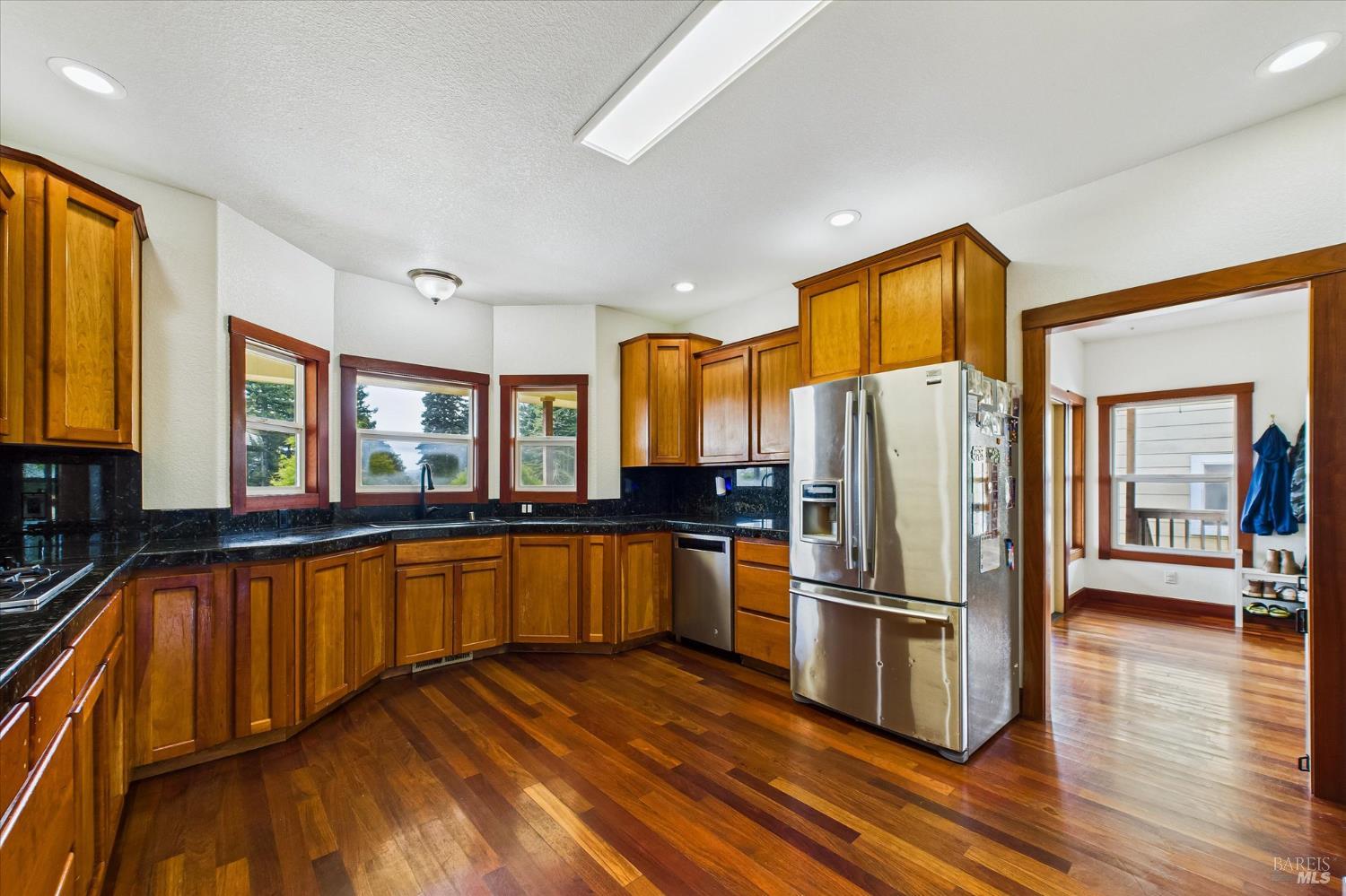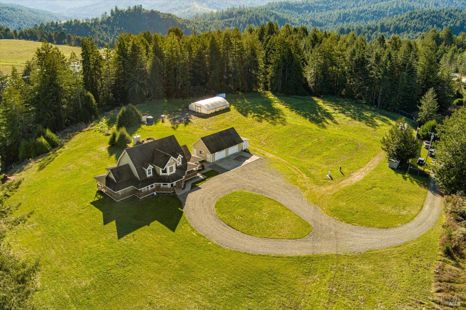Welcome to 1150 Dinsmore Ranch Rd / Rio Vista Lane, a distinguished 3,183-square-foot residence nestled in the serene community of Rio Dell, California. This expansive home features four bedrooms and three and one-half bathrooms, offering generous space for comfortable living. Set on flat, usable acreage, the property is enveloped by the area's natural beauty, providing scenic views and inviting outdoor spaces. The home's exterior features a welcoming porch, ideal for enjoying the tranquil surroundings. A detached garage provides convenient parking and additional storage options. The fenced yard ensures privacy and a secure area for outdoor activities, while the durable composition shingle roof offers long-lasting protection. This property seamlessly combines the tranquility of a retreat with the convenience of modern living. Its location in Rio Dell offers easy access to local amenities and the natural splendor of Northern California. Experience the perfect blend of comfort and elegance at 1150 Dinsmore Ranch Rd / Rio Vista Lane, where every detail has been thoughtfully designed to enhance your living experience.