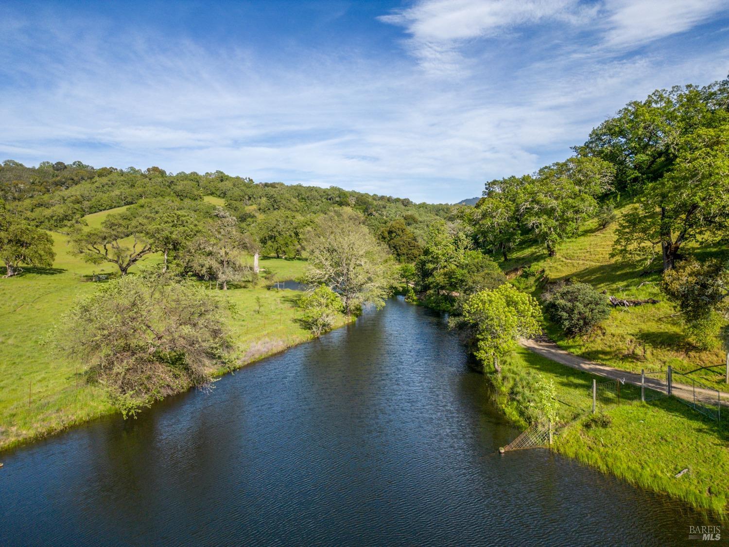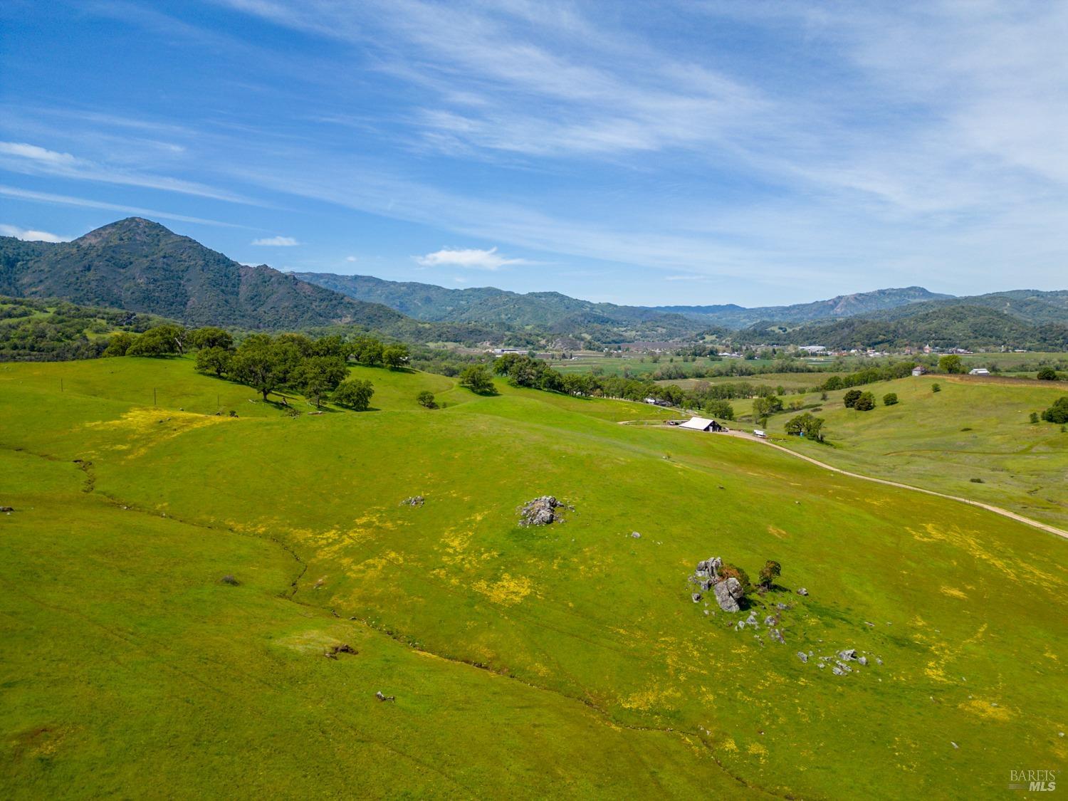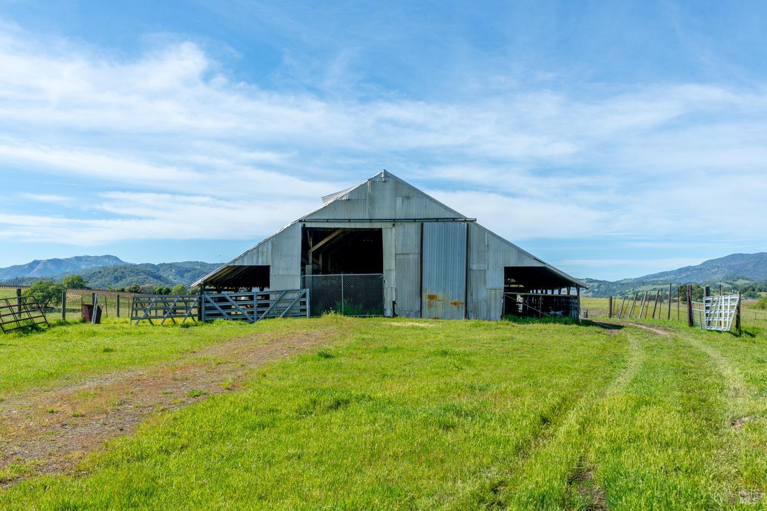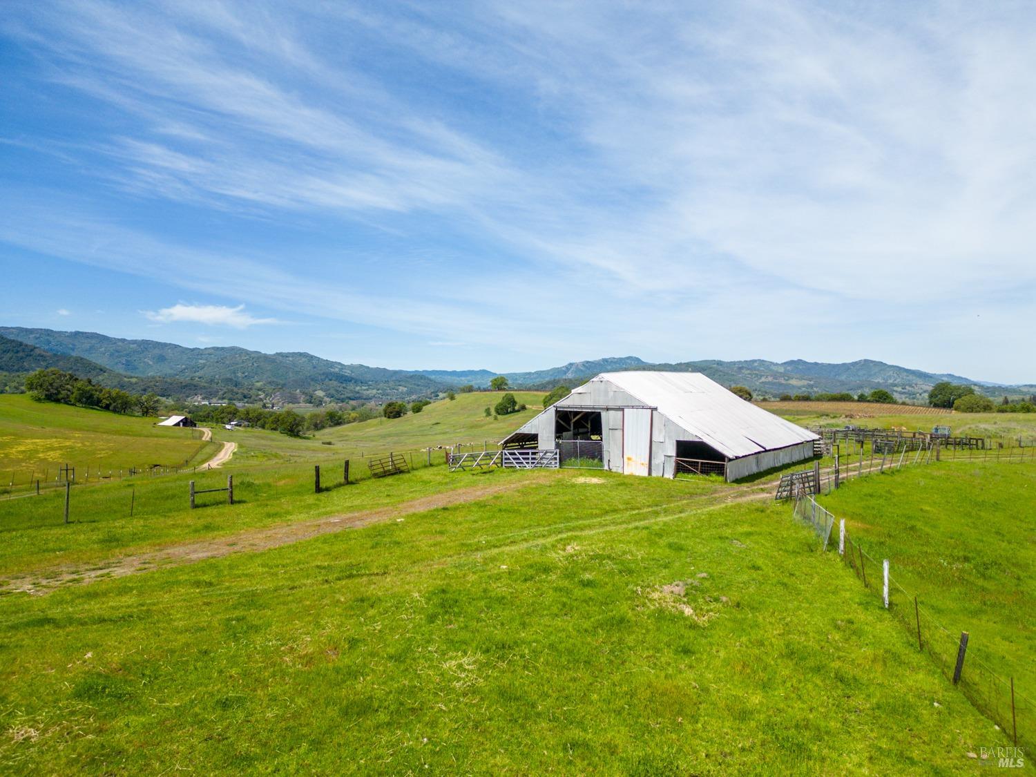 Located just 1.5 hours north of the San Francisco Bay Area and approximately 25 minutes from Healdsburg, The Hopland Hills Ranch spans roughly 800 acres of remarkable privacy and natural beauty in California's Wine Country. With convenient access off Highway 101, this exceptional offering delivers the rare balance of seclusion and accessibility. Positioned along the southern edge of the Sanel Valley and stretching toward the McDowell Valley, the ranch borders the Russian River and unfolds across rolling hills, open meadows, heritage Valley Oaks, and dramatic rock outcroppings. Expansive internal roads provide access throughout the property, inviting exploration by horseback, ATV, or on foot. The setting offers sweeping vistas in nearly every direction, creating a true sense of scale and serenity. Water resources are substantial, including extensive rights from the Russian River and a private lake tucked along the southeastern portion of the ranch. The lake enhances both the aesthetic and recreational appeal, serving as habitat for waterfowl and wildlife while supporting long-term agricultural use. Established vineyard plantings include 17 acres of Cabernet Sauvignon situated on a scenic bench above the primary residence. Along the Russian River corridor, approximately 20 acres of Chardonnay are planted in fertile alluvial soils, with additional acreage prepared for redevelopment. Roughly 200 acres have been ripped and amended for future vineyard expansion. The balance of the ranch is fenced and cross-fenced with stock ponds supporting grazing animals. The 2,356 sq ft farmhouse, completed in 2013, offers four bedrooms and three baths with a warm, refined country aesthetic. A central living area with fireplace and a well-appointed kitchen anchor the home, while wrap-around covered porches create effortless indoor-outdoor living. A separate two-bedroom, one-bath residence provides privacy for guests or caretaker use. An additional ancillary building offers flexibility for office, studio, or future residential conversion. Several agricultural support barns are thoughtfully positioned across the property. Comprised of three legal parcels, the ranch presents opportunity for additional dwellings, making it ideally suited as a multigenerational estate, recreational retreat, or long-term legacy holding. The Hopland Hills Ranch is a rare Northern California offering, where privacy, scale, natural beauty, and an enduring commitment to the land converge.