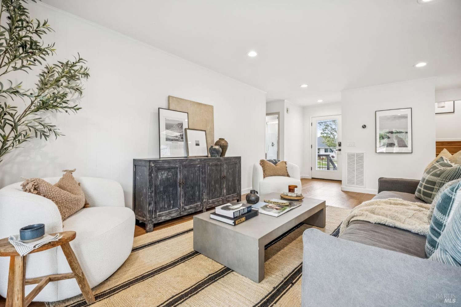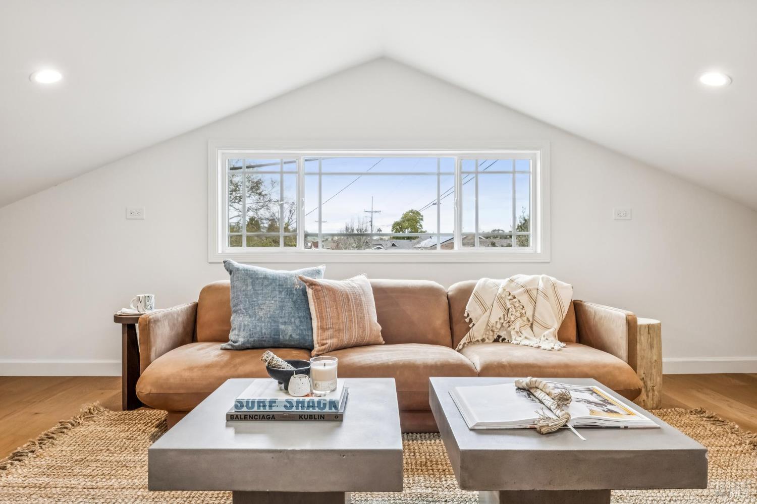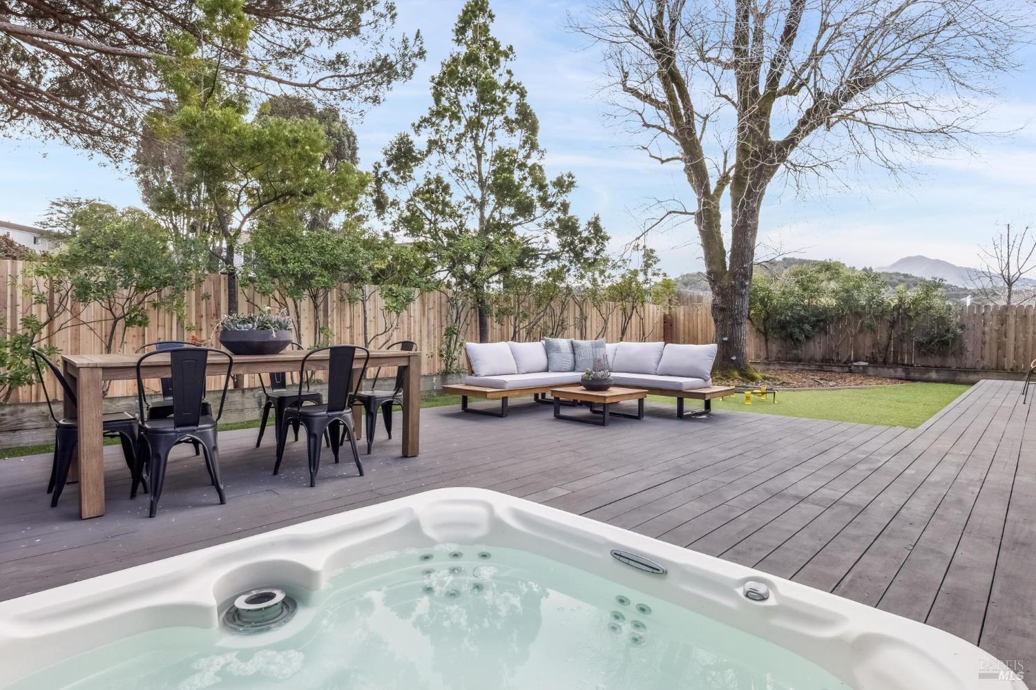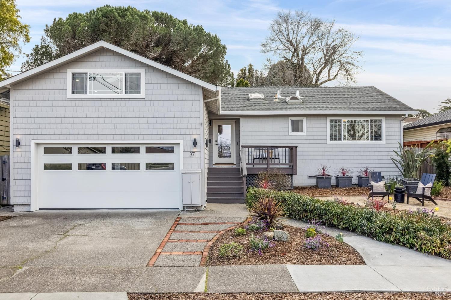 This is the kind of home that checks all the boxes - and then quietly raises the bar. Beautifully updated and move-in ready, 37 Spindrift Passage offers modern comfort with thoughtful design throughout. The three-bedroom home features an additional 415 sq ft of flex space above the garage, ideal for a home office, playroom, or guest retreat that feels intentionally separate. The open-concept living spaces are filled with natural light and anchored by an updated kitchen with quartz countertops, a large center island, and double ovens - perfect for both everyday living and entertaining. The primary bedroom includes an en-suite bathroom and walk-in closet, while a secondary bedroom offers a built-in desk and shelving, ideal for remote work or study. Remodeled bathrooms feature custom tile and sleek, modern finishes. Outdoor spaces are designed for effortless enjoyment, with drought-resistant native landscaping in the front yard and a low-maintenance backyard featuring turf, an expansive deck, and private hot tub. System upgrades include tankless water heater, new furnace, and Nest smart thermostat for efficiency behind the scenes. Located in Corte Madera's desirable Mariner Cove neighborhood, this home offers versatile living, modern updates, and easy access to Highway 101 and the best of Marin and San Francisco.