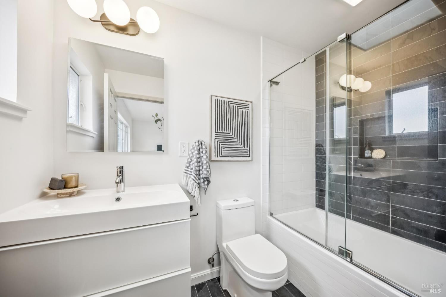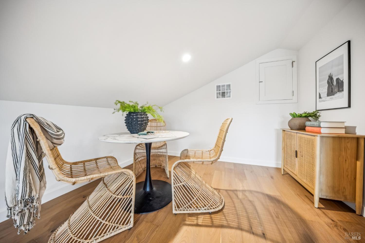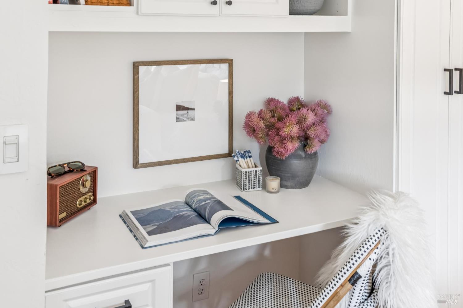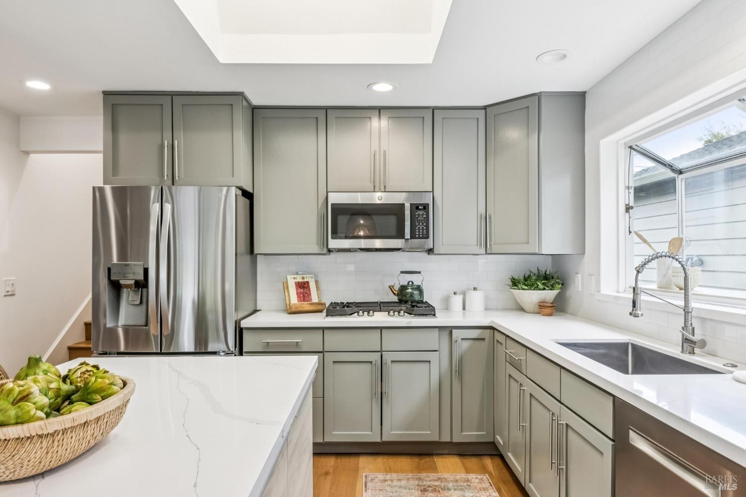 This is the kind of home that checks all the boxes - and then quietly raises the bar. Beautifully updated and move-in ready, 37 Spindrift Passage offers modern comfort with thoughtful design throughout. The three-bedroom home features an additional 415 sq ft of flex space above the garage, ideal for a home office, playroom, or guest retreat that feels intentionally separate. The open-concept living spaces are filled with natural light and anchored by an updated kitchen with quartz countertops, a large center island, and double ovens - perfect for both everyday living and entertaining. The primary bedroom includes an en-suite bathroom and walk-in closet, while a secondary bedroom offers a built-in desk and shelving, ideal for remote work or study. Remodeled bathrooms feature custom tile and sleek, modern finishes. Outdoor spaces are designed for effortless enjoyment, with drought-resistant native landscaping in the front yard and a low-maintenance backyard featuring turf, an expansive deck, and private hot tub. System upgrades include tankless water heater, new furnace, and Nest smart thermostat for efficiency behind the scenes. Located in Corte Madera's desirable Mariner Cove neighborhood, this home offers versatile living, modern updates, and easy access to Highway 101 and the best of Marin and San Francisco.