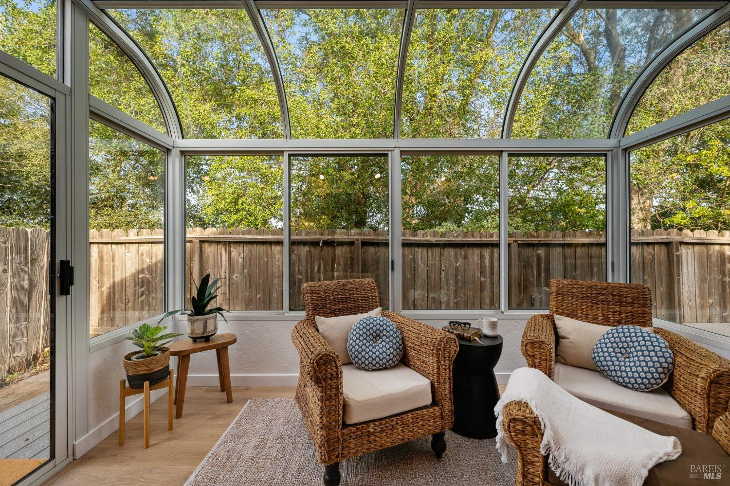 Welcome to 1215 Herbazal Street, a beautifully refreshed two-bedroom, two-bath home filled with natural light in one of Sonoma's most desirable 55+ communities. Built in 1989 and thoughtfully updated with stunning new flooring, refurbished baths, new light fixtures and more, this move-in-ready home offers comfort, style, and easy Wine Country living. Cathedral ceilings elevate the main living area, creating an airy sense of space, while a cozy gas fireplace adds warmth and charm. The kitchen opens effortlessly to the living areas, creating a seamless layout perfect for intimate dinners, casual evenings, and easy entertaining after a day at the Plaza or visiting nearby wineries. Just off the primary suite, a bright and inviting sunroom provides a peaceful retreat for morning coffee, afternoon reading, or simply enjoying the quiet. The backyard deck captures sweet peek-a-boo vineyard views and offers wonderful potential for container gardening, potted citrus, or a charming outdoor seating nook. It's an ideal setting to unwind with a glass of local wine or cultivate fresh herbs under the Sonoma sky. The community itself enhances the lifestyle with a pool, spa, and cabana perfect for social afternoons or relaxed, sun-soaked days close to home. Located just minutes from the historic Sonoma Plaza, Michelin-rated restaurants, boutique shopping, and world-class wineries, this home offers the best of both worlds: vibrant access to everything Sonoma has to offer, and a serene place to call your own. 1215 Herbazal Street isn't just a home, it's your Wine Country retreat.