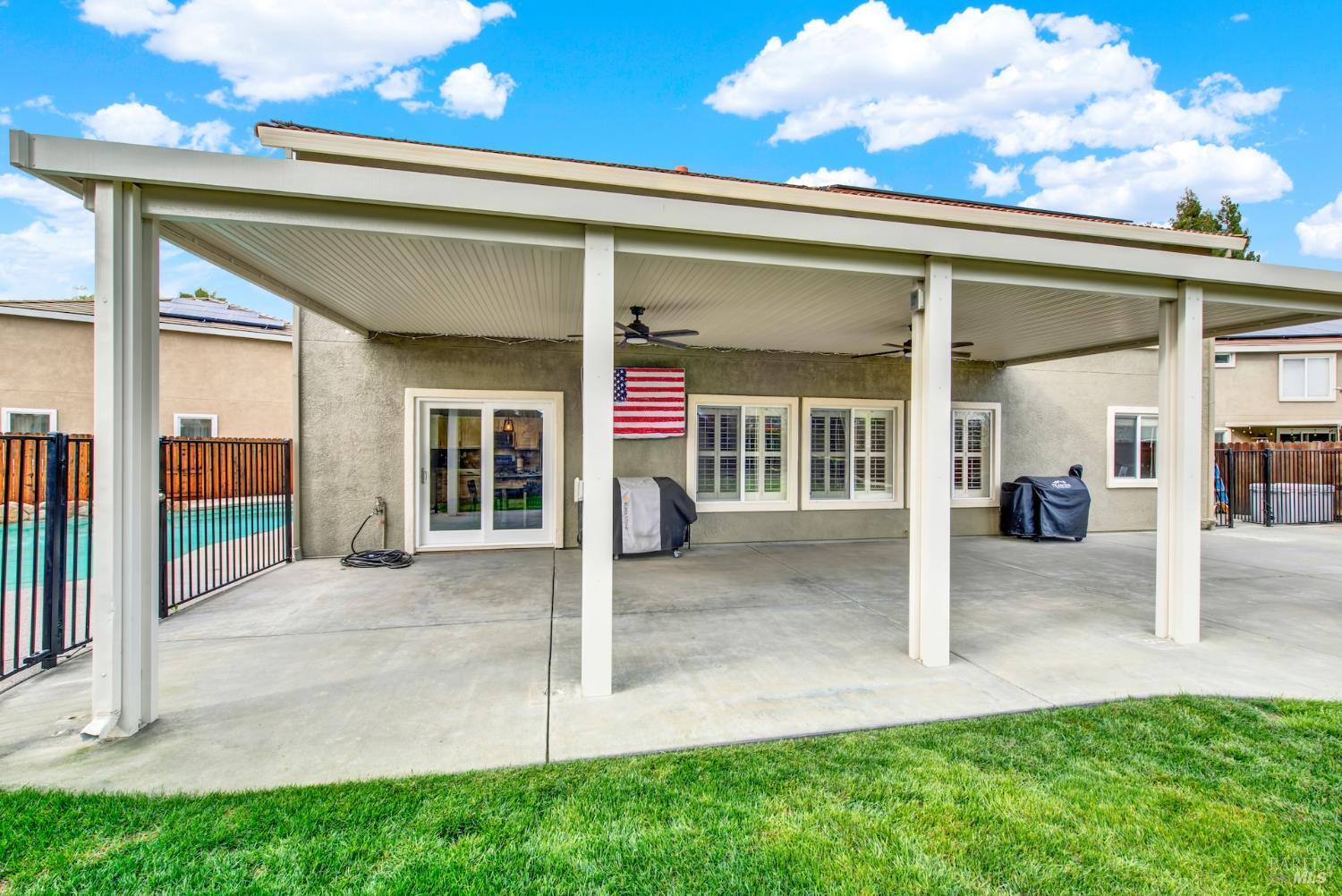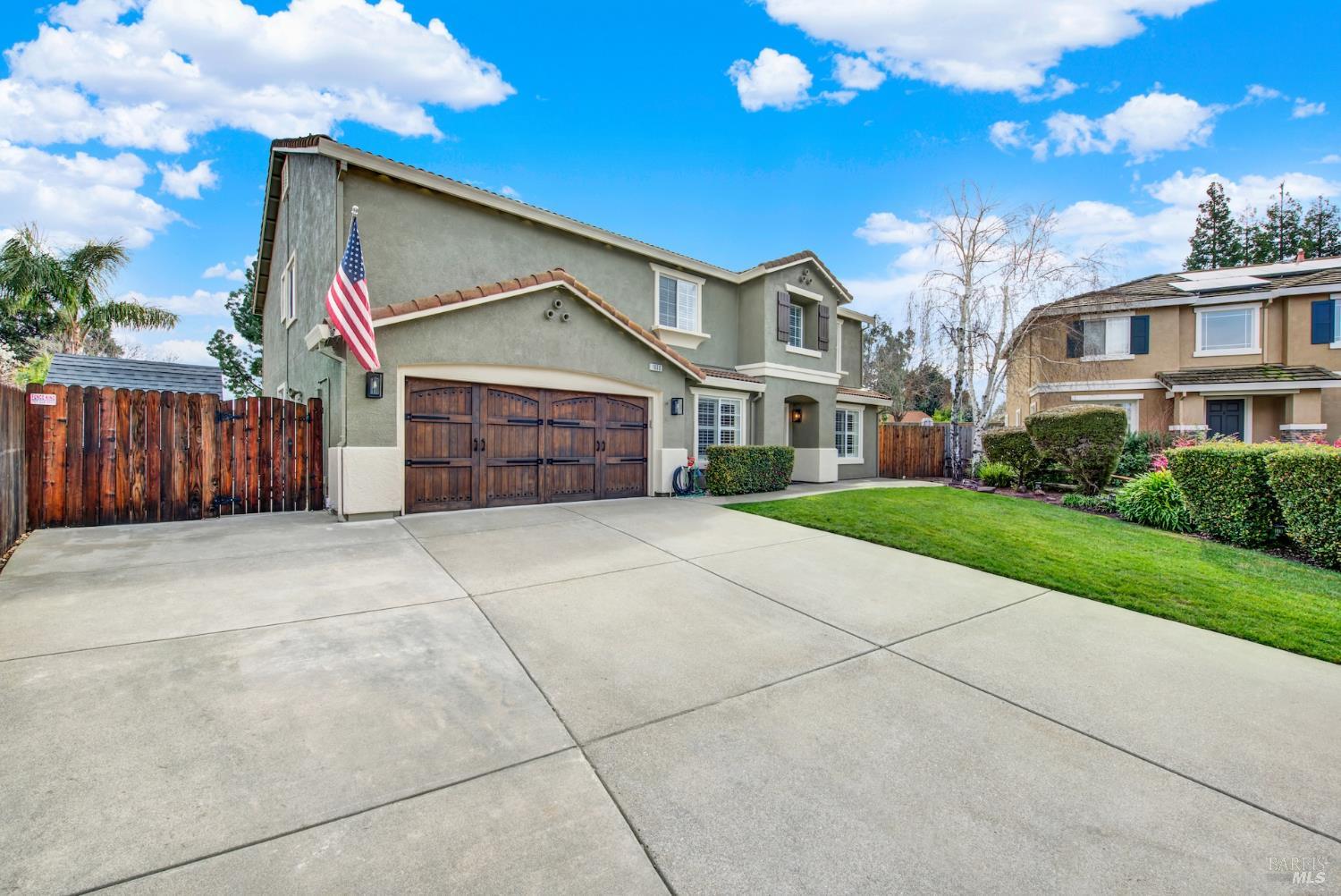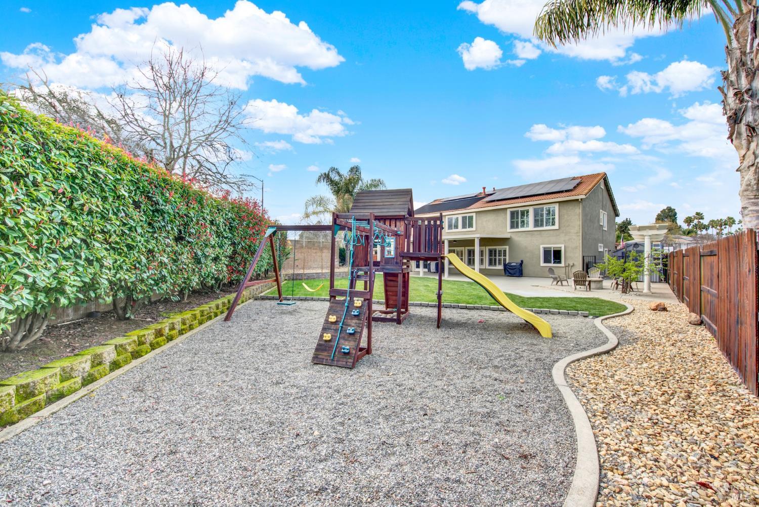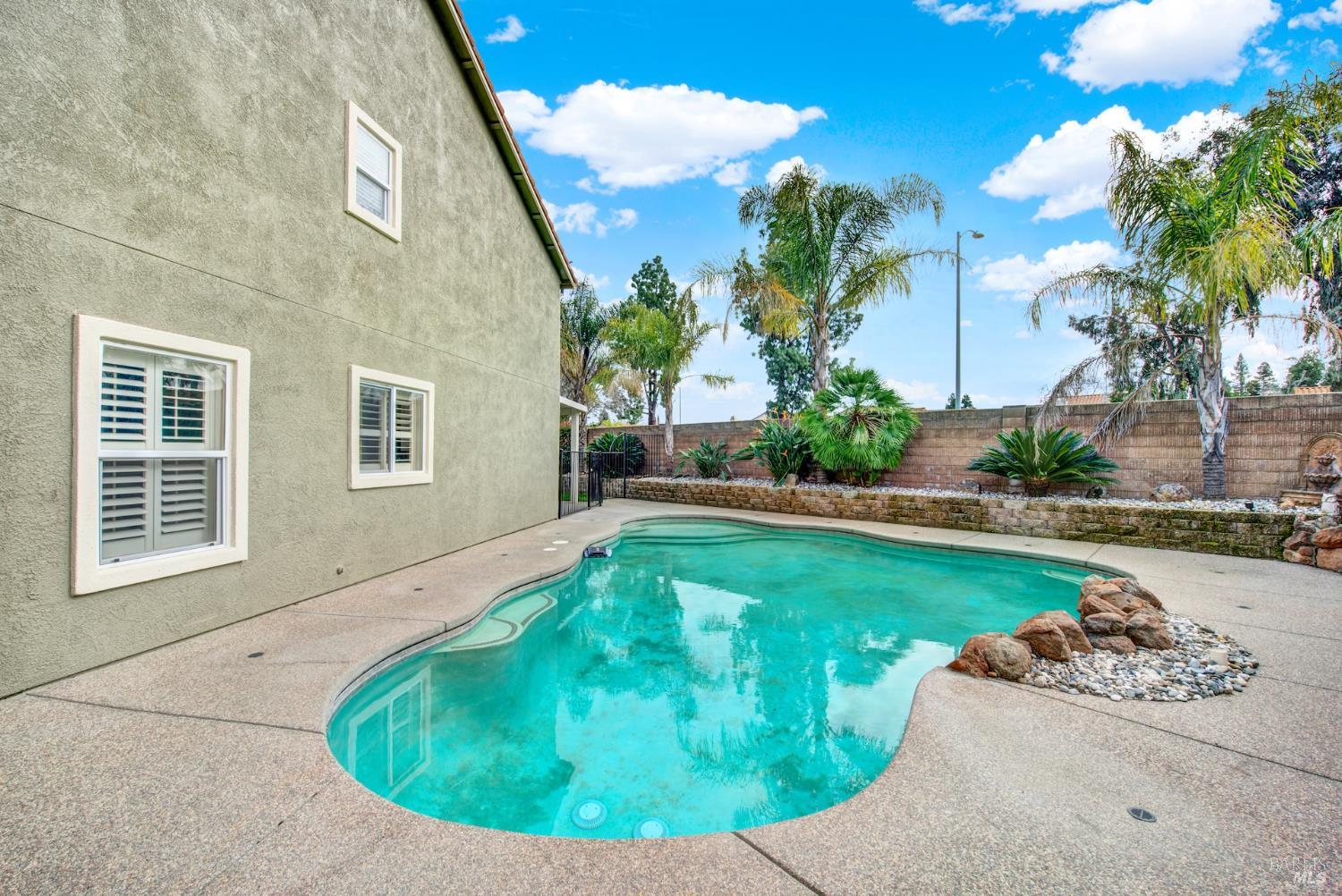 Welcome to your dream home in Vacaville's desirable Stonegate area! Tucked away on a quiet court, this expansive residence offers the perfect blend of comfort, elegance, and functionality in one of the community's most sought-after neighborhoods. As you enter, you're welcomed by a living room and separate dining room. The heart of the home features a spacious layout ideal for both everyday living and entertaining. With 6 bedrooms and 3 bathrooms across 3,534 sq. ft., this home provides flexibility for multigenerational living, guest accommodations, home offices, or creative spaces. You will also find a spacious bedroom and full bathroom downstairs, separate from the rest of the rooms. Retreat upstairs to the oversized primary suite, offering a large walk-in closet, while the additional 4 bedrooms and loft are comfortably sized to meet a variety of lifestyle needs. Step outside and discover what truly sets this property apart. A rare grandfathered side-yard pool placement, allowing for a backyard that is impressively large and full of possibilities. Enjoy warm Northern California days lounging poolside or by the fire-pit. Adding even more value and efficiency, the home includes owned solar, providing long-term energy savings and peace of mind. Not to mention, you will find a reverse osmosis water tank and semi-permanent outdoor lighting. Situated on a generous 10,454 sq. ft. lot, this property offers the space, uniqueness, and lifestyle opportunities rarely found in the neighborhood. Conveniently located near Travis AFB, shopping, dining, and commuter routes, this exceptional home combines comfort, scale, and a standout lot configuration to create a truly special offering.