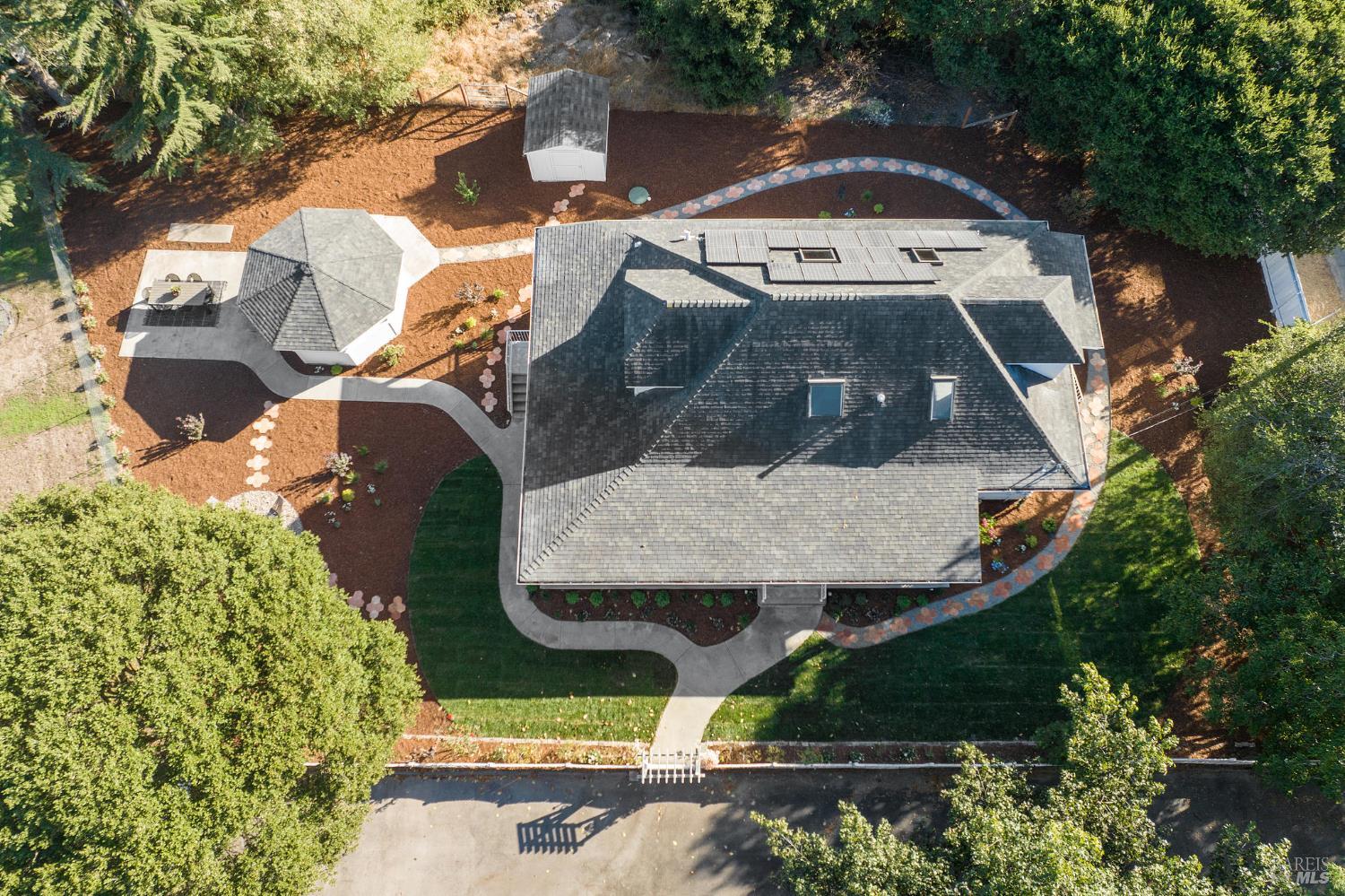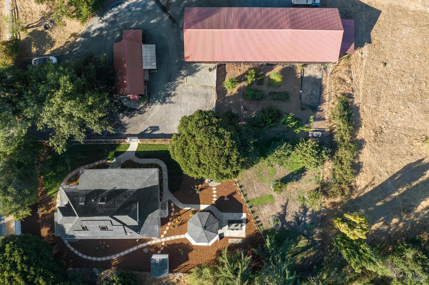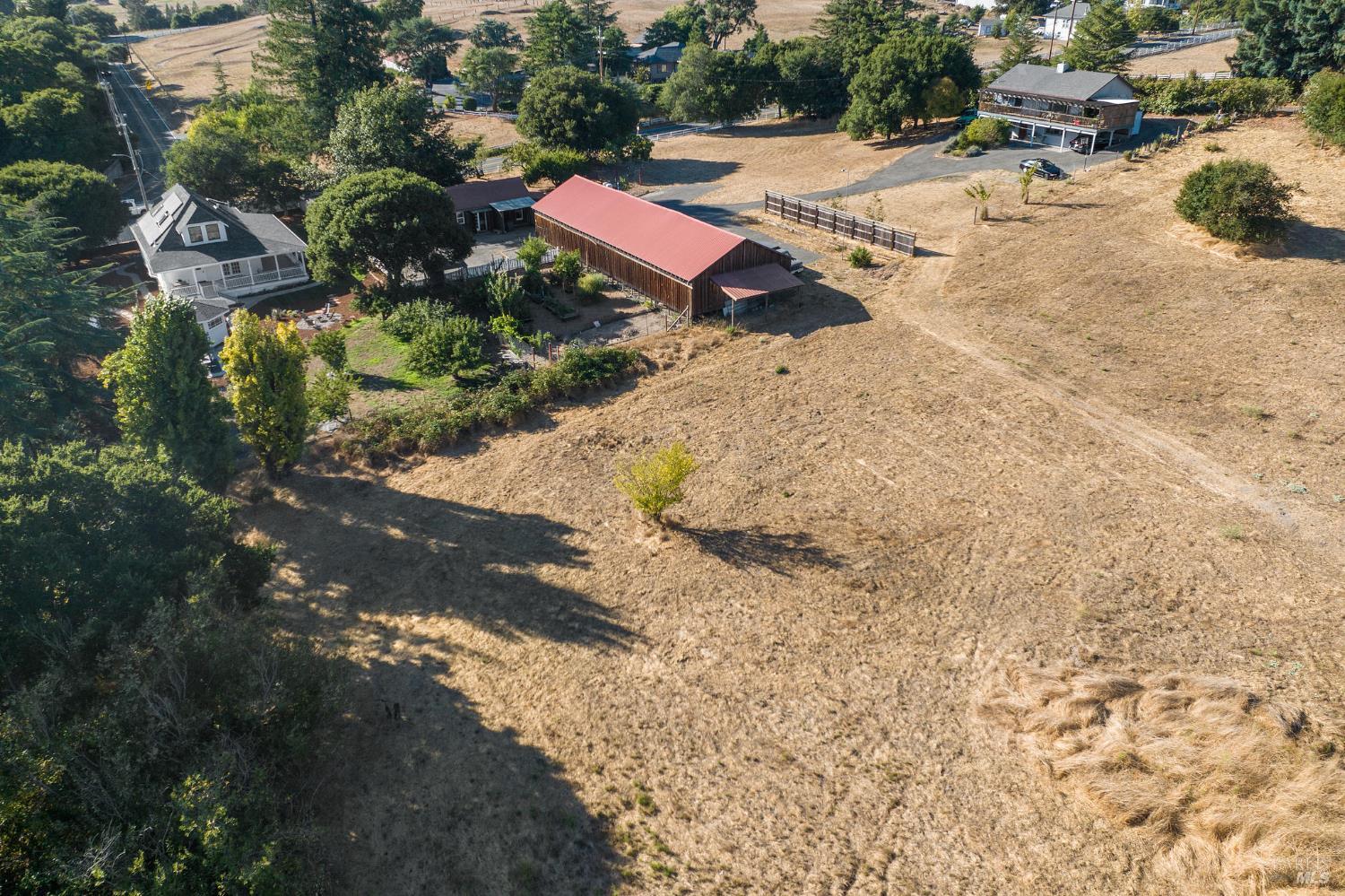 This unique 4.99-acre estate rests gracefully at the West Petaluma city limit and within the Urban Growth Boundarywhere pastoral serenity meets long-term vision and opportunity. The circa-1907 farmhouse has been artfully preserved and thoughtfully updated, honoring its heritage while embracing modern comfort with rooftop solar panels and updated electrical panels. Original built-ins and softwood floors, illuminated by sunlight pouring through generous windows, enhance the home's warm and inviting interiors. The wrap-around porch offers a quintessential welcome, a cool respite on a warm day, and ease of outdoor dining. The beautifully remodeled chef's kitchen with a large working and dining island features granite countertops and professional-grade stainless-steel appliances by KitchenAid, seamlessly blending sophistication with functionality. The main level hosts two generously proportioned bedrooms, while the upper level offers a private bedroom and sophisticated denideal for a library, office, or intimate media retreat. Two refined, tiled baths complement the home's historic character with updated features. Additional improvements include an approximately 2,700 square-foot* large old-growth redwood barn that stands as both an architectural centerpiece and an opportunityideal for a curated workshop, creative studio, or potential rental income. A small, improved barn offers flexibility as an office, artist studio, or guest space. A gazebo with a dining patio creates an enchanting setting. Mature landscaping frames the estate with heirloom roses, vegetation, fruit and nut trees, expansive lawn, and a flourishing vegetable garden. Sited on the hill with views overlooking the barns and open field, the second residence features a window-wrapped living area, a country kitchen, and a separate in-law studioperfect for multigenerational living, guest quarters, or income potential. Approximately two acres of natural, undeveloped land offer space for equestrian pursuits, Farm-to-Table agriculture, or future development, subject to Sonoma County zoning regulations. This is truly a special opportunity to own a compound with proximity to vibrant Petaluma amenities, recreation, and regional access, all within the timeless beauty of western Sonoma County.