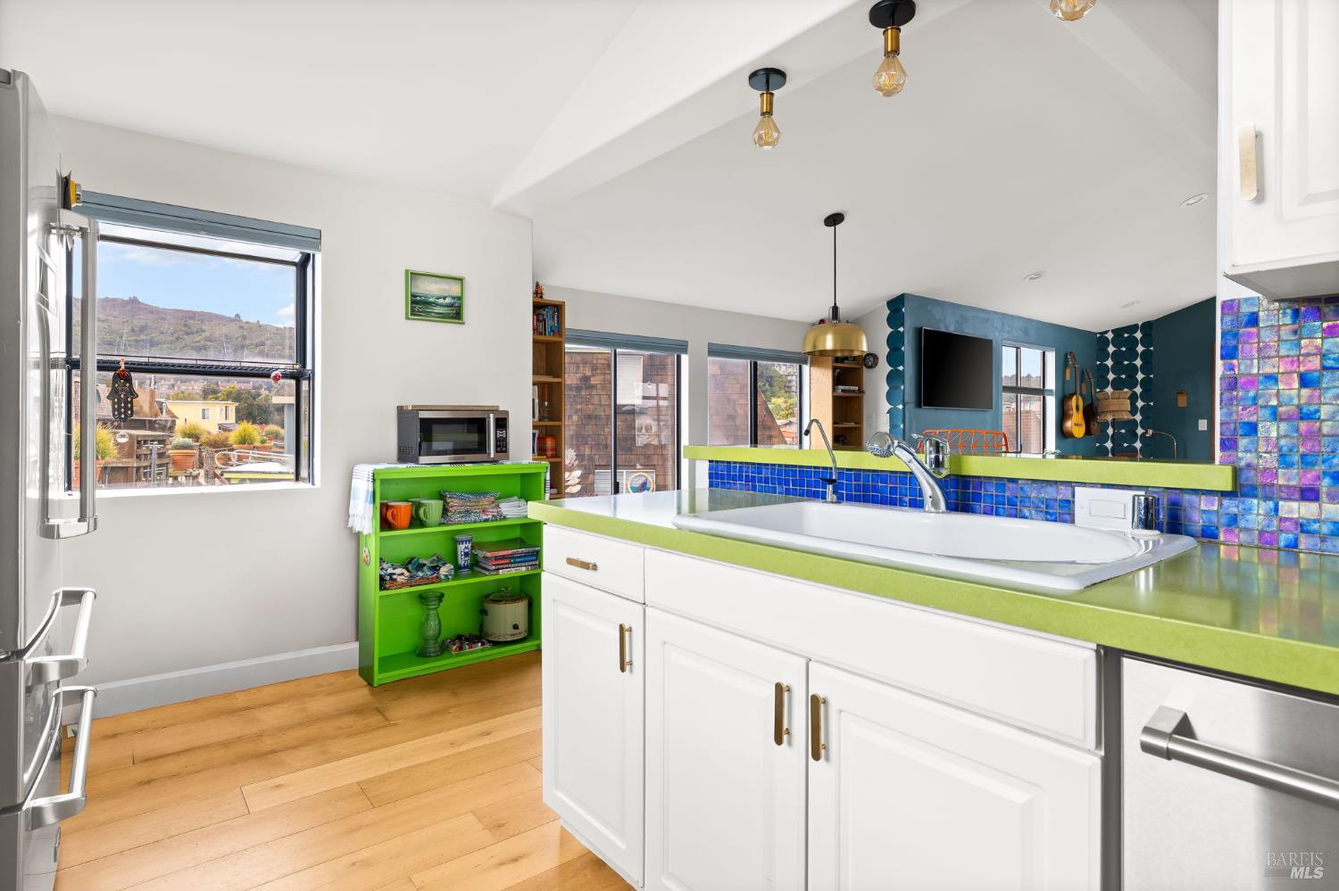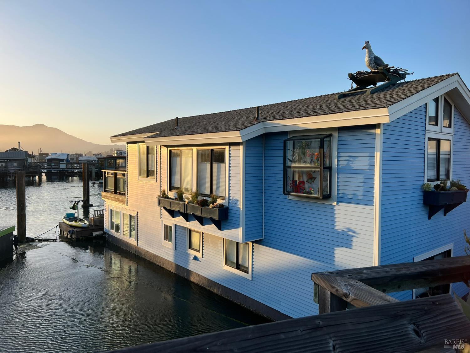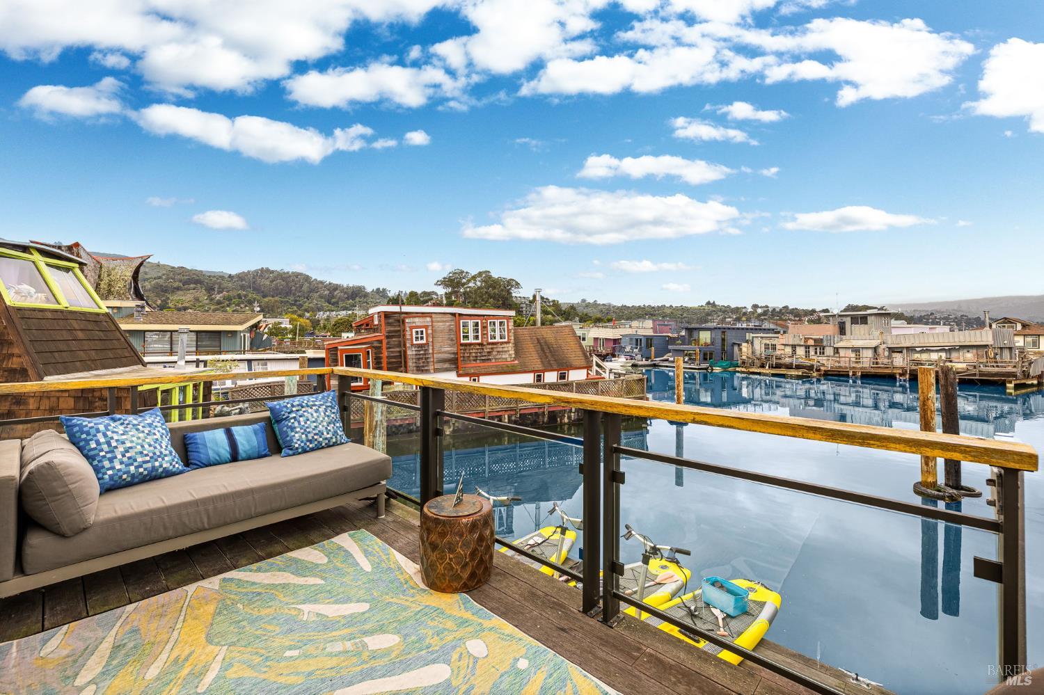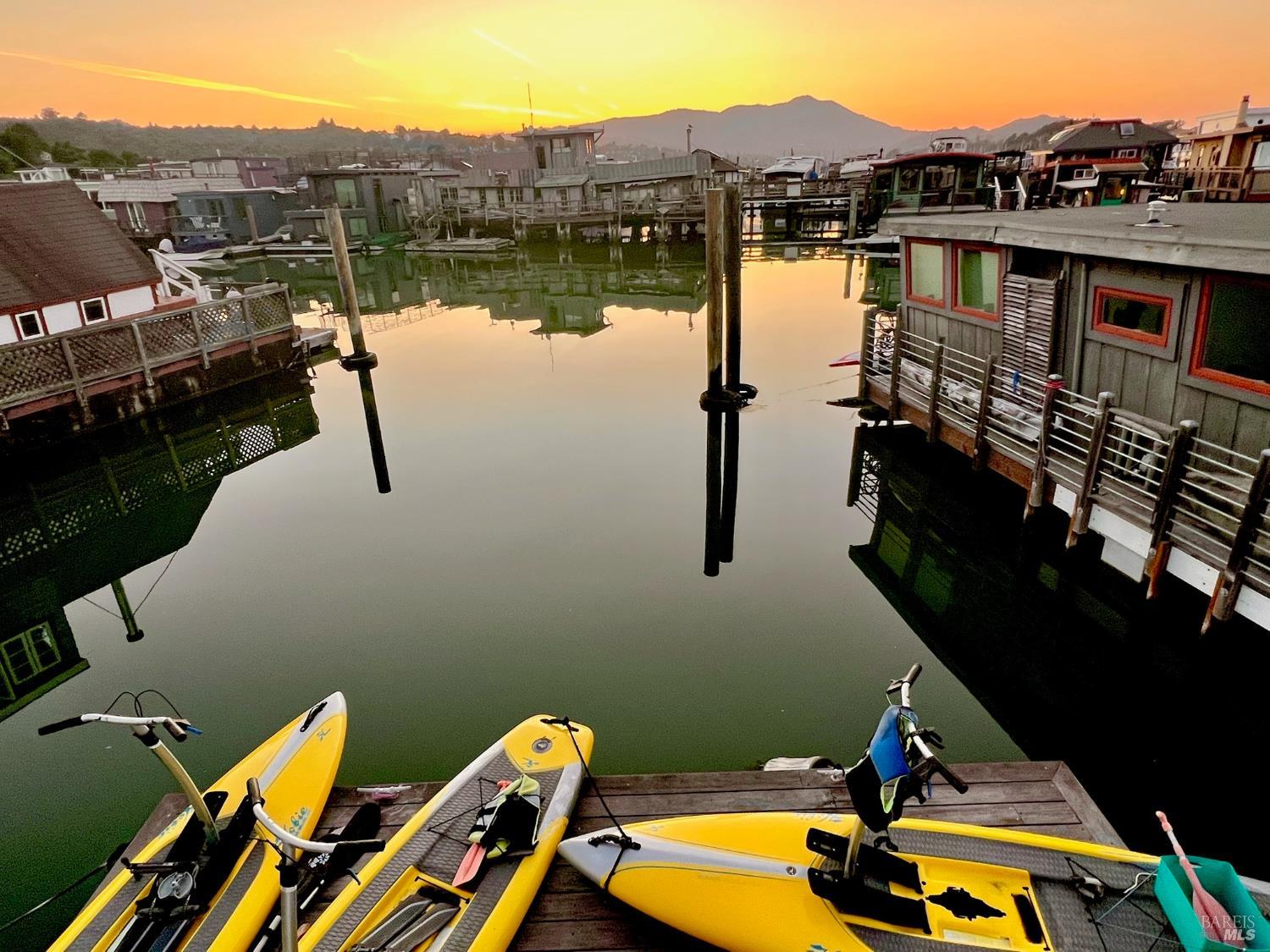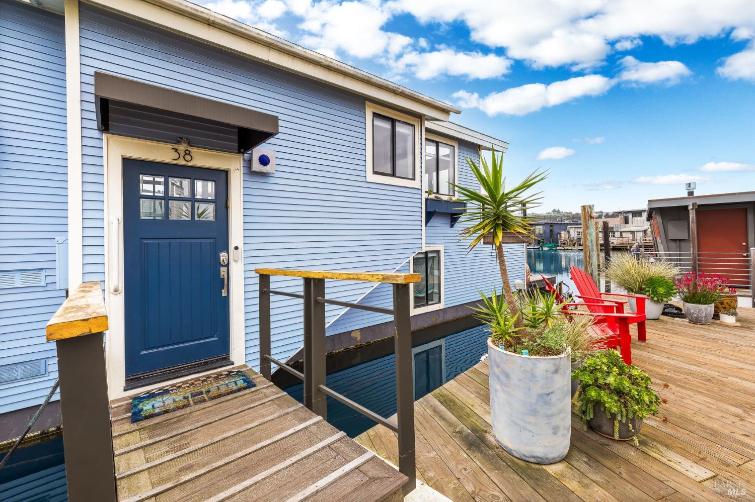 Beyondo has been lovingly remodeled including newly constructed deck off the great room w/ accordion doors which open to amazing views of the water, community & Mt. Tam. Climb down the custom fabricated ladder to the new floating dock and hop on one of your Hobbie standup peddle boards or your Boston Whaler in which you can whisk your family & friends away to a special outing in downtown Tiburon, Sausalito or even San Francisco. This houseboat sports recently installed, high-quality hardwood floors, a colorful vivacious kitchen featuring a breakfast bar, loads of windows & top end appliances. The exceptionally wide main level has an open floor plan, vaulted ceilings and a dining area w/ built-in banquette providing extra w/storage. Ubiquitous windows yield an uncommon feeling of spaciousness and light. The primary bedroom has ample (newly built) closet storage, abundant light & water views. the Primary bath is equipped with a steam shower & jacuzzi tub. The second bedroom & bath, office & laundry closet complete the lower level. Beyondo is comfortable, elegant & move-in ready. Now is the time to make the move.