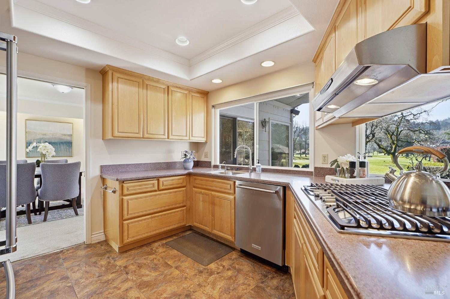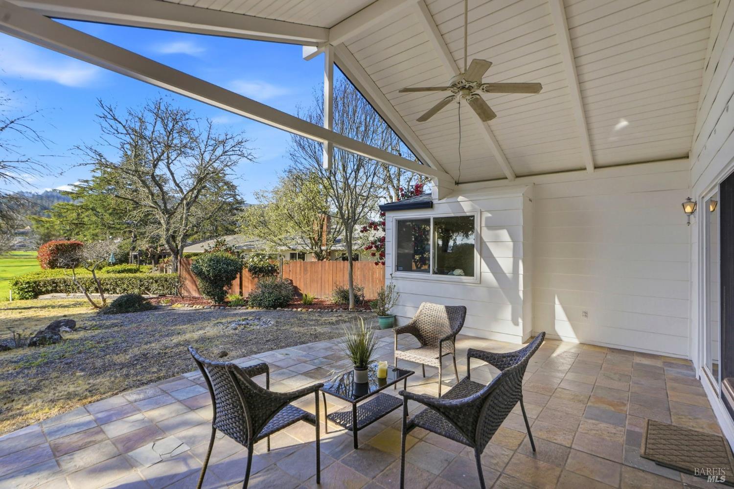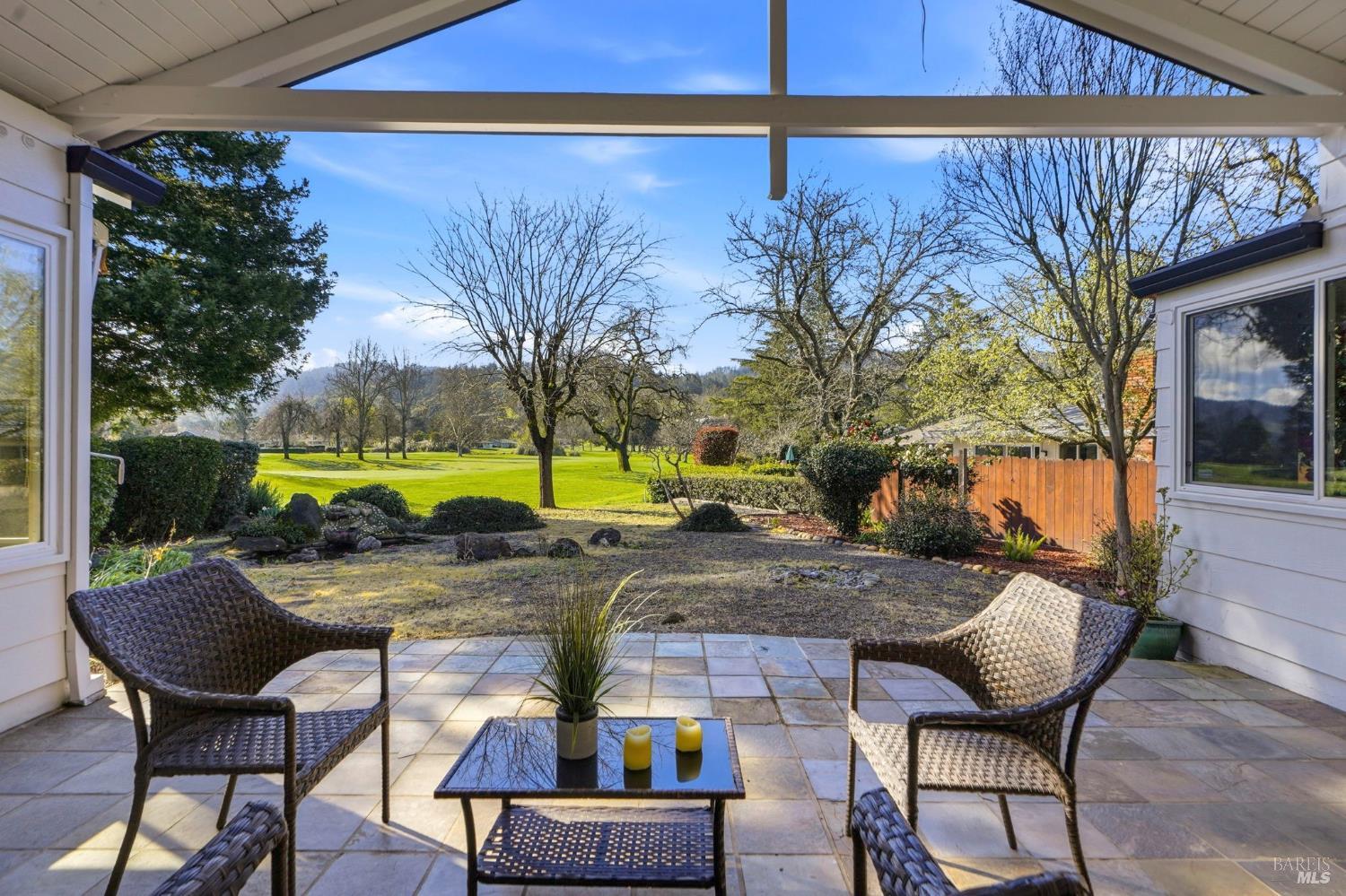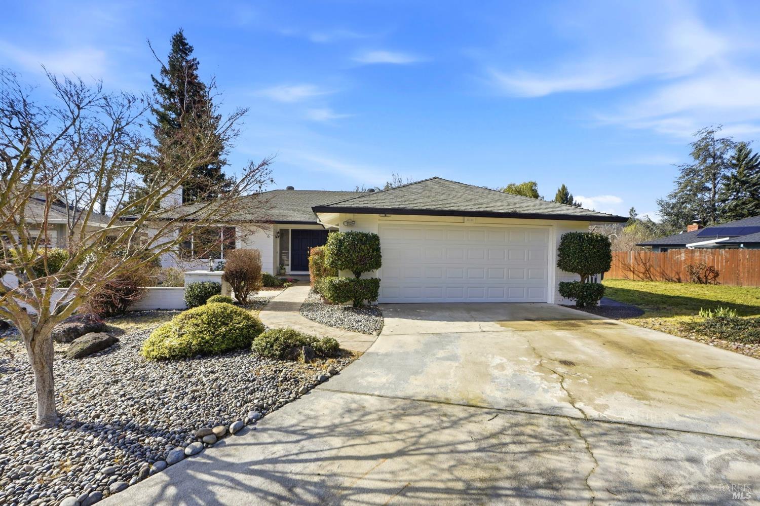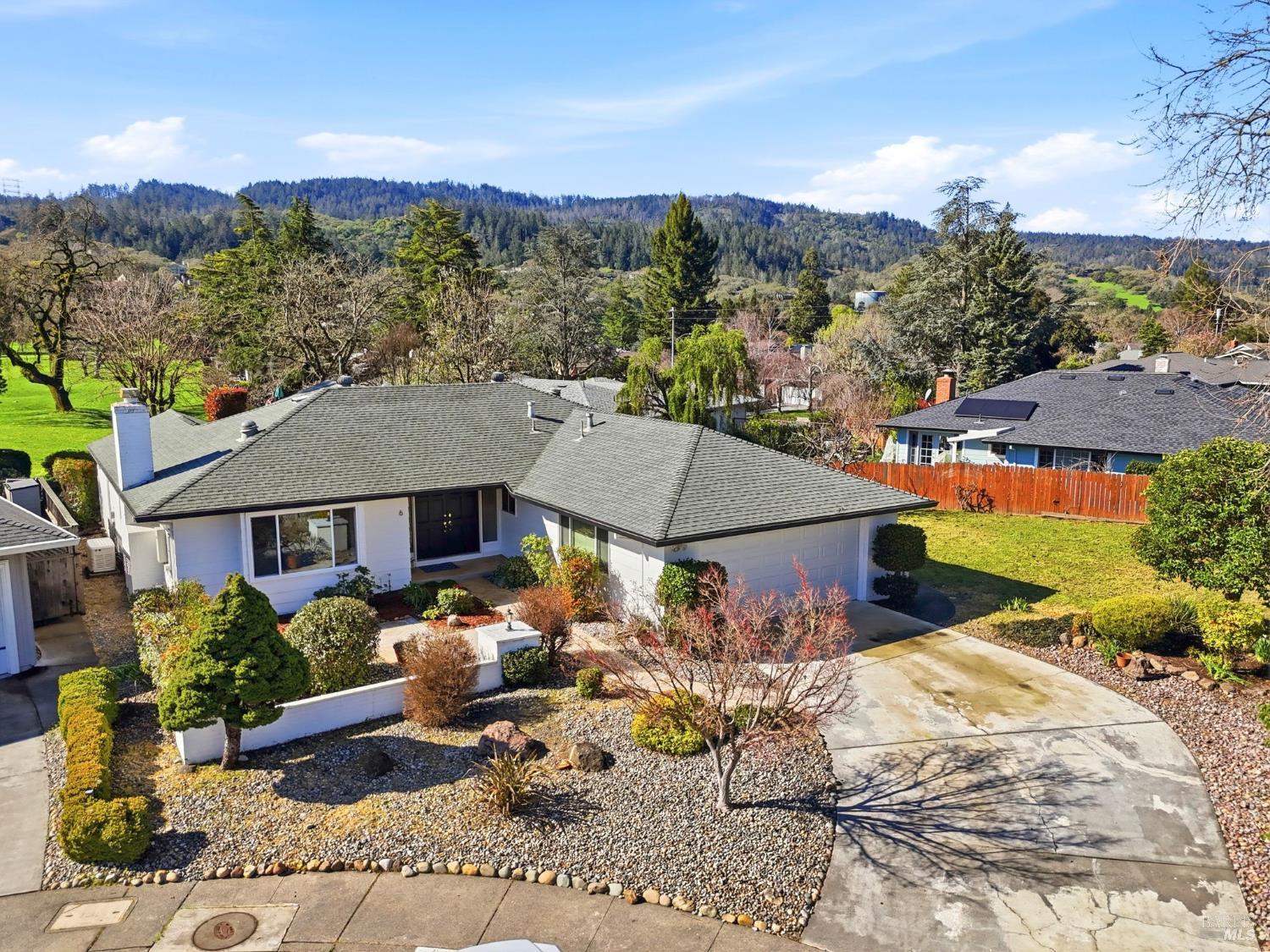 Dream Oakmont living in this expanded single-level Birch Plan. Tucked away on a quiet cul-de-sac, this home offers expansive fairway views plus a side garden area with fruit trees and a vegetable garden. The thoughtfully designed floor plan features a double-door formal entry with a large coat closet, an expanded living room with fireplace, and an adjacent dining room ideal for milestone gatherings. Sunroom addition provides additional space for entertaining, relaxing and hobbies. The updated kitchen showcases light wood cabinetry, stainless steel appliances, and a pass-through window overlooking the covered back patio. A breakfast area and family room with slider to the patio create seamless indoor-outdoor living. The spacious primary suite includes two closet areas and an en-suite bath with shower. The second bedroom features a closet and is served by a hall bath with tub-over-shower. Laundry room with washer and dryer included. Additional highlights include a two-car garage with workbench, Generac backup power system, vaulted covered patio with slate flooring, solar tube skylights, front patio area, and expansive side yard. Ideally located near trails, Oakmont Golf Club, Oakmont Village amenities, vibrant shopping, and the Wine Country lifestyle.
