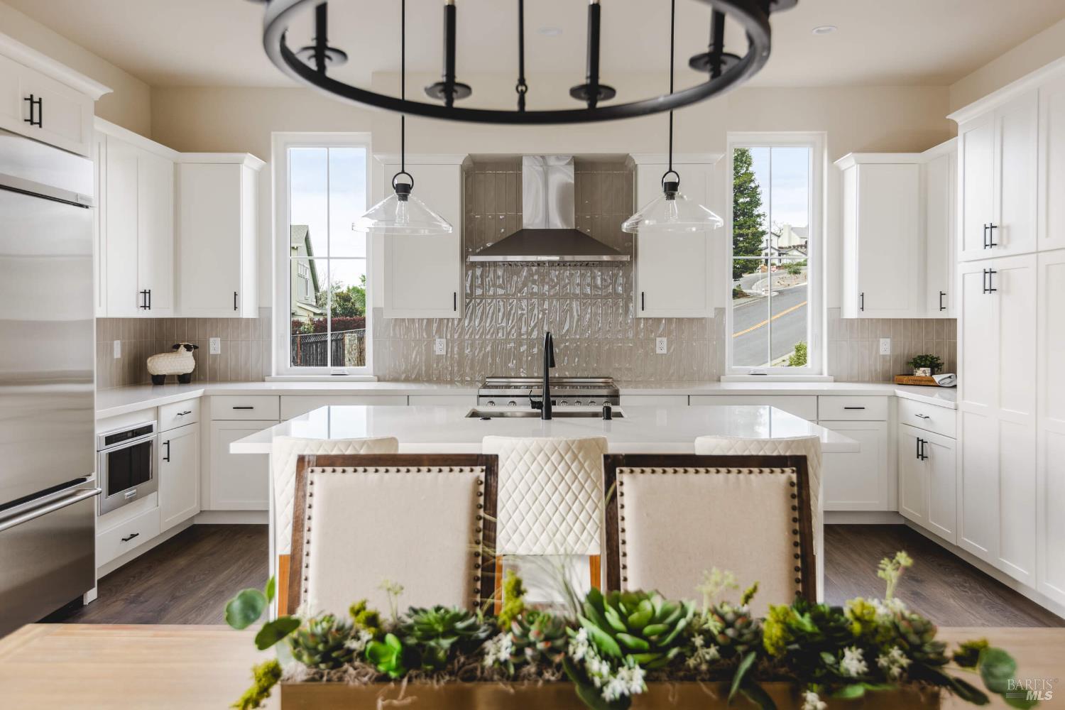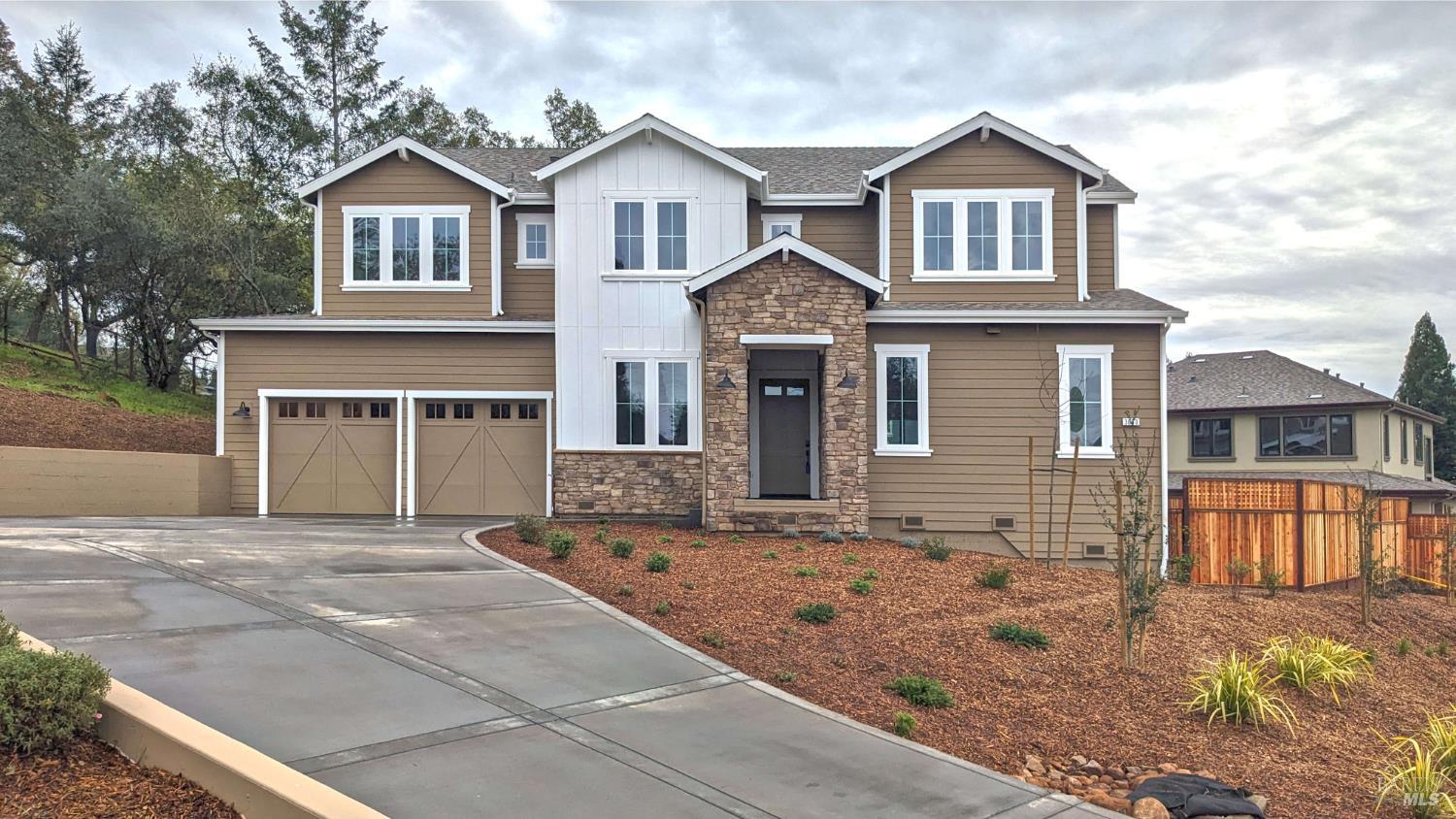 Grand opening Sunday March 1, 1-5 pm, with refreshments served. Several homes available to tour. Welcome to Carlile Place, an intimate custom community of only 13 homes that have been thoughtfully designed by Christopherson Builders to be harmonious and distinctive. This farmhouse-style residence offers approximately 3,373 sq ft of interior living on over 1/2 acres. The main level features a junior primary suite with spa-style entry shower and walk-in closet-one of two primary suites, ideal for flexible or multigenerational living. The great room includes a fireplace and opens to a covered loggia with outdoor kitchen, creating a seamless indoor-outdoor living experience. Also on the main level are a spacious dining area, a large kitchen with island and sink, stainless steel appliances, an office with double-door entry, and a powder room. The upper-level shines with media/family room, an oversized primary suite with sitting area, walk-in shower, and separate soaking tub. There are two secondary bedrooms, a guest bathroom, and a generously sized laundry room with abundant counter space and sink. Additional features include a 3-car garage with utility sink and EV wiring. The home is set against a tree-lined hillside adjoining Fir Ridge Park and is 1 block to Fountaingrove Golf Course. Close to Wineries, 101. 15 minutes to Healdsburg and 40 minutes to the coast. Farmers Insurance quotes on file. Two home warranties offered.