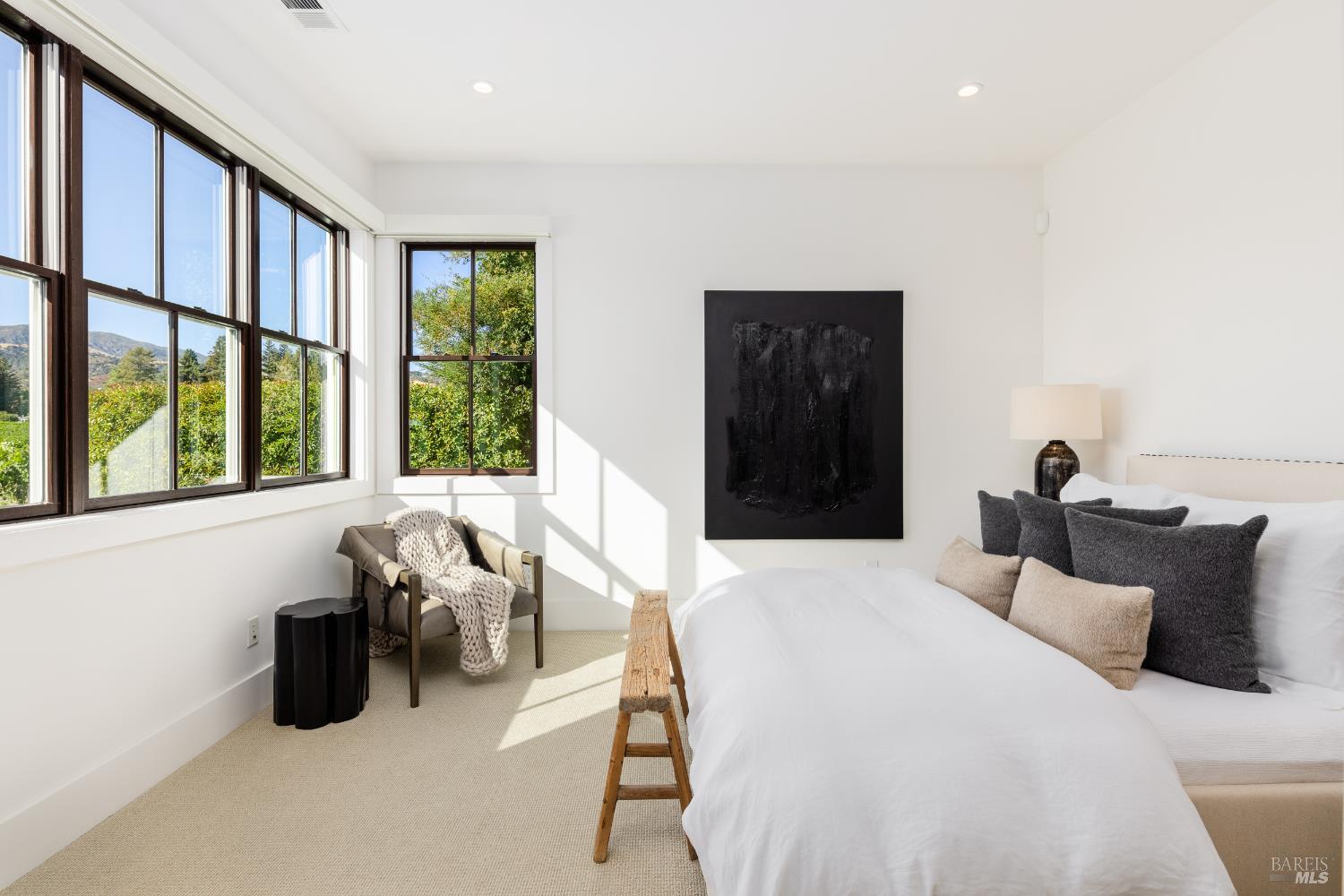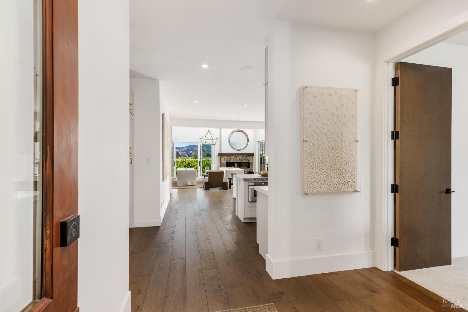 A truly stunning single-level modern farmhouse with breathtaking vineyard and hillside views, set in one of Alexander Valley's most coveted locations on the cusp of Healdsburg and Geyserville. Thoughtfully renovated and expanded in 2017, this 3-bedroom, 3-bath residence rests on 1.14 private acres, offering an exceptional blend of tranquility, style, and refinement. The light-filled great room showcases soaring ceilings and expansive sliding glass doors, creating a seamless indoor-outdoor flow. A charming wraparound porch, framed by magnificent hydrangeas, enhances the drama of the majestic setting. The expansive kitchen and dining area balances elegance and function with a large leathered granite island, Thermador 6-burner range, copper farmhouse sink, abundant cabinetry, and a striking glass-enclosed wine wall perfect for relaxed living and entertaining alike. The primary suite is a serene retreat with vineyard views, a private porch, custom walk-in closet, and a spa-inspired bath featuring a marble soaking tub and generous shower. Two additional en-suite bedrooms provide ideal accommodations for guests. Outdoors, enjoy a new saltwater pool, alfresco dining, level lawns, fruit trees, garden beds, and approximately 15 rows of Alexander Valley Cabernet. The barn-style garage includes an exercise room and conceptual drawings for a pool house or guest quarters. Offering a sublime country feel away from it all yet just minutes to downtown Healdsburg and Geyserville, this location is the best of both worlds. Perfect as a full-time residence or easily manageable as a luxury Wine Country retreat, this is a rare gem.