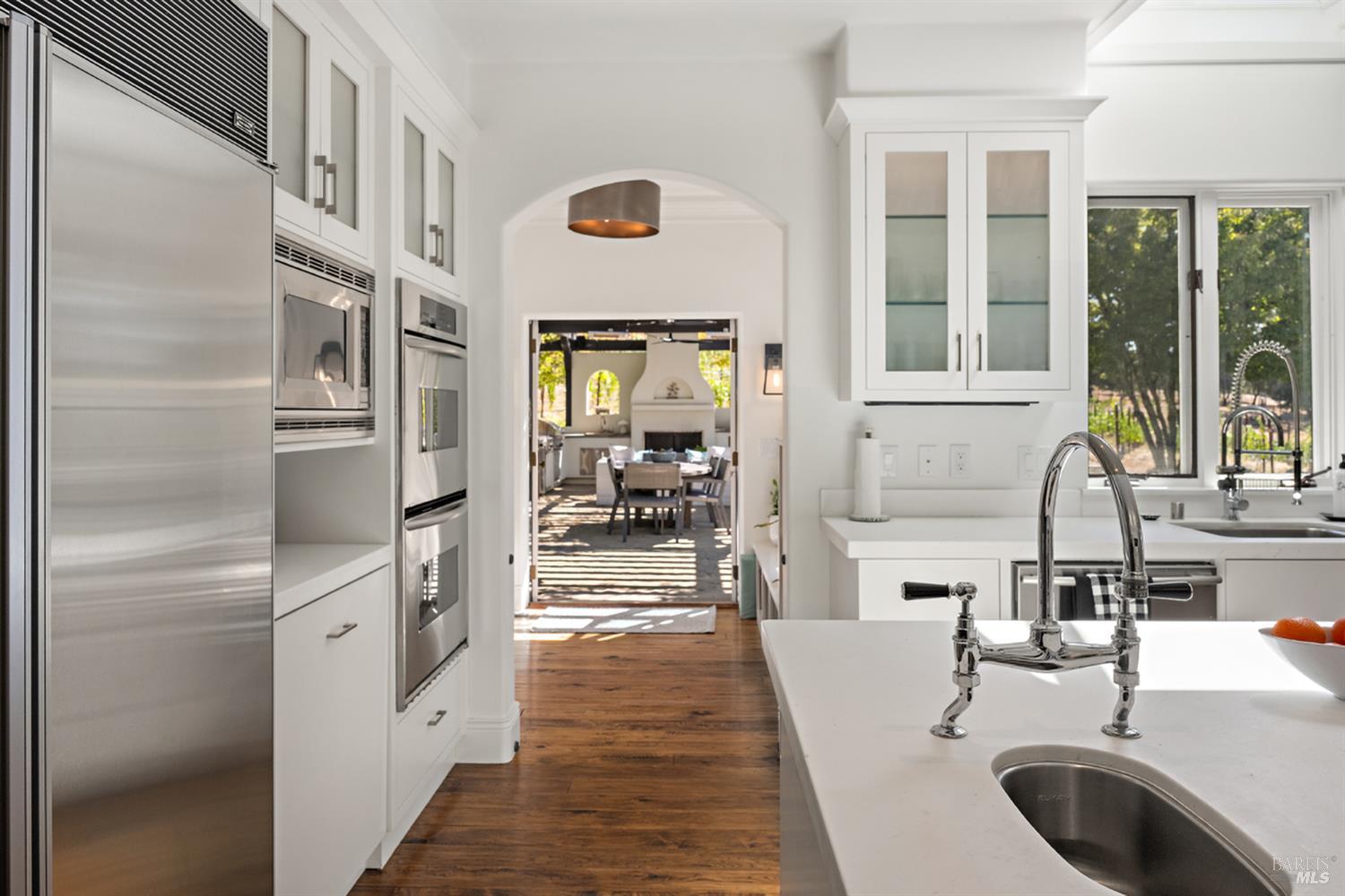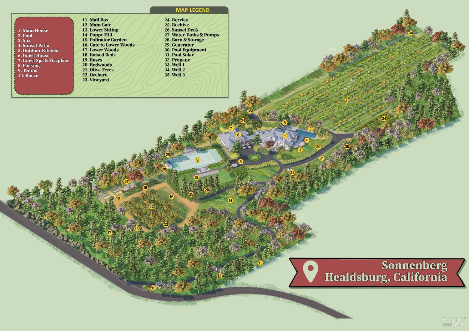 Welcome to 4395 Pine Flat Rd, an elegant Healdsburg estate offering some of the most breathtaking views in Sonoma County. Just minutes from downtown yet worlds away, this extraordinary property blends luxury, comfort, and resort-style amenities on 10+ mostly usable acres. The Main Residence consists of a four-bedroom, five-bathroom home is designed for both entertaining and everyday living. High ceilings, rich wood floors, and expansive windows frame vineyard and mountain vistas at every turn. Highlights include: Chef's kitchen with bar seating and seamless flow to the outdoor dining pavilion, formal dining room and multiple living spaces including a family room, library/office, gym, and wine cellar, main-level suite perfect for guests or multi-generational living, upstairs primary suite with private balcony, sitting area, and generous storage. A spacious detached studio offers flexible use for guests or extended family. Its outdoor entertainment area, complete with fireplace, is ideal for gatherings under the stars. This estate was made for relaxation and play, featuring a sparkling pool & hot tub, tennis court & bocce court, outdoor kitchen & vineyard-view dining, orchard, rose gardens, and raised garden beds, serene spots for birdwatching or simply doing nothing at all.