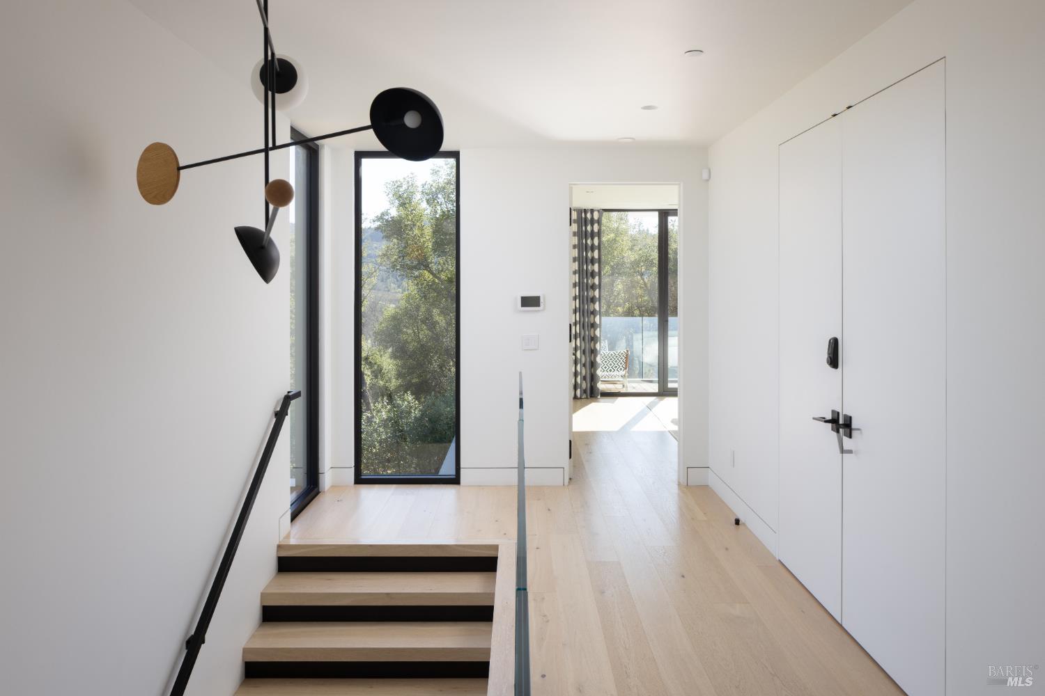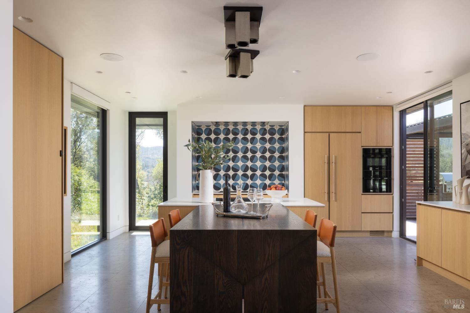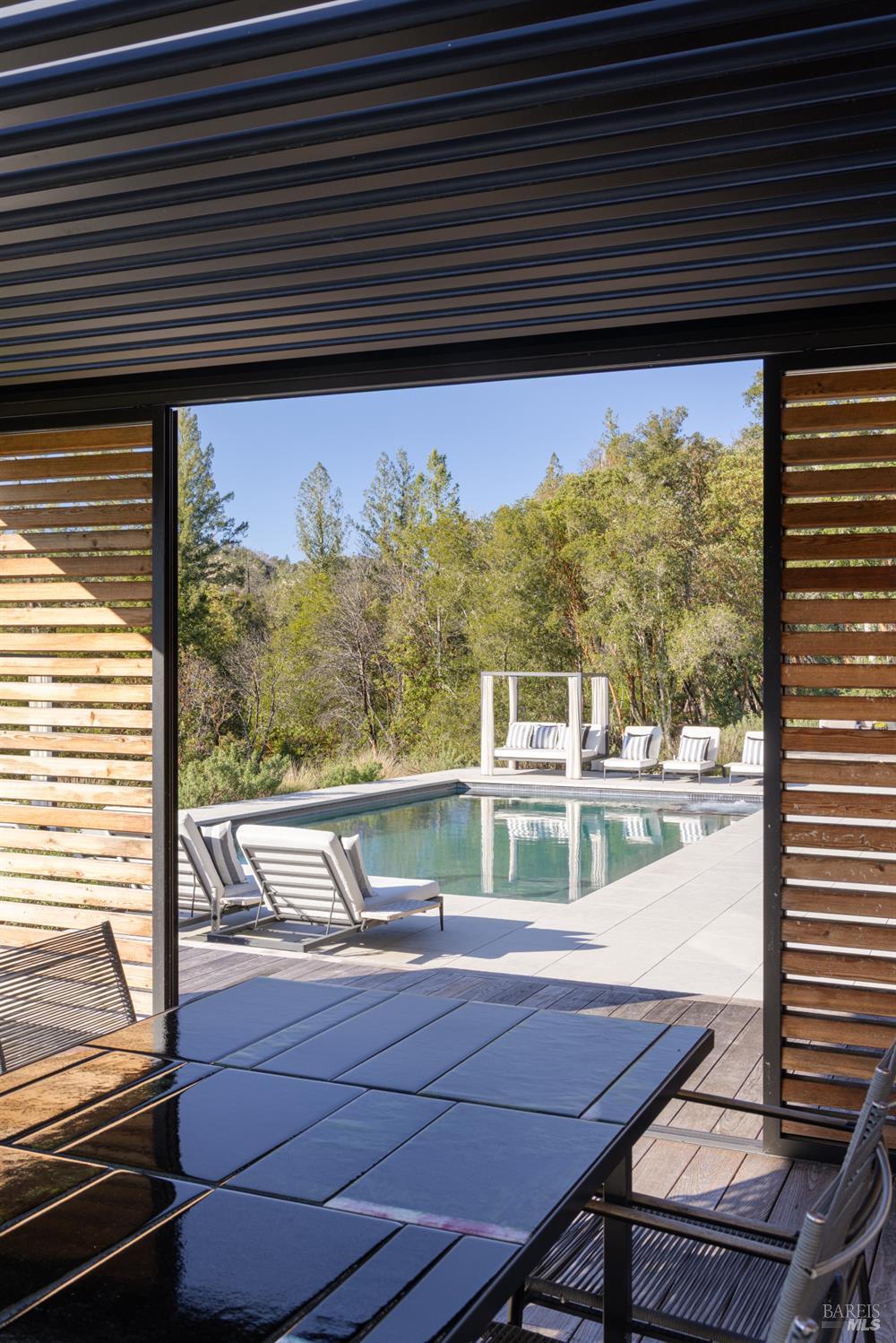 Situated minutes to Calistoga's world-class spas, wineries, and culinary destinations, 8495 Franz Valley School Road is an unparalleled expression of contemporary refinement, privacy, and natural beautya modern sanctuary at the intersection of architecture and landscape. Designed by the renowned Signum Architecture and brought to life by Fairweather and Associates in 2020, this private retreat redefines modern luxury. A gated entrance and short drive unveil a home described as having a strong sense of horizontality and a palette of wood-on-wood, punctuated with metal. Durable materials of concrete, stained cedar, aluminum-framed expanses of glass, and Japanese shou sugi ban siding (insect and fire resistant) unify beneath a sleek parapet roof. Walls of glass disappear to dissolve the boundary between indoors and out and lead to an inviting heated pool w/ spa and an outdoor kitchen with expansive views. A private tennis court adds to the resort-style living. The layout is thoughtfully attuned to the Terremoto/Alain Peauroi masterful landscape design complementing the architecture's geometric precision. In keeping with the home's open and transparent ethos, a carport replaces the traditional garage, ensuring the architecture remains unobtrusive and deeply connected to the land.