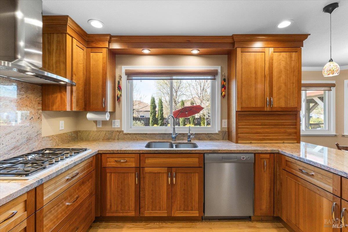 This is more than a home, this is a wine country gardeners paradise retreat designed for living peacefully yet close to town. Set on a well manicured .61 acre corner cul-de-sac lot in Northwest Santa Rosa, this 4-bedroom, 3-bathroom residence offers 2,633 sq. ft. of upgraded living space where comfort meets intention. A full bedroom and bath on the main level provides flexibility for guests, extended family, or a private office. The remodeled kitchen anchors the home with warmth and functionality, flowing seamlessly into inviting gathering spaces. Thoughtful upgrades, energy-efficient owned solar systems, and quality improvements throughout reflect true pride of ownership. But the magic truly begins outdoors. The backyard is a curated orchard experience mature Fuyu persimmon, cherry, plum, peach, pear, dwarf nectarine, lemon, guava, and Manzanillo olive trees create a seasonal harvest right outside your door. Imagine summer dinners under the covered patio, fresh fruit picked steps away, and space to unwind in total privacy. With room for a future pool or potential ADU (buyer to verify), this property offers rare flexibility for expanded living, investment opportunity, or creating your ultimate backyard oasis. A three-car garage and RV parking complete the package blending practicality with lifestyle. Homes that offer this level of upgrades, garden abundance, and expansion potential are rare. This is wine country living at its finest.