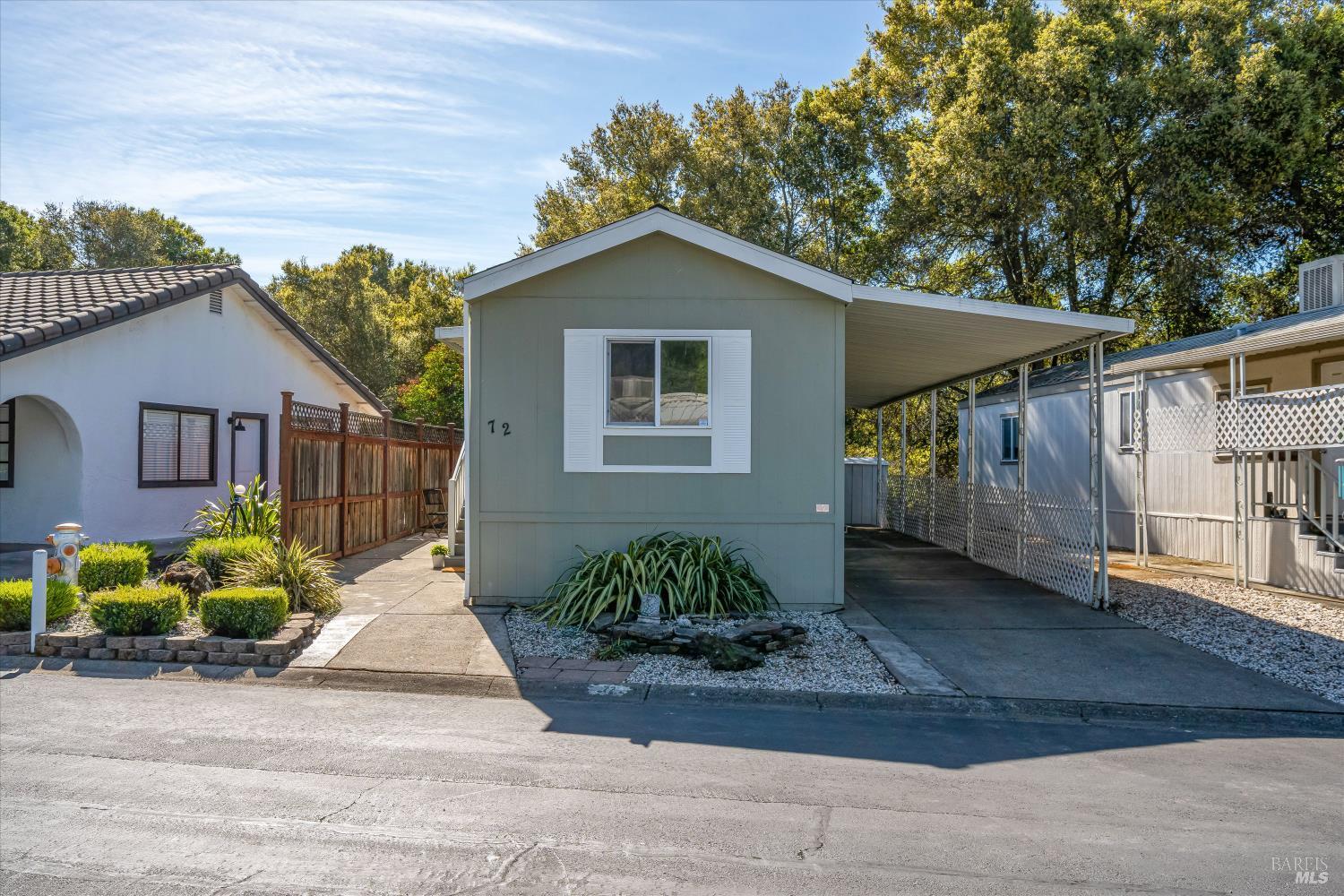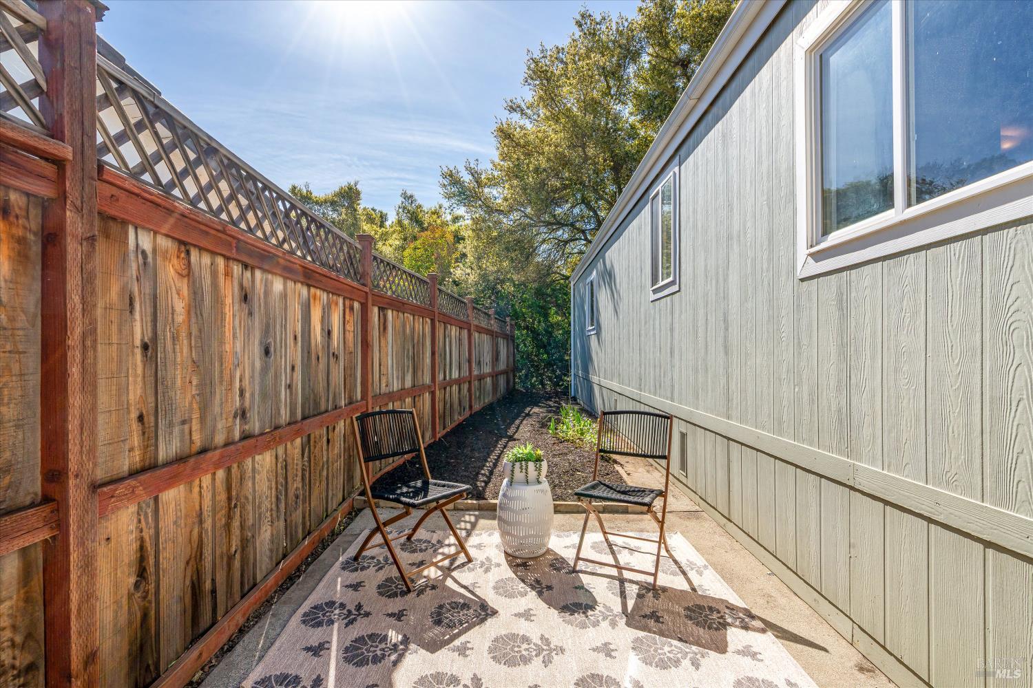 Welcome to Sonoma Oaks, a peaceful 55+ community in the heart of Sonoma Valley. Ideally located near the clubhouse and pool, this home enjoys a quiet setting overlooking a community greenbelt, offering a calm and pleasant outlook. Freshly painted inside with new flooring throughout, new toilets and new roof. Impeccably maintained, the home is clean, refreshed, and move-in ready. The efficient layout offers two bedrooms and two bathrooms within approximately 800 square feet, creating a cozy and comfortable living space designed for simplicity and easy upkeep. The primary bedroom includes a walk-in closet, adding valuable storage and everyday convenience. Additional features include indoor laundry, covered carport, and a storage shed. The refreshed landscaping creates a welcoming outdoor space with potential for gardening while remaining low maintenance. Sonoma Oaks offers a relaxed community setting while still being ideally located just minutes from shopping, dining, the Sonoma Plaza, and all the best of Wine Country living. This well-maintained home is a wonderful opportunity for those seeking comfort, convenience, and a simplified lifestyle.