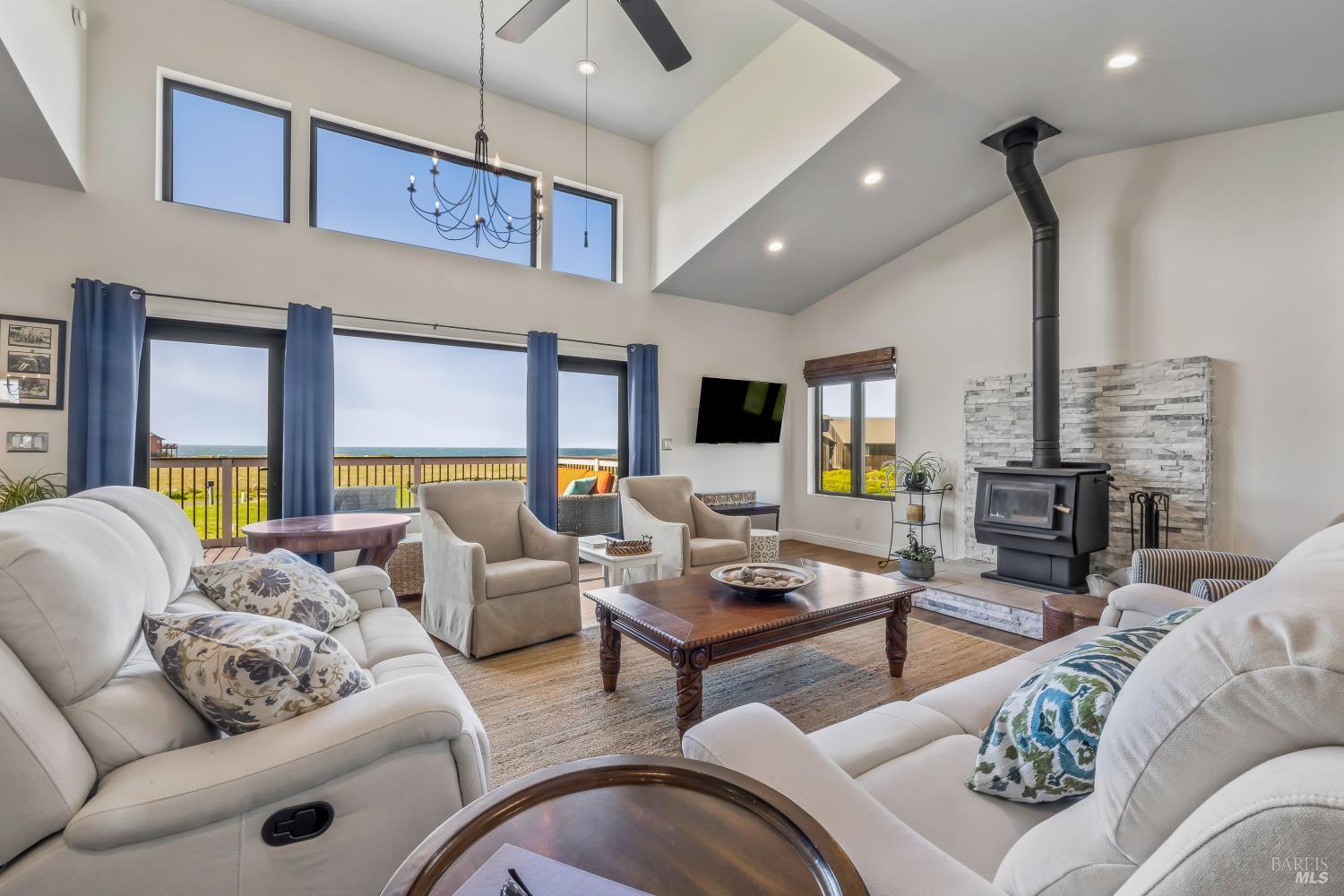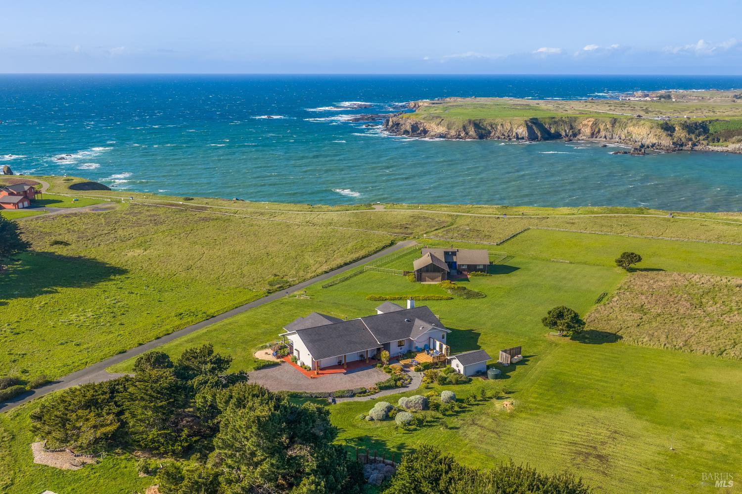 Built in 2017 and kept in pristine condition, this Todd Point masterpiece is all about the view, comfort and convenience. Whether you are looking for an elegant primary residence with guest quarters or a premier coastal investment this custom built gem delivers the very best of the Mendocino coastal lifestyle in one of Northern California's most desirable locations. Enjoy the peace of mind that comes with a modern build featuring contemporary energy efficiencies and high-end finishes. The heart of the home is an expansive, light-filled open plan with vaulted ceiling that seamlessly integrates the living, dining, and kitchen areas. Clerestory windows and skylights ensure the living spaces are bathed in natural light. An expansive ocean-side deck designed for front-row seats to the gray whale migration, spectacular sunsets, and the scenic parade of the local fishing fleet returning home to Noyo Harbor. A large walk-in pantry and a dedicated separate laundry room offer superior organization and convenience. The soaking tub in the primary suite bathroom is pure luxury and has a perfect place to set candles and a glass of wine for the ultimate in rest and relaxation. A generously sized 1-bedroom, 1-bathroom attached apartment with white water ocean view and a south facing porch, provides a sense of scale and privacy rarely found in JrADU living. With private access and separately metered electricity, it is ideal for guests, multi-generational living, a home office or rental income. On the east side of the main home enjoy a protected outdoor oasis: A south-facing raised patio provides a sunny, wind-sheltered retreat for entertaining, BBQing, or a peaceful spot for a good book and morning coffee overlooking beautiful, low-maintenance landscaping with a sunny, level area, that would be perfect for a coastal vegetable and/or flower garden. The attached 2-car garage with 2-personnel doors for access to the garage from the house or apartment is amply sized with room for storage and/or workbenches. A large attic space offers options for additional living space and perhaps a south facing upper deck. This home is located in a 'walker's/bicycler's paradise' for nature lovers and just steps from the scenic, paved bluff-top trail, with easy access to Pomo Bluffs Park, the headlands, and Hare Creek Beach. Minutes from the fresh seafood and charm of Noyo Harbor, and the historic downtown galleries and shops of Fort Bragg. Generac Generator and quality water system in place.