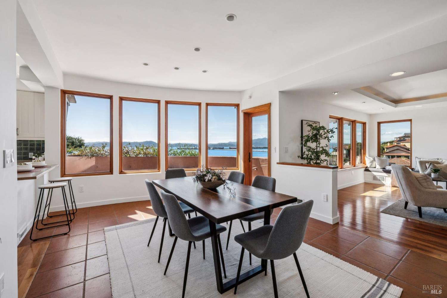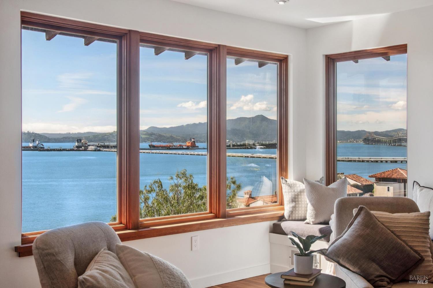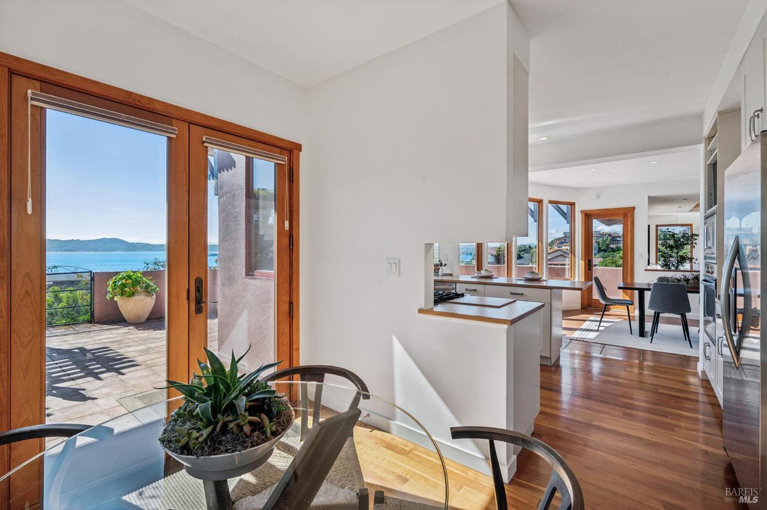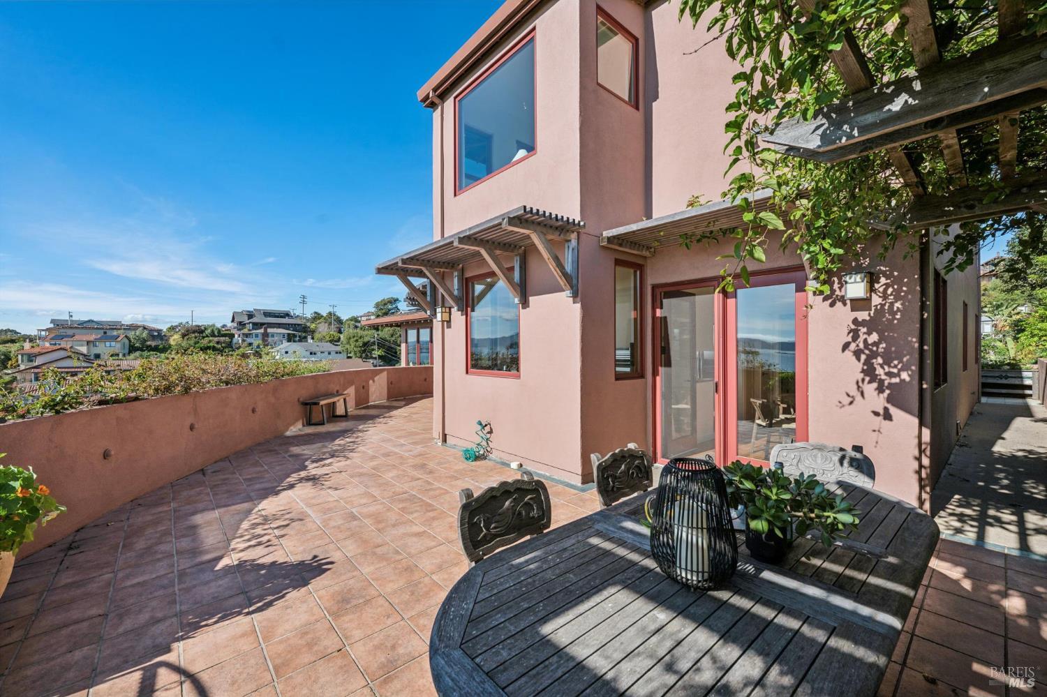 Situated in coveted Point Richmond, 435 Tremont offers a harmonious blend of modern design, coastal living and natural beauty. Perched for "out of this world" San Francisco Bay views, this four bedroom + office and 4.5-bath retreat offers over 3,100 square feet of versatile space. From the moment you step inside, the home's breathtaking views steal the show. Expansive windows frame the San Francisco Bay, Mt. Tamalpais, and the Richmond, Golden Gate, and Bay bridges, while sunsets bathe the home in golden hues. The living room, with its cozy stone fireplace, built-in cabinetry, and inviting window seat, is the perfect spot to relax and soak in the scenery. The kitchen opens to a wonderful dining area and offers abundant cabinetry, subtle blue green tile backsplash, a gas Viking oven + an electric oven and a delightful picture window that provides a front-row view to the bay as you chop, simmer, and create. A breakfast/sun room abuts the kitchen. The penthouse level primary suite offers 2 bedrooms + 2 baths! Each bedroom offers access to the private terrace ideal for sunrise coffee or stargazing. Best of all, there is a bathroom for each of you. Choose between the stylish bathroom with eye catching cherry wood cabinetry,a large tub and a convenient laundry center or the wonderfully spacious 2nd bathroom with lovely green tile and a shower. An elevator ensures effortless access to all levels, including the lower-level ADU and garage. The ADU suite features a upscale kitchen, sleek remodeled bath, dedicated laundry, and its own terrace. Outside, the magic continues. Off the main living level, two expansive terraces invite al fresco dining under the trellis or lounging while taking in the views and salty breeze. Meander through the garden and pick your own fresh fruits and vegetables.The 600-square-foot garage and 400-square-foot carport provide ample space for creative pursuits, from a workshop to an artist's studio. Just a block away, a short path leads to a secluded cove where you can launch your paddleboard or kayak, or simply relax on the shore.Located minutes from downtown Point Richmond's unique boutiques and cafes and close to the Richmond Yacht Club,the historic "Richmond Plunge" pool and the Richmond-SF ferry,435 Tremont is a rare bayside sanctuary that celebrates light, views, and a deep connection to the community and its stunning surroundings. Don't miss your chance to experience this one-of-a-kind home in a hidden gem of a neighborhood by the Bay.