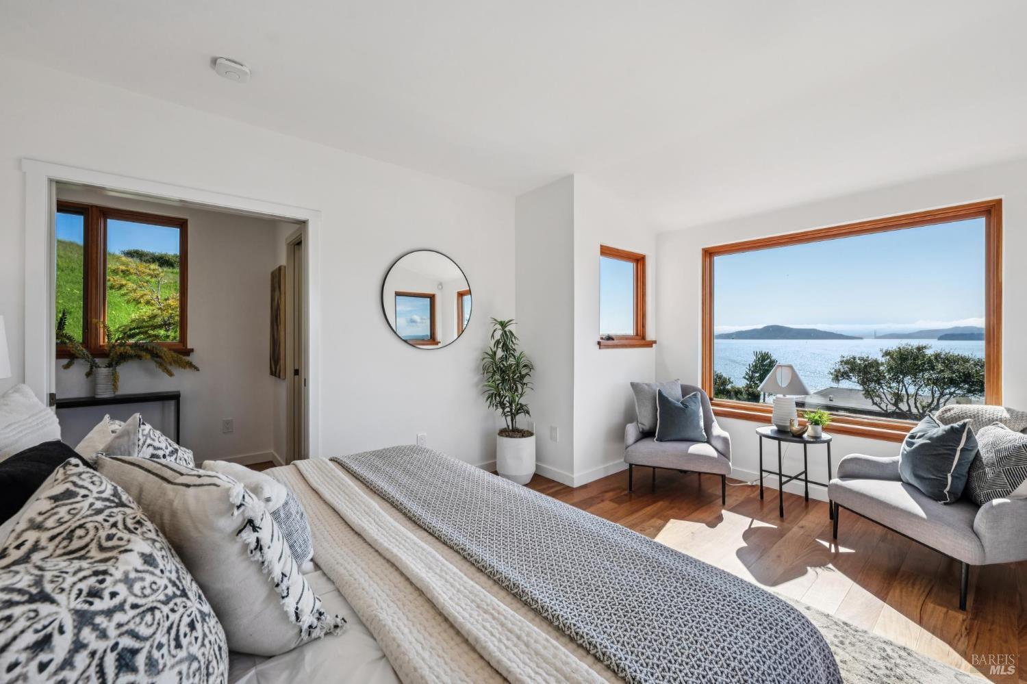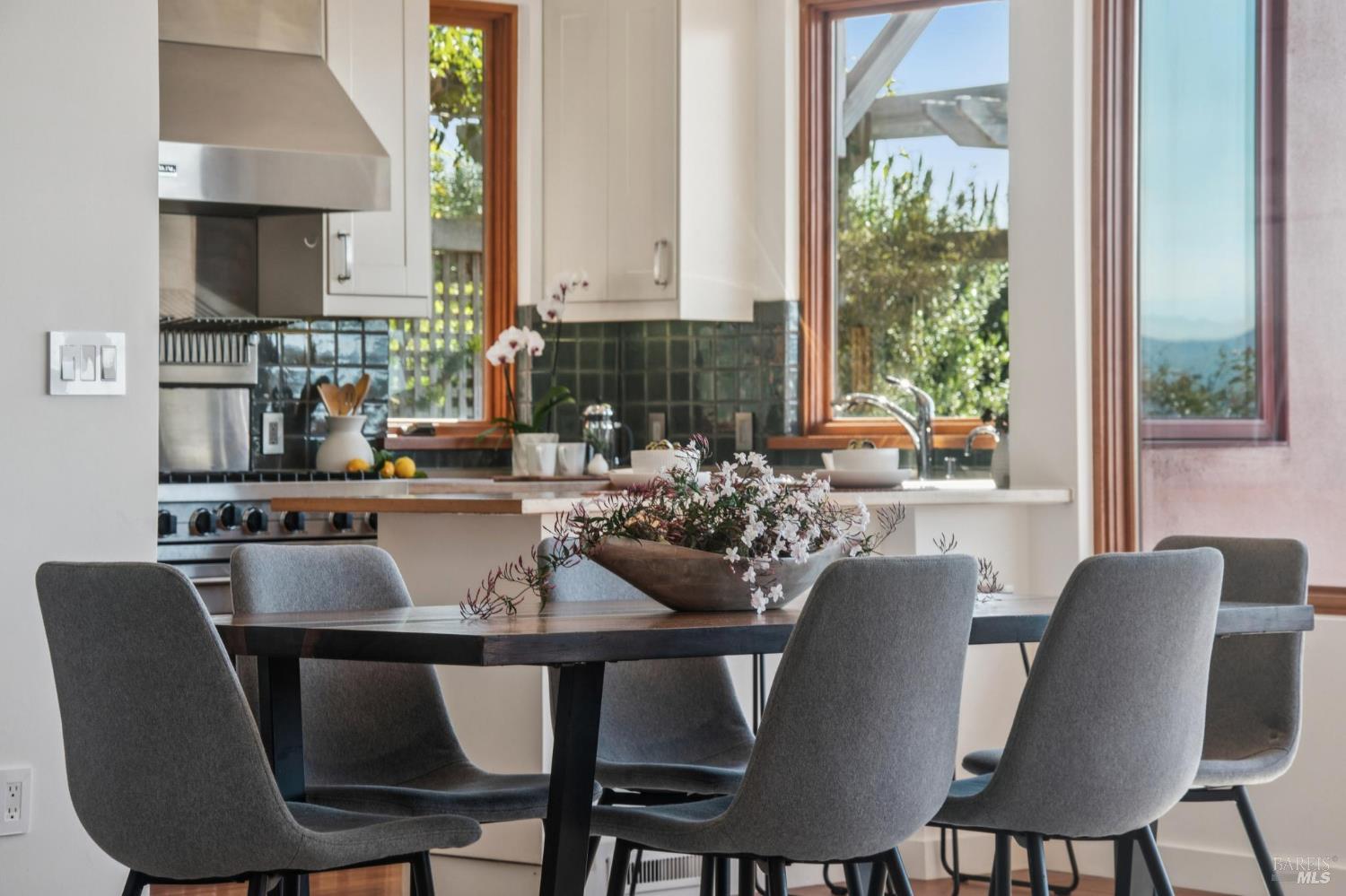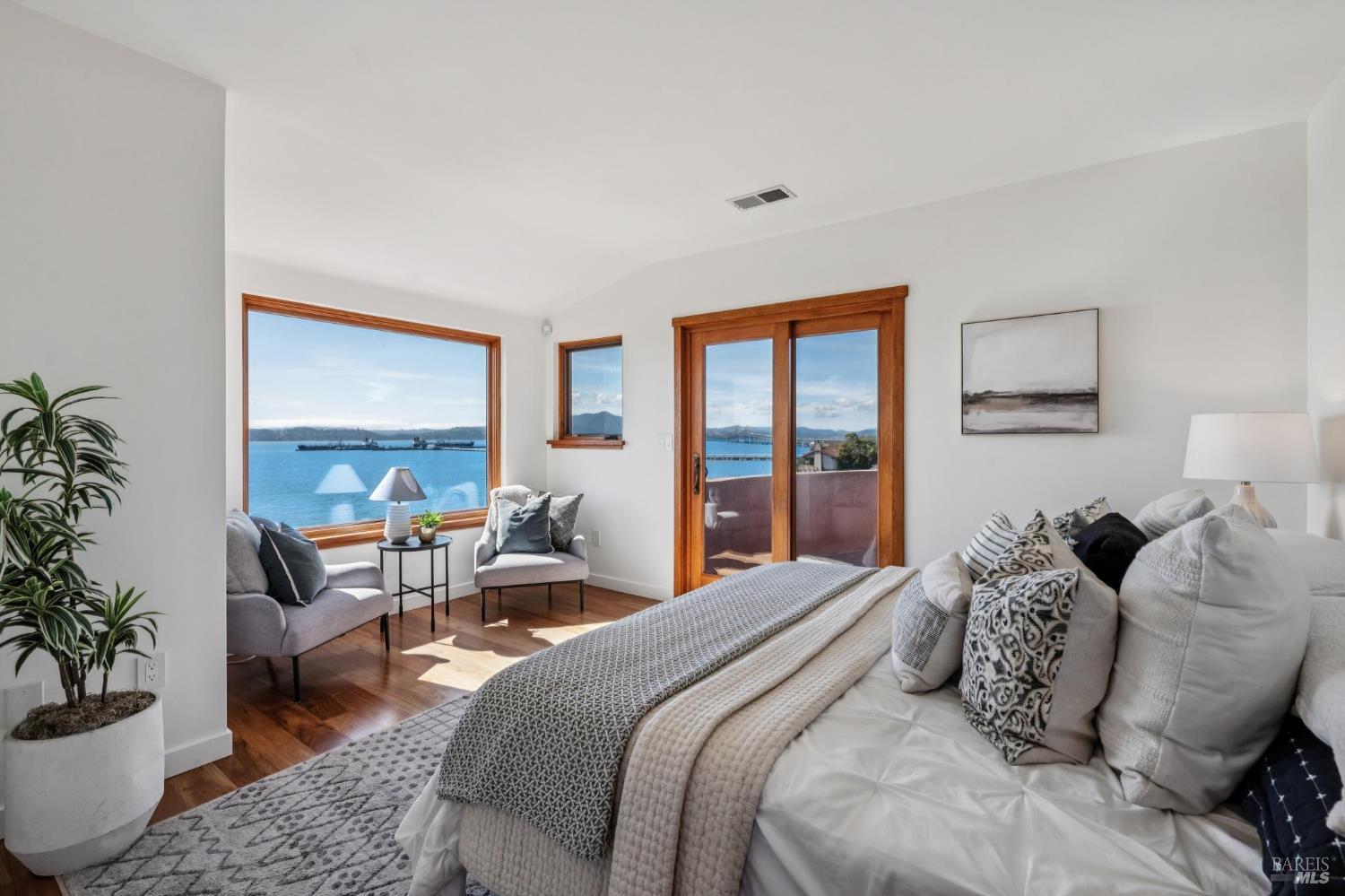 Situated in coveted Point Richmond, 435 Tremont offers a harmonious blend of modern design, coastal living and natural beauty. Perched for "out of this world" San Francisco Bay views, this four bedroom + office and 4.5-bath retreat offers over 3,100 square feet of versatile space. From the moment you step inside, the home's breathtaking views steal the show. Expansive windows frame the San Francisco Bay, Mt. Tamalpais, and the Richmond, Golden Gate, and Bay bridges, while sunsets bathe the home in golden hues. The living room, with its cozy stone fireplace, built-in cabinetry, and inviting window seat, is the perfect spot to relax and soak in the scenery. The kitchen opens to a wonderful dining area and offers abundant cabinetry, subtle blue green tile backsplash, a gas Viking oven + an electric oven and a delightful picture window that provides a front-row view to the bay as you chop, simmer, and create. A breakfast/sun room abuts the kitchen. The penthouse level primary suite offers 2 bedrooms + 2 baths! Each bedroom offers access to the private terrace ideal for sunrise coffee or stargazing. Best of all, there is a bathroom for each of you. Choose between the stylish bathroom with eye catching cherry wood cabinetry,a large tub and a convenient laundry center or the wonderfully spacious 2nd bathroom with lovely green tile and a shower. An elevator ensures effortless access to all levels, including the lower-level ADU and garage. The ADU suite features a upscale kitchen, sleek remodeled bath, dedicated laundry, and its own terrace. Outside, the magic continues. Off the main living level, two expansive terraces invite al fresco dining under the trellis or lounging while taking in the views and salty breeze. Meander through the garden and pick your own fresh fruits and vegetables.The 600-square-foot garage and 400-square-foot carport provide ample space for creative pursuits, from a workshop to an artist's studio. Just a block away, a short path leads to a secluded cove where you can launch your paddleboard or kayak, or simply relax on the shore.Located minutes from downtown Point Richmond's unique boutiques and cafes and close to the Richmond Yacht Club,the historic "Richmond Plunge" pool and the Richmond-SF ferry,435 Tremont is a rare bayside sanctuary that celebrates light, views, and a deep connection to the community and its stunning surroundings. Don't miss your chance to experience this one-of-a-kind home in a hidden gem of a neighborhood by the Bay.