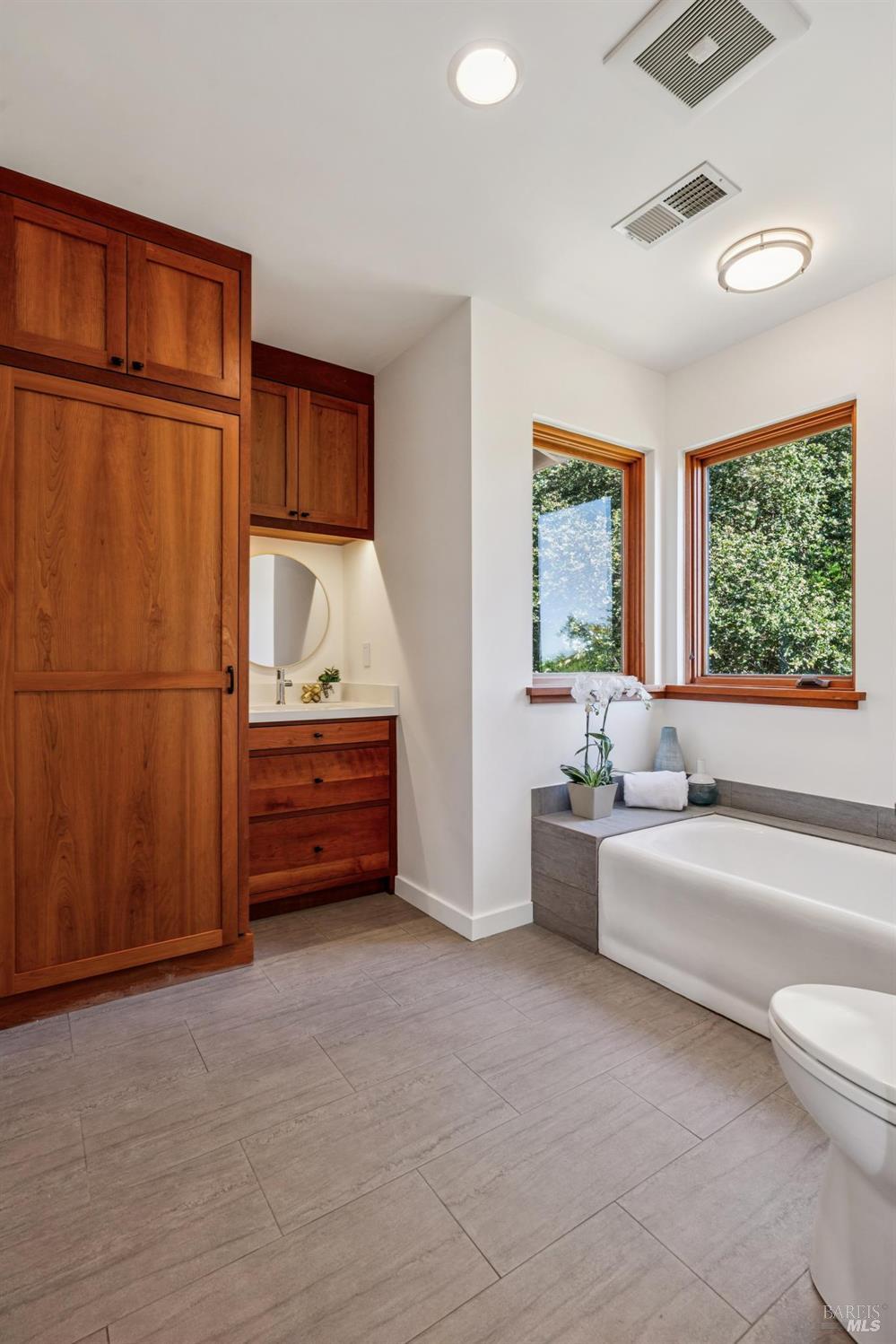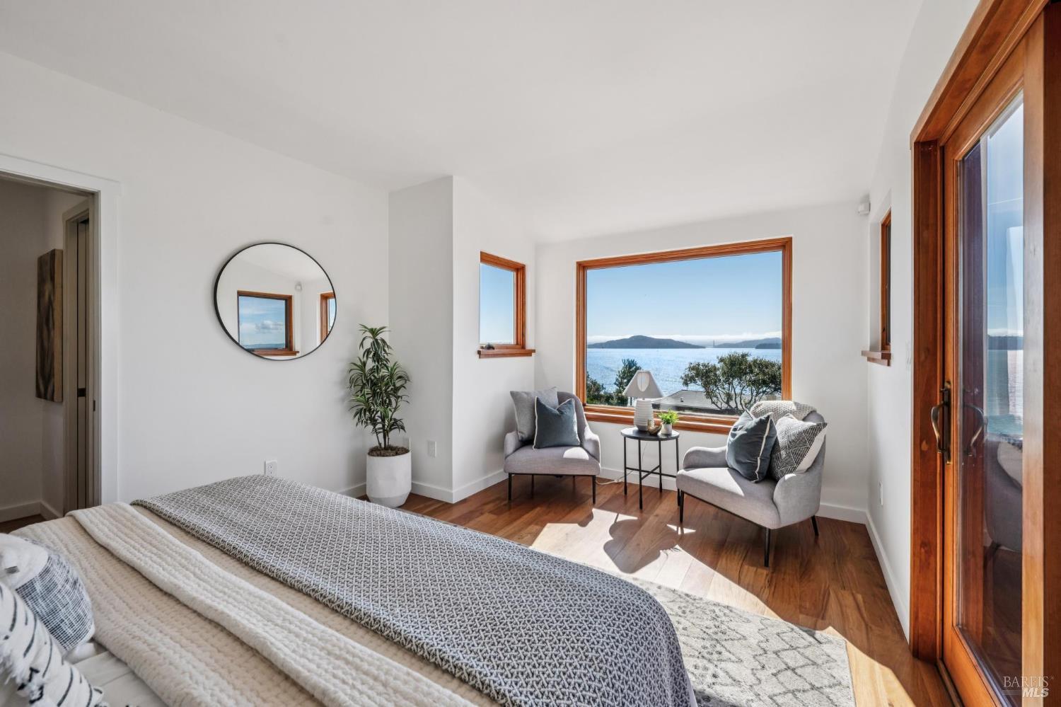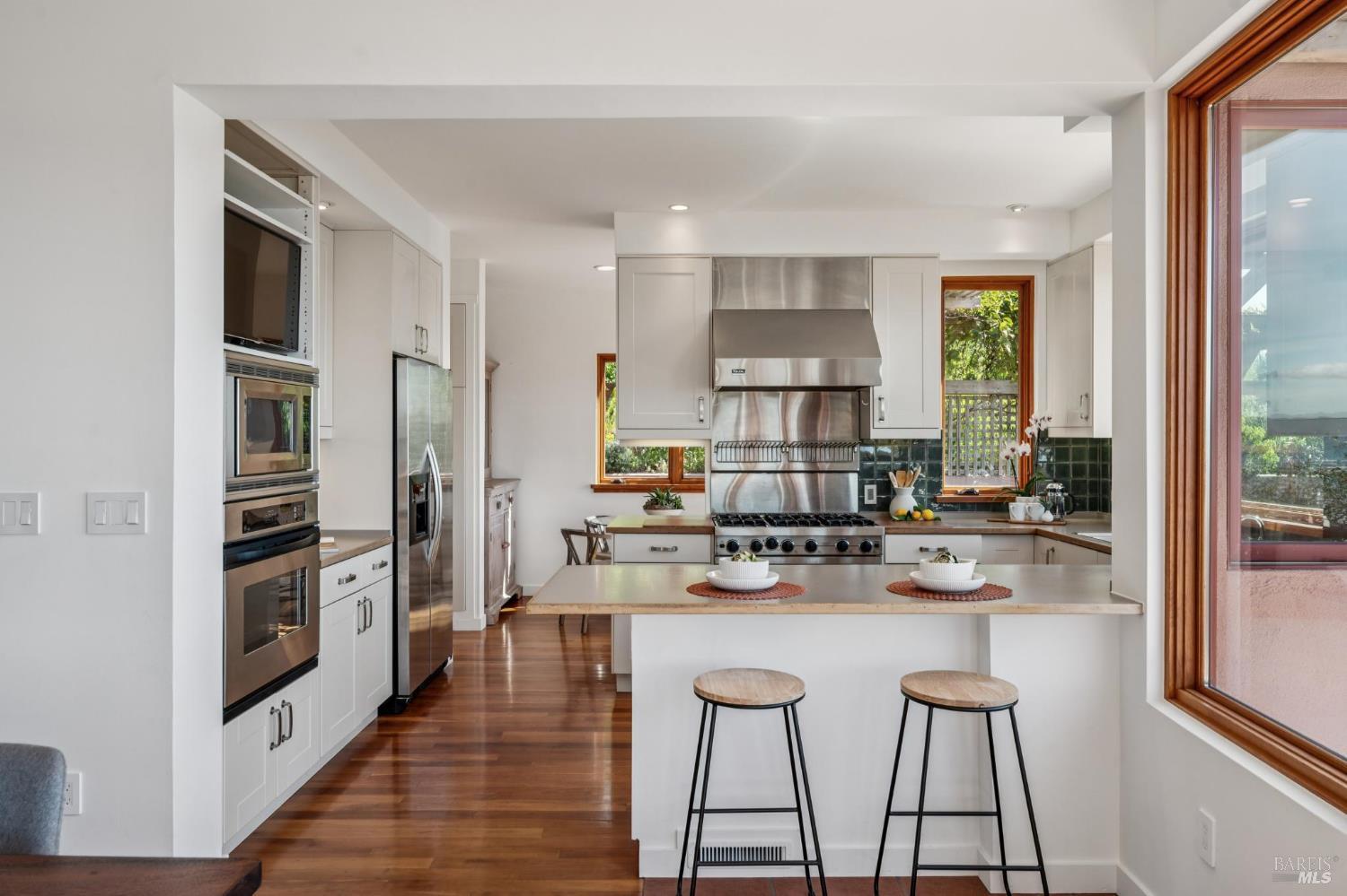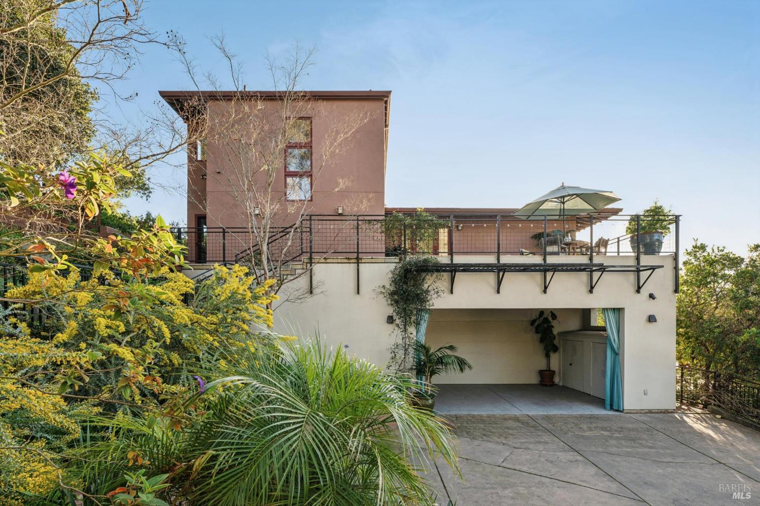 Situated in coveted Point Richmond, 435 Tremont offers a harmonious blend of modern design, coastal living and natural beauty. Perched for "out of this world" San Francisco Bay views, this four bedroom + office and 4.5-bath retreat offers over 3,100 square feet of versatile space. From the moment you step inside, the home's breathtaking views steal the show. Expansive windows frame the San Francisco Bay, Mt. Tamalpais, and the Richmond, Golden Gate, and Bay bridges, while sunsets bathe the home in golden hues. The living room, with its cozy stone fireplace, built-in cabinetry, and inviting window seat, is the perfect spot to relax and soak in the scenery. The kitchen opens to a wonderful dining area and offers abundant cabinetry, subtle blue green tile backsplash, a gas Viking oven + an electric oven and a delightful picture window that provides a front-row view to the bay as you chop, simmer, and create. A breakfast/sun room abuts the kitchen. The penthouse level primary suite offers 2 bedrooms + 2 baths! Each bedroom offers access to the private terrace ideal for sunrise coffee or stargazing. Best of all, there is a bathroom for each of you. Choose between the stylish bathroom with eye catching cherry wood cabinetry,a large tub and a convenient laundry center or the wonderfully spacious 2nd bathroom with lovely green tile and a shower. An elevator ensures effortless access to all levels, including the lower-level ADU and garage. The ADU suite features a upscale kitchen, sleek remodeled bath, dedicated laundry, and its own terrace. Outside, the magic continues. Off the main living level, two expansive terraces invite al fresco dining under the trellis or lounging while taking in the views and salty breeze. Meander through the garden and pick your own fresh fruits and vegetables.The 600-square-foot garage and 400-square-foot carport provide ample space for creative pursuits, from a workshop to an artist's studio. Just a block away, a short path leads to a secluded cove where you can launch your paddleboard or kayak, or simply relax on the shore.Located minutes from downtown Point Richmond's unique boutiques and cafes and close to the Richmond Yacht Club,the historic "Richmond Plunge" pool and the Richmond-SF ferry,435 Tremont is a rare bayside sanctuary that celebrates light, views, and a deep connection to the community and its stunning surroundings. Don't miss your chance to experience this one-of-a-kind home in a hidden gem of a neighborhood by the Bay.