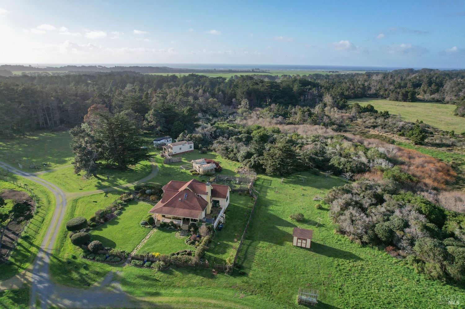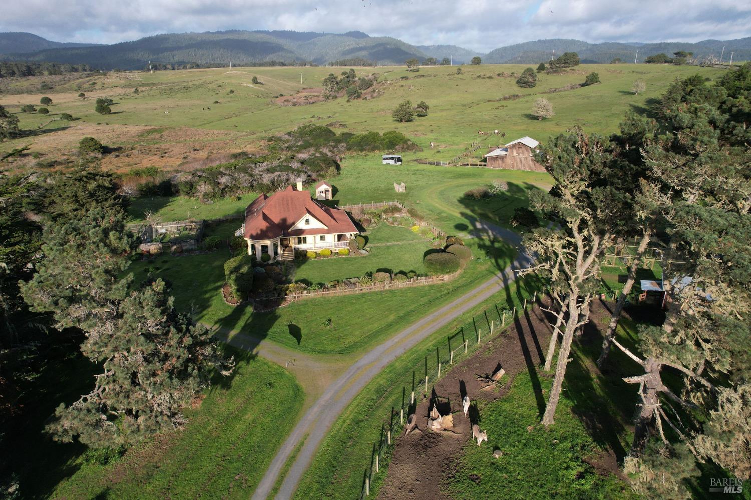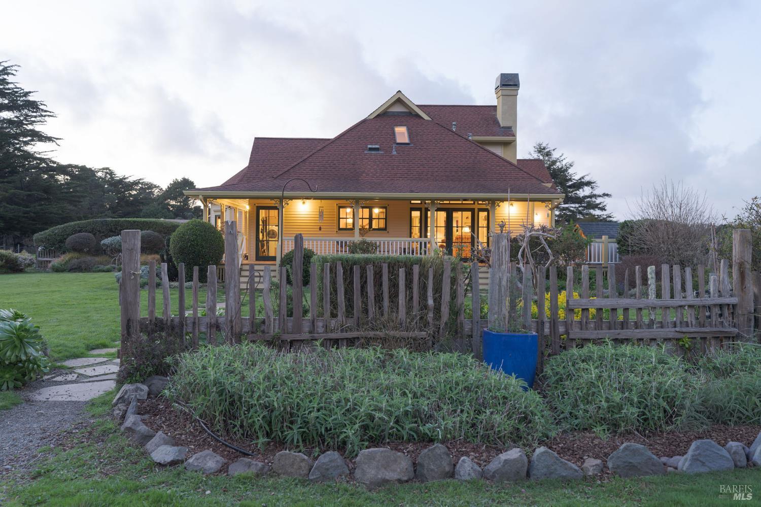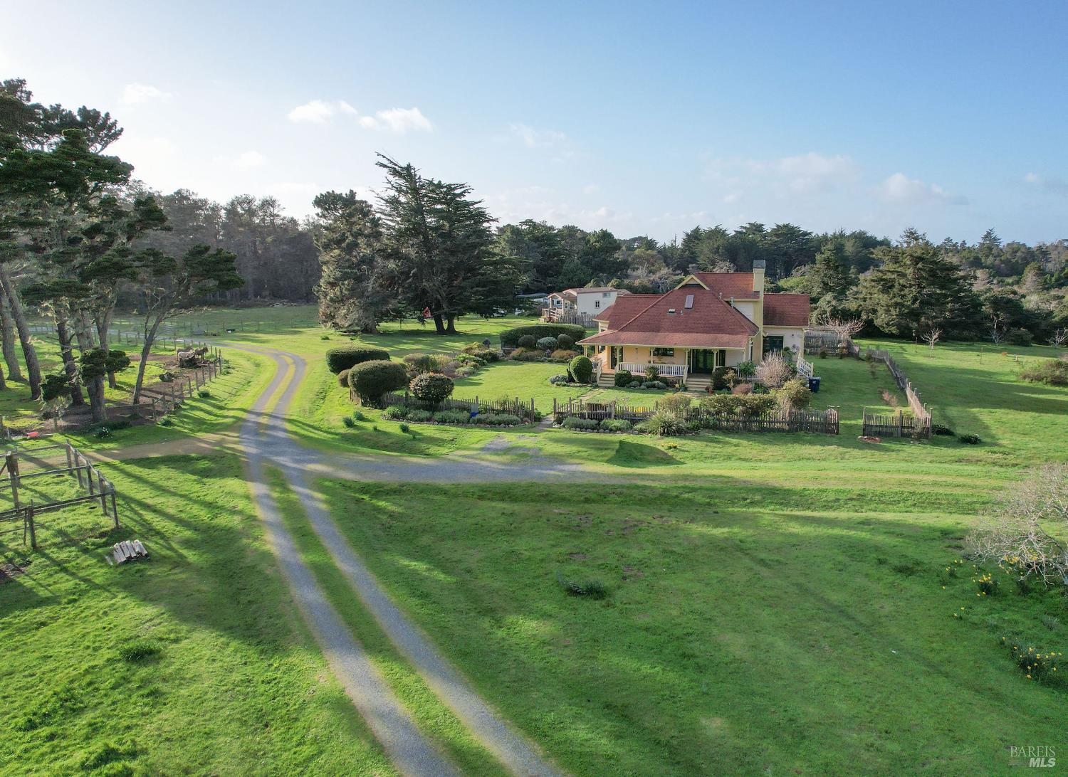 Incomparable coastal neo-traditional Victorian farm house on 160 acres which rise gently east to the coastal hills. This magnificent home and barn were lovingly crafted out of a former sheep ranch and is now a sanctuary for wildlife, farm animals, boarded horses and humans with open meadows, Redwood groves and maintained hiking and riding trails throughout including views of Point Arena Lighthouse. Designed to bring the beauty of surrounding nature into the home, its many windows bring brightness and light to its interior. Farmhouse elements define the comfort of the layout, from chair rail and crown moldings to the kitchen designed around a beautifully restored 1950 O'Keefe and Merritt 6 burner/double oven propane stove. Impressive gardens surround the home along with mature fruit trees, berries and vegetables. Three heated greenhouses currently home to a collection of cattleya orchids can be adapted to grow many other plants. Visitors describe 'Terreno Verde' (Green land) as magical and a dream. Chosen as a setting for the 2021 Oscar winning film starring Frances McDormand and David Strathairn, Nomadland. This home has many stories to tell and many memories yet to make.