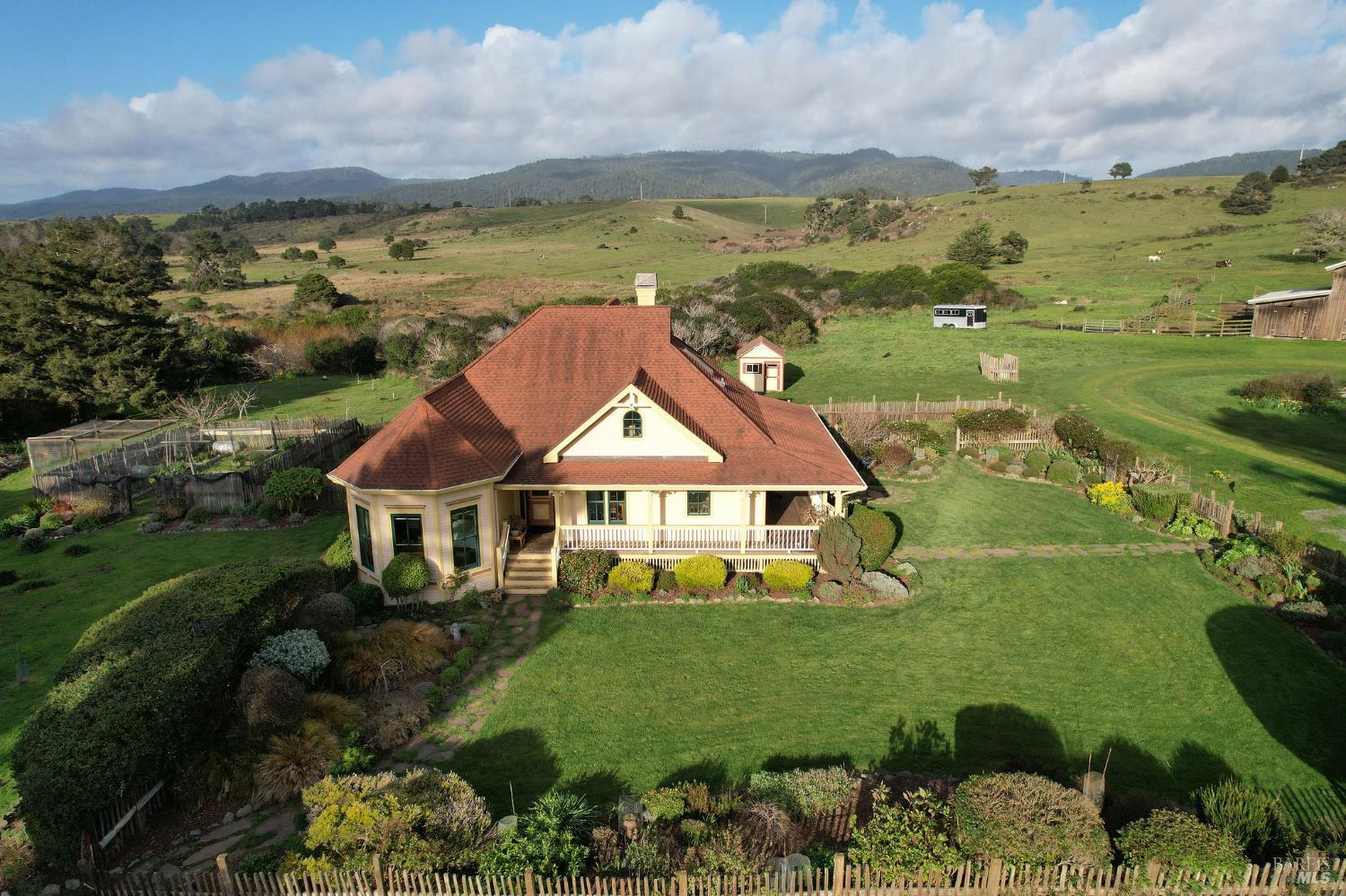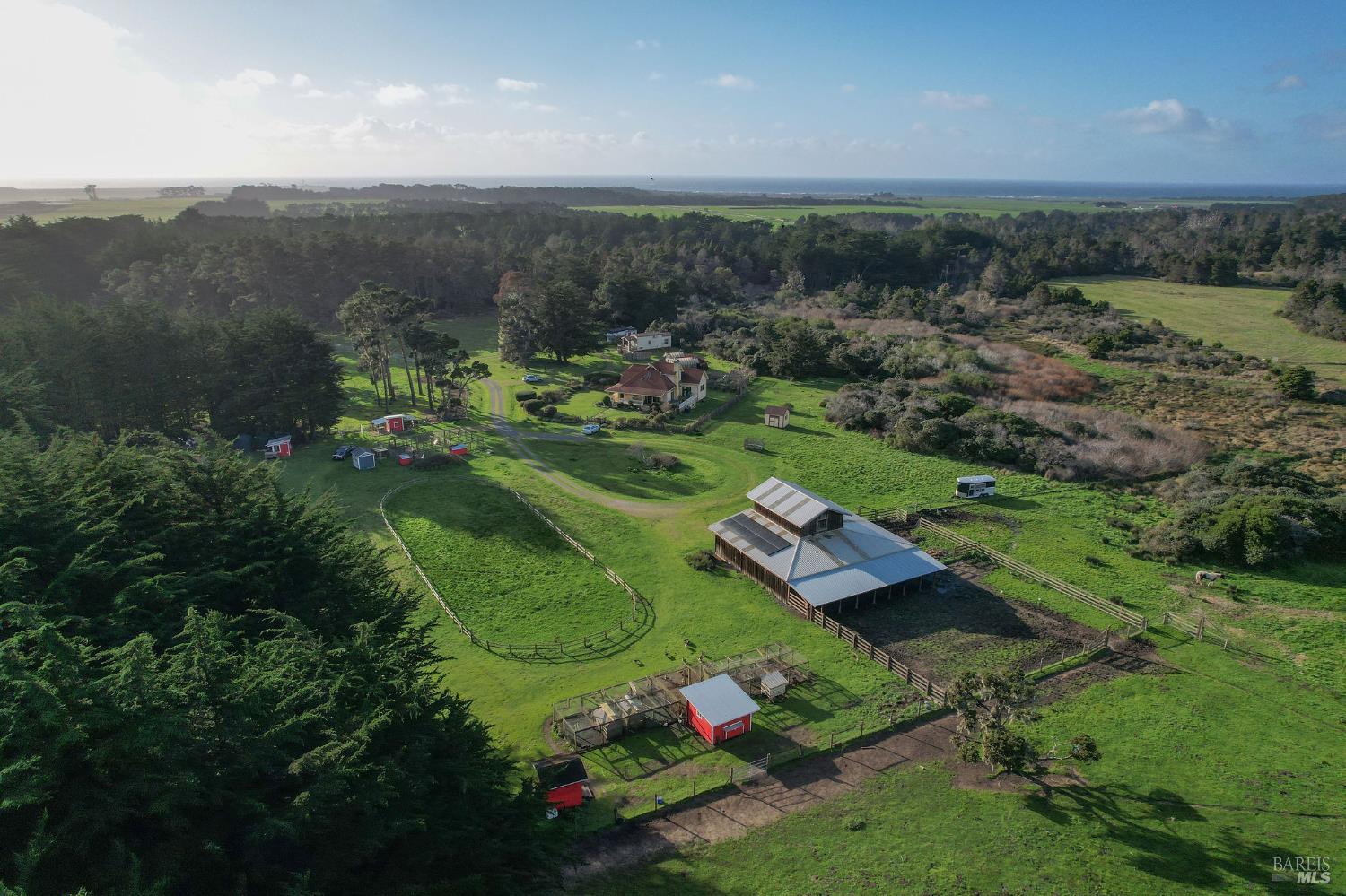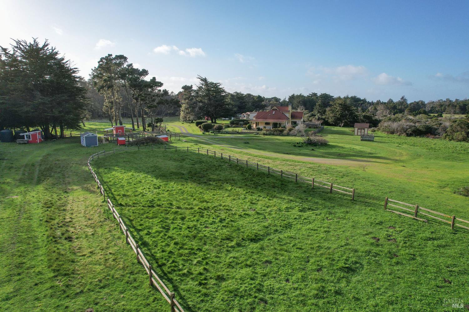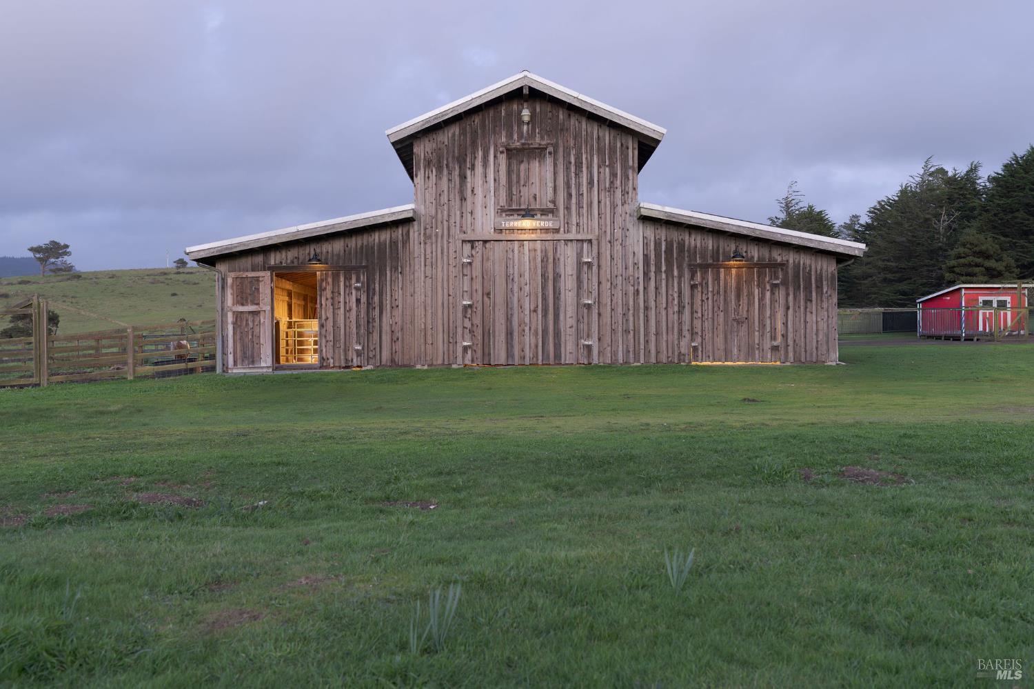 Incomparable coastal neo-traditional Victorian farm house on 160 acres which rise gently east to the coastal hills. This magnificent home and barn were lovingly crafted out of a former sheep ranch and is now a sanctuary for wildlife, farm animals, boarded horses and humans with open meadows, Redwood groves and maintained hiking and riding trails throughout including views of Point Arena Lighthouse. Designed to bring the beauty of surrounding nature into the home, its many windows bring brightness and light to its interior. Farmhouse elements define the comfort of the layout, from chair rail and crown moldings to the kitchen designed around a beautifully restored 1950 O'Keefe and Merritt 6 burner/double oven propane stove. Impressive gardens surround the home along with mature fruit trees, berries and vegetables. Three heated greenhouses currently home to a collection of cattleya orchids can be adapted to grow many other plants. Visitors describe 'Terreno Verde' (Green land) as magical and a dream. Chosen as a setting for the 2021 Oscar winning film starring Frances McDormand and David Strathairn, Nomadland. This home has many stories to tell and many memories yet to make.