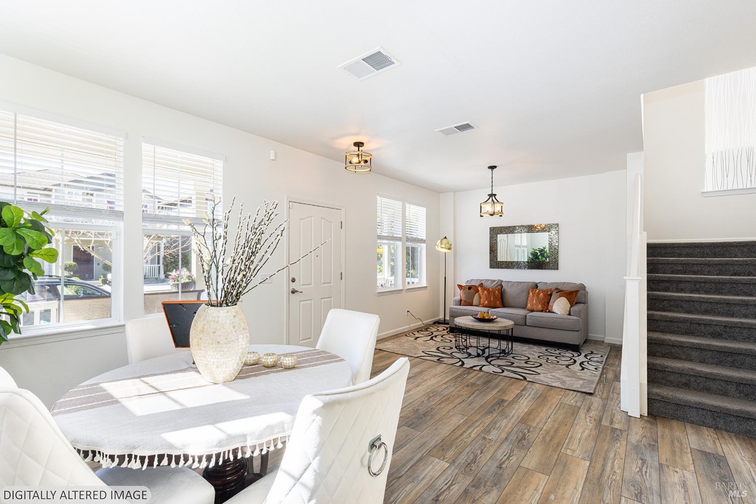 Welcome to Santa Rosa westside living at Sonoma Courtside Village with convenience, community, with many dining and shopping choices! Picture yourself walking to Village Bakery for a morning coffee and pastry right down the street on Doubles Drive. Located off Sebastopol Road between South Wright Road and Stony Point Road, this 2-story home is a 4 bedroom, 2.5 bath, built in 2001 has much to offer. Enjoy the large upstairs living space of primary suite with ensuite bath, 3 additional bedrooms, upstairs laundry room, and full bath. There is an open flow from the moment you walk in the front door. The front room is an inviting space to welcome guests and visit, leading to the open floor plan kitchen/dining/living room combination - ideal for meals and conversation. Refrigerator, washer and dryer purchased in 2023 are included in the purchase. The front yard is low maintenance and the backyard is ready for entertaining with a beautiful flagstone patio and a soothing water feature. The Sonoma Courtside Village is a planned unit development (PUD) of 381 homes with HOA dues of $57/mo. to cover common areas including walkways and green space. Easy access to Hwy 12 and Sebastopol to the west, downtown Santa Rosa to the east, including vibrant Historic Railroad Square, as well as a short drive to favorite Sebastopol Road dining spots Sazon, Mitote Food Park and Costeaux's Tia Maria Bakery! Shopping choices abound within a 1.5-2 mile radius including Oliver's, FoodMaxx, Lola's, and Mekong markets.*See unaltered photos link here: https://drive.google.com/drive/folders/1UOxchcZeEeFejx5rCzVxEsfryZhdrQvk?usp=drive_link