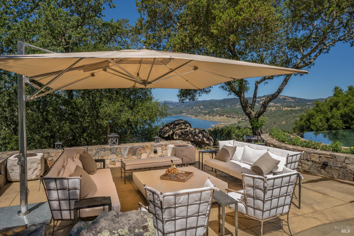 Prepare to be dazzled! Located minutes from the Silverado Trail in St Helena, this 40 +/- plus acre landscaped compound offers lake views over Lake Hennessey and includes an approximately 8500 +/- sq ft main residence and two detached 1000 +/- 1200 +/- sq ft guest houses. The newly remodeled four bedroom four bath two half bath main home features an infinity edge pool overlooking Lake Hennessey, Venetian plaster walls, Chinkapin oak floor to ceiling pocket doors, custom ironwork, walnut hardwood and French limestone floors, along with two offices, a gym, a wine cellar, and chefs kitchen plus a large catering kitchen. Outdoor amenities include multiple pools including a 60 foot lap pool sited near the two guest houses, mature gardens, approximately one acre of Pritchard Hill cab vines, multiple entertaining areas, a full size tennis court, bocce court, fountains, and expansive lake views. An adjacent and a prolific well is available separately for $3.5M, or together for a $500K savings at $21.5M. The adjacent 60+/- acre buildable parcel with 11+/- plantable acres is available separately for $3.5M, or both parcels may be purchased together for $21.5M, reflecting a $500K combined offering savings.