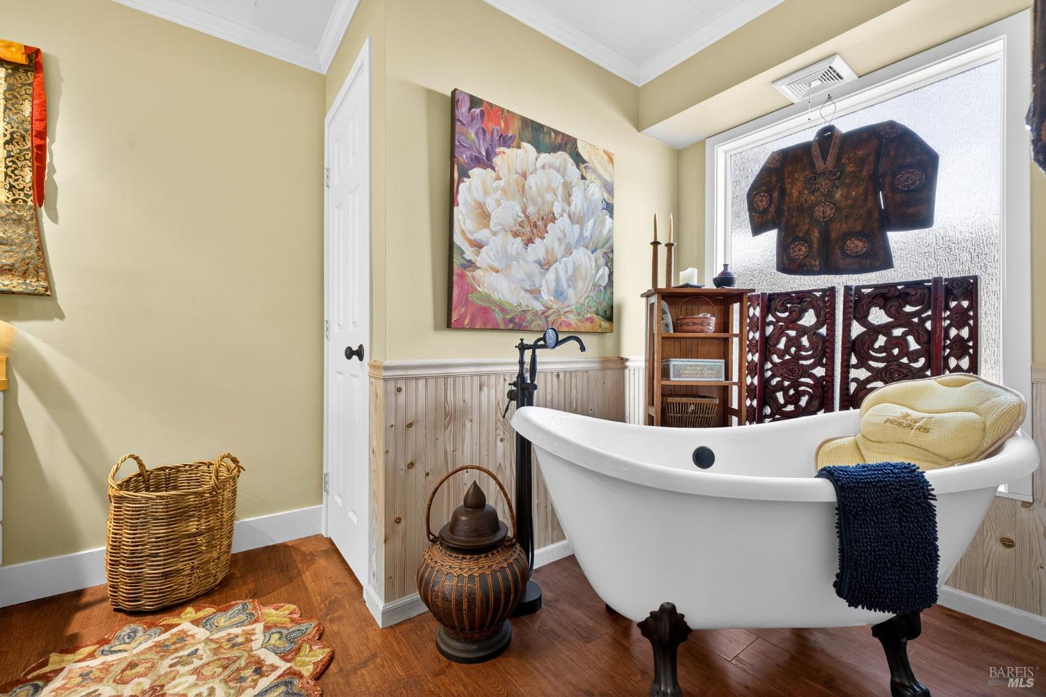 Come home to the artist's way. Lovingly detailed with new upgrades inside out to every surface. Painted with Ben Moore, rich colors. New plumbing & electricity. New heater motor repaired and cleaned venting. New beautiful, waterproof laminate wood flooring. Butcher block counter in kitchen and bathrooms. All new sinks. Birch kitchen cabinetry. New garbage disposal, water heater and appliances. New shower, claw tub with wainscoting framing. New room door hardware and closet doors. Leveling with new up to code wood treated support to existing metal frame, reframing at base with wire mesh for barrier to rodents. 55+ neighbors with welcoming community clubhouse brimming with belonging, activities, fitness center, seasonal salt water pool, all year hot tub.and to top it off NO PROPERTY TAX!!