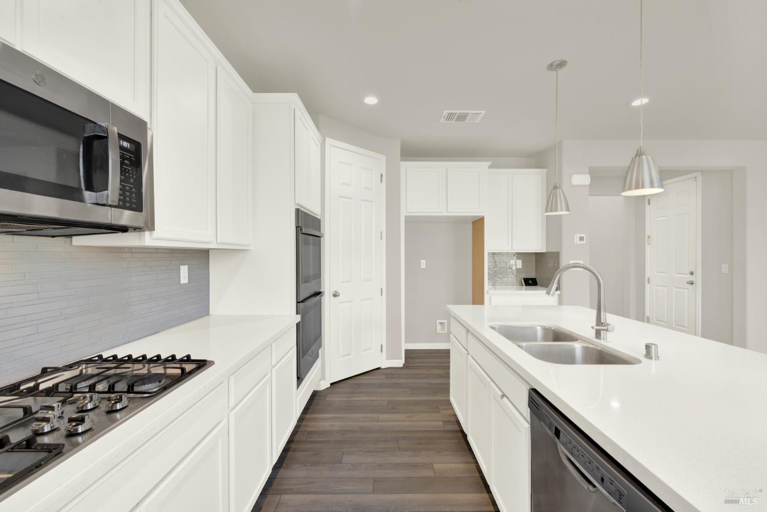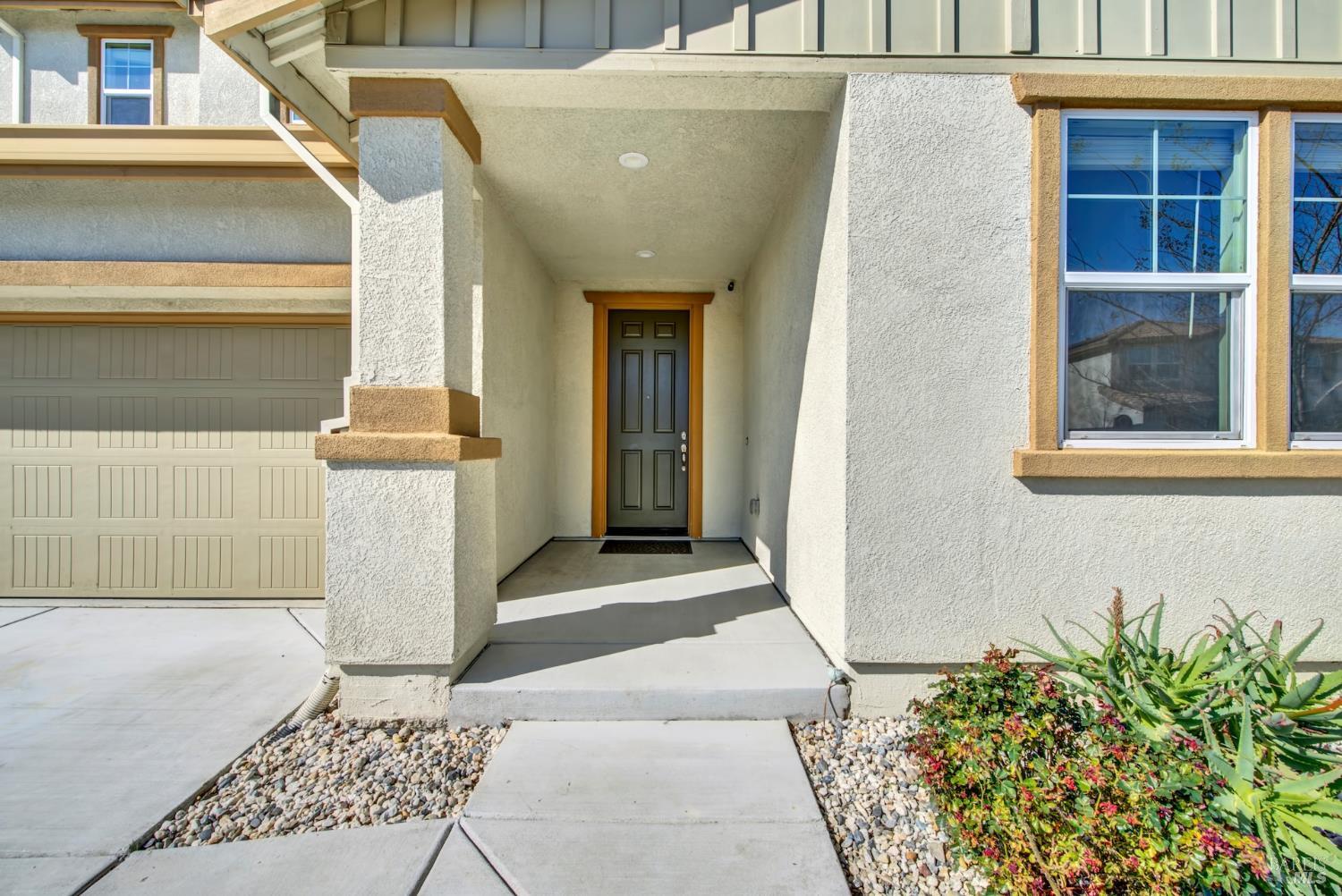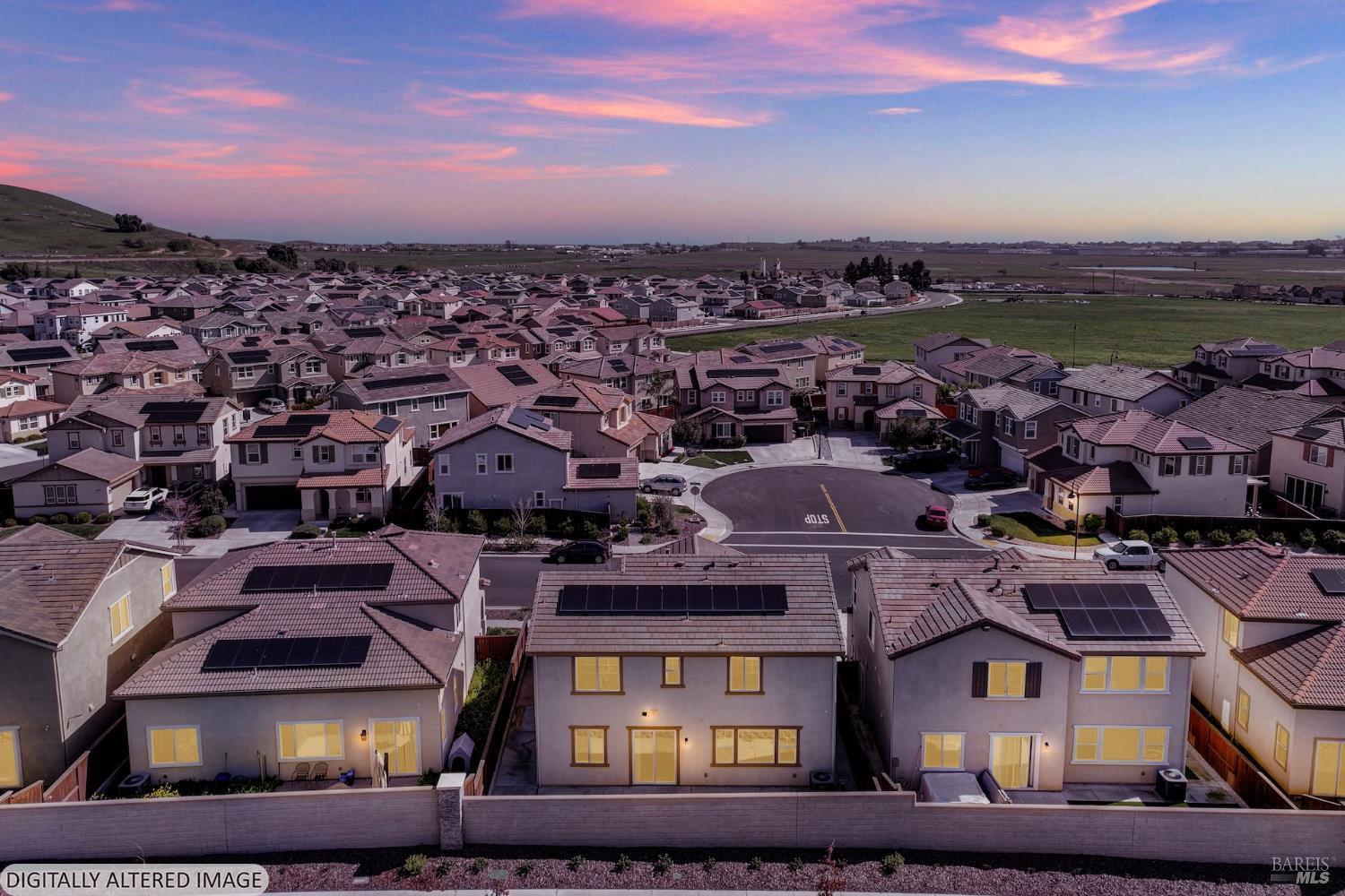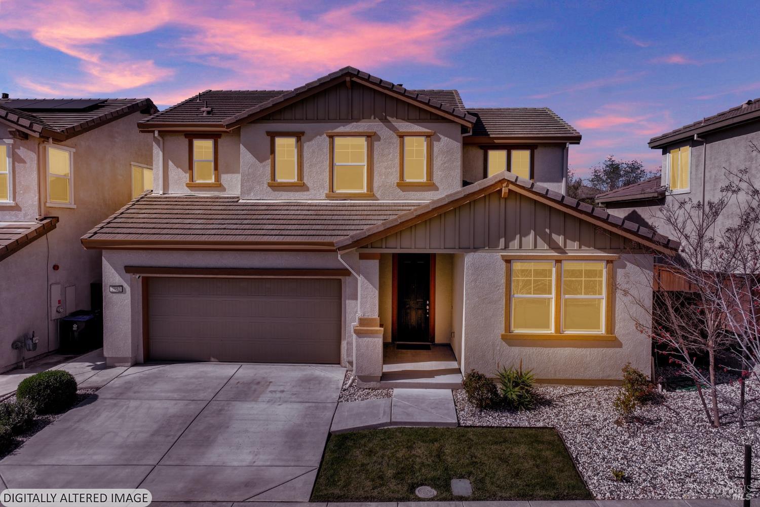 Located on Inspiration Drive, this stunning 4-bedroom, 3-bathroom home in the desirable Villages at Fairfield community will inspire you to be its next homeowner. Built in 2020, this thoughtfully designed residence offers modern finishes throughout, including a chef's kitchen with a large island, quartz countertops, double oven, gas cooktop, and a spacious closet pantry. Solar panels keep energy costs low, while the open-concept great room provides the perfect setting for entertaining. A main-level bedroom and full bath offer flexible space for guests, a home office, or a gym. Step outside to a low-maintenance backyard ideal for year-round enjoyment all just minutes from Travis Air Force Base and premier shopping.