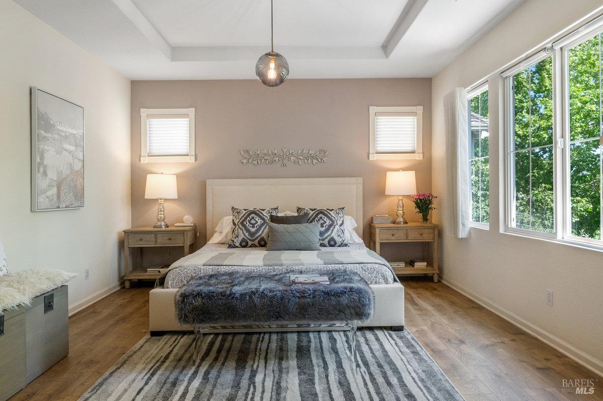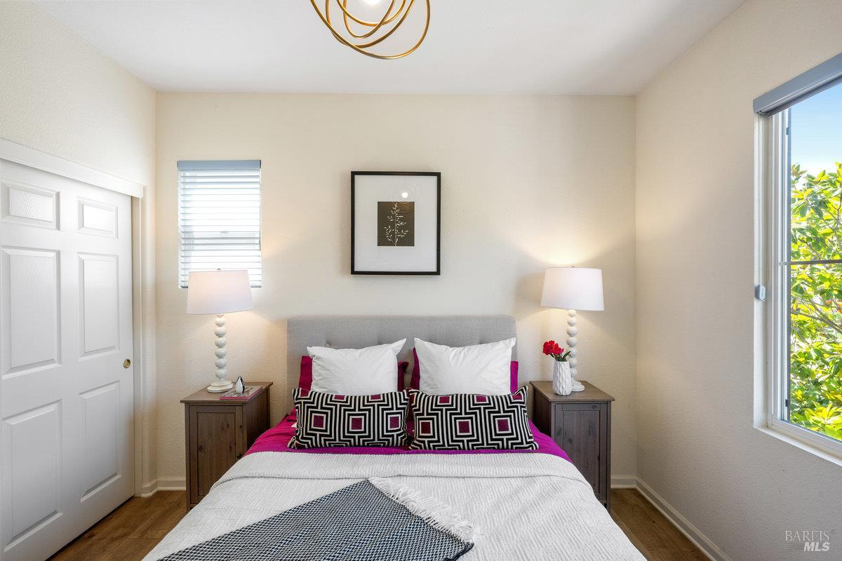 Explore the charm of this wonderful Hamilton home, spanning appx 2,283 square feet, this spacious 4-BR/2.5 BA residence offers a comfortable retreat for discerning buyers. As you step inside, you're greeted by the inviting living/dining room adorned w/soaring ceilings and large windows that flood the space w/natural light. An open-concept layout seamlessly blends the family, dining, and kitchen areas. The kitchen, equipped with modern appliances & ample storage, caters to culinary enthusiasts. Sliders off the kitchen access the lovely backyard with grass and patio pavers allowing for fabulous indoor-outdoor flow to enjoy Marin's fine Mediterranean climate. The upper level is anchored by a serene primary suite, offering 2 walk-in closets and ensuite bath w/tub & stall shower. 3 add'l BR and a full BA which ensure space for everyone or work-from-home needs & conveniently located laundry room. Nestled in the Hamilton Neighborhood, this home provides easy access to schools, parks, shopping & amenities, embodying the quintessential CA living experience. Hiking and walking bay trails just out your door at the end of the quiet cul-de-sac. Easy access to 101 for a 18-mile SF commute or wine country get-aways. Experience the warmth and convenience of this lovely home.