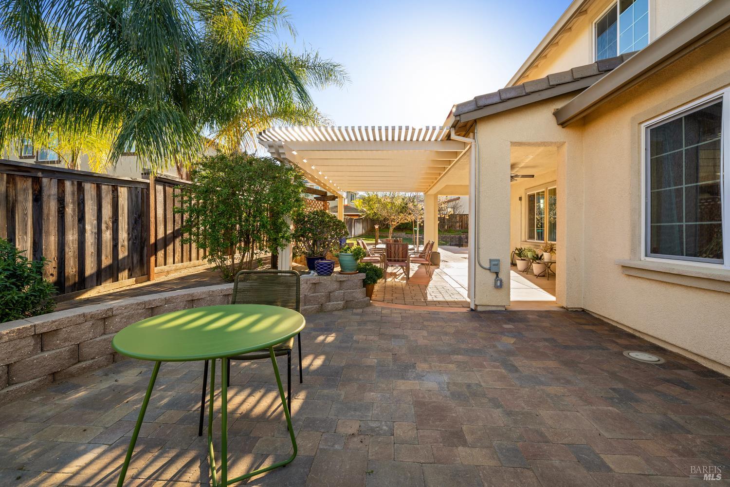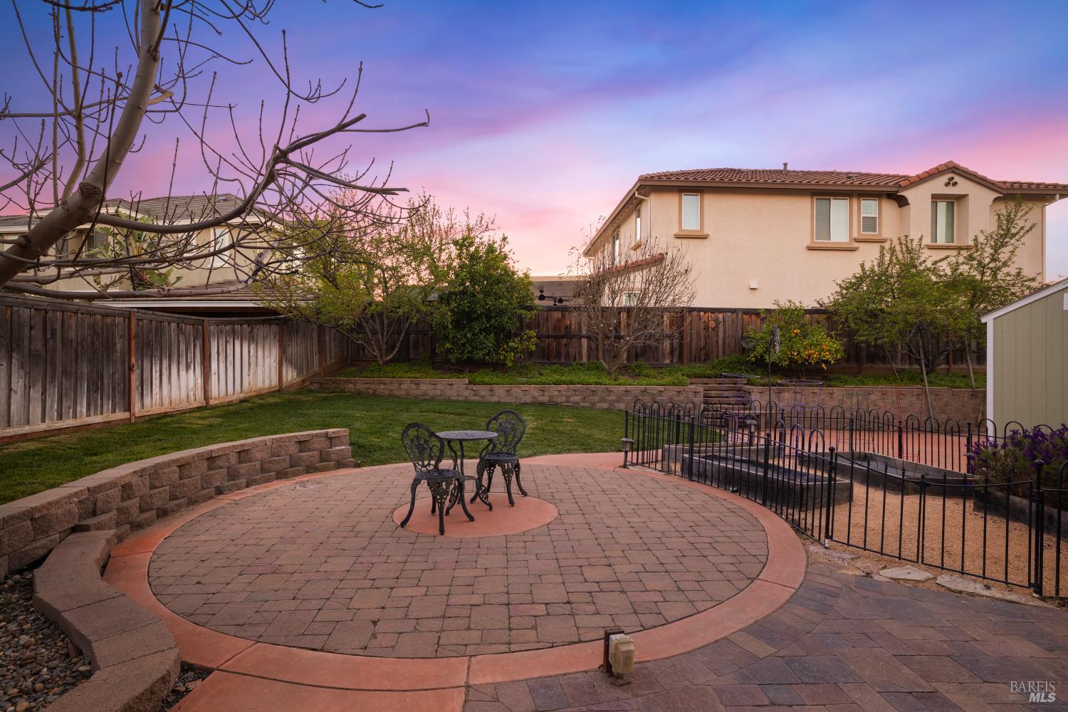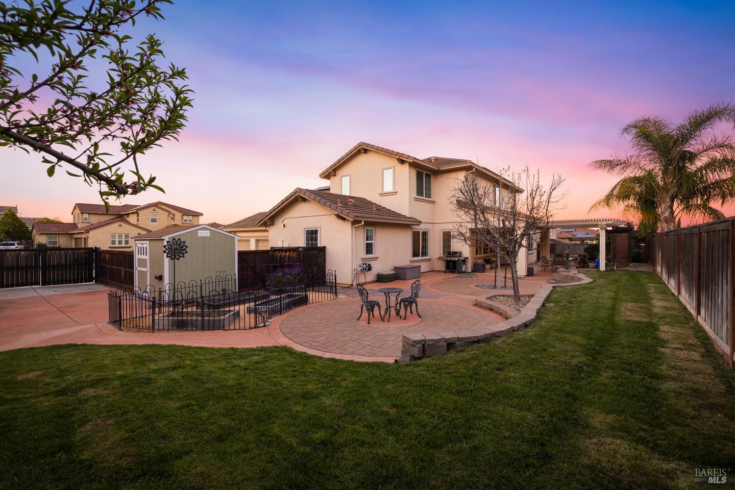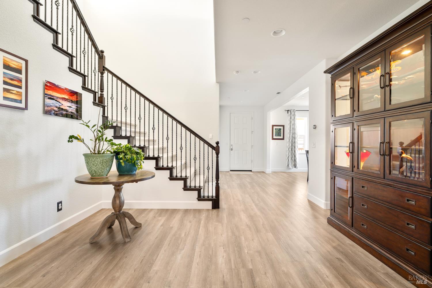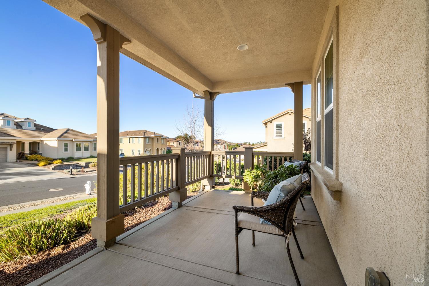 Tucked into Vacaville's highly sought after Cheyenne community in Browns Valley, this exceptional luxury residence with owned solar offers nearly 4,000 sq ft of beautifully designed living space on over a quarter acre premium lot with a 3-car garage and expanded driveway featuring pull through RV parking and backyard gate access. The impressive floorplan includes 6 bedrooms and 4.5 baths with 2 bedrooms on the main level including a private ensuite ideal for guests or multigenerational living plus an additional room (6th bedroom option) with exterior access, ideal for a home office, gym or playroom. The heart of the home is a stunning chef's kitchen with an oversized island with sink and bar seating, granite countertops, gas cooktop with hood, built-in double oven, newly installed dishwasher and built-in microwave as well as a spacious butler's pantry with wine storage and massive walk-in pantry, all opening to a large breakfast area and inviting great room with a gas fireplace. Elegant formal living and dining rooms create beautiful entertaining spaces while upstairs features 4 additional bedrooms including a luxurious primary suite with a spa-style bathroom with soaking tub, glass oversized shower, dual vanities and 2-walk in closets, plus a convenient upstairs laundry room with cabinetry and laundry closet. Interior upgrades include luxury vinyl plank flooring, recessed lighting, chandeliers, dual zone HVAC and a finished garage with epoxy flooring. The private backyard features a massive 13'x22' patio overhang with electrical and ceiling fan that anchors the space, creating the perfect setting for shaded gatherings and relaxed evenings. Additionally, retaining walls, garden, grass and patio areas, 8'x10' Tuff Shed and expansive side yards maximize the lot. Energy efficient features include dual pane windows, an upgraded tankless water heater and water softener. Located just minutes from parks, a top-ranked fitness center with a pool, shopping, dining and freeway access, this extraordinary Browns Valley home offers luxury living, space and flexibility in one of Vacaville's most desirable neighborhoods.
