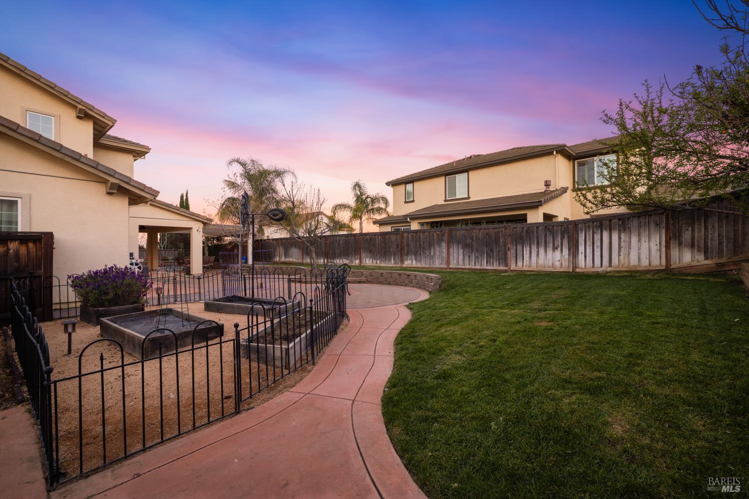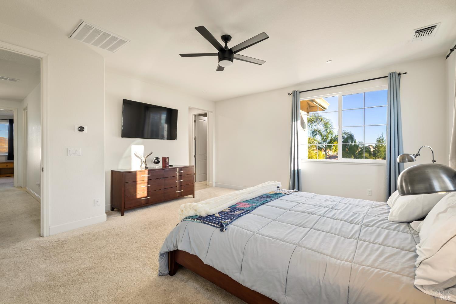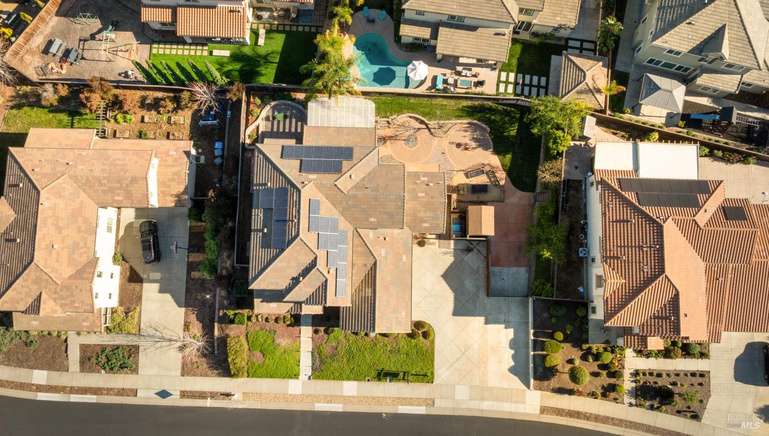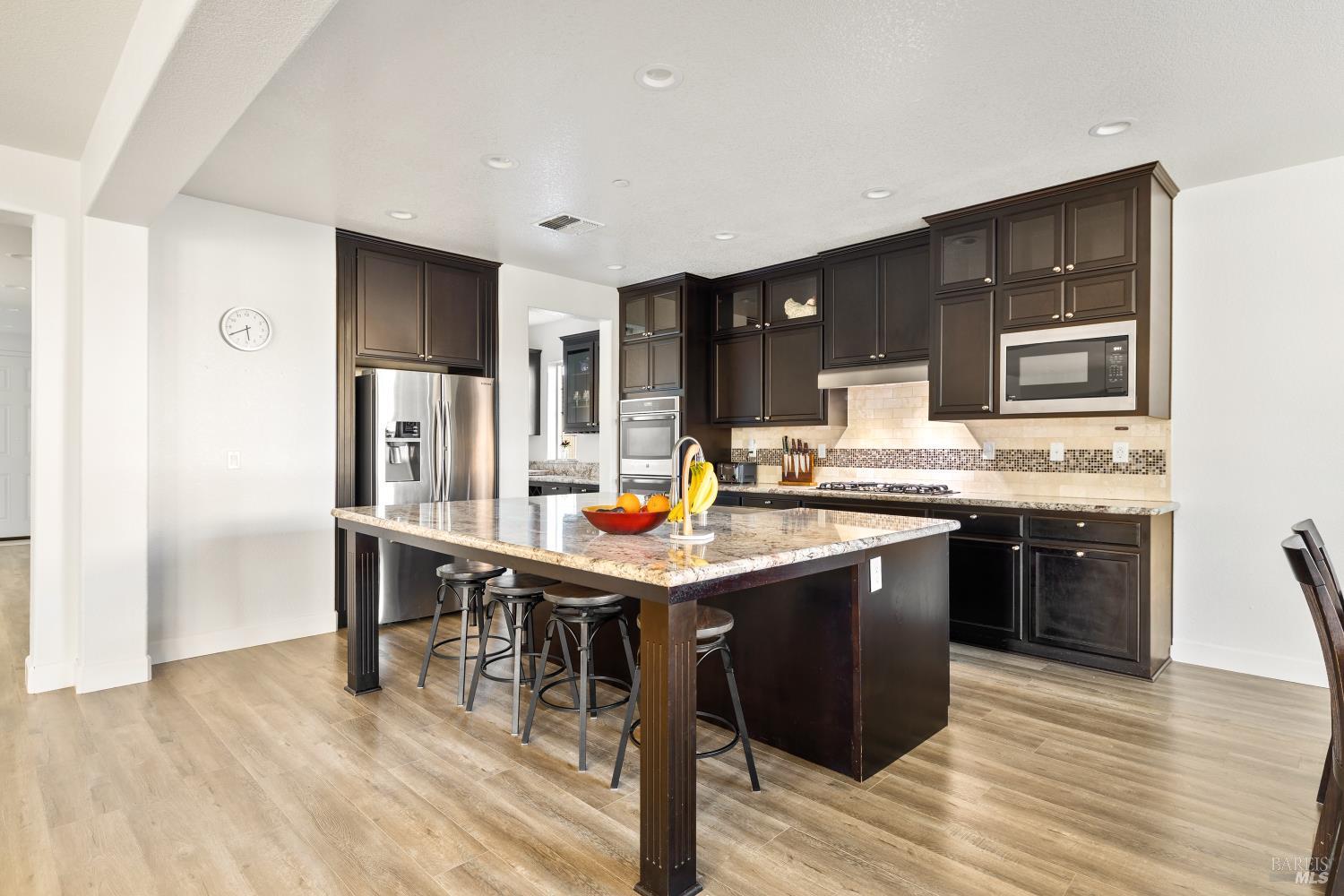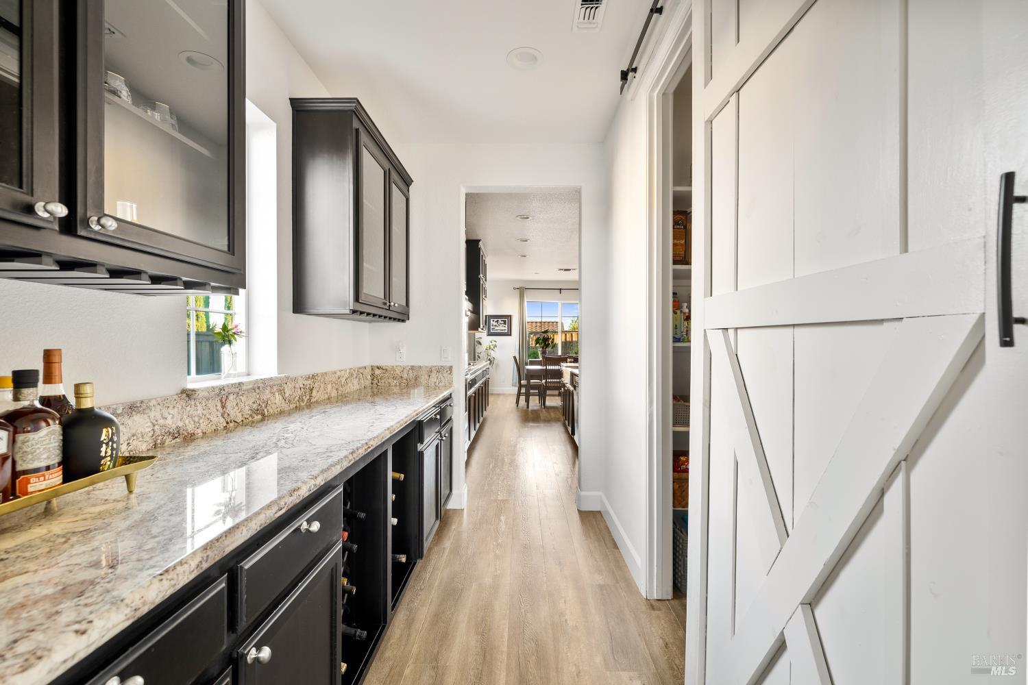 Tucked into Vacaville's highly sought after Cheyenne community in Browns Valley, this exceptional luxury residence with owned solar offers nearly 4,000 sq ft of beautifully designed living space on over a quarter acre premium lot with a 3-car garage and expanded driveway featuring pull through RV parking and backyard gate access. The impressive floorplan includes 6 bedrooms and 4.5 baths with 2 bedrooms on the main level including a private ensuite ideal for guests or multigenerational living plus an additional room (6th bedroom option) with exterior access, ideal for a home office, gym or playroom. The heart of the home is a stunning chef's kitchen with an oversized island with sink and bar seating, granite countertops, gas cooktop with hood, built-in double oven, newly installed dishwasher and built-in microwave as well as a spacious butler's pantry with wine storage and massive walk-in pantry, all opening to a large breakfast area and inviting great room with a gas fireplace. Elegant formal living and dining rooms create beautiful entertaining spaces while upstairs features 4 additional bedrooms including a luxurious primary suite with a spa-style bathroom with soaking tub, glass oversized shower, dual vanities and 2-walk in closets, plus a convenient upstairs laundry room with cabinetry and laundry closet. Interior upgrades include luxury vinyl plank flooring, recessed lighting, chandeliers, dual zone HVAC and a finished garage with epoxy flooring. The private backyard features a massive 13'x22' patio overhang with electrical and ceiling fan that anchors the space, creating the perfect setting for shaded gatherings and relaxed evenings. Additionally, retaining walls, garden, grass and patio areas, 8'x10' Tuff Shed and expansive side yards maximize the lot. Energy efficient features include dual pane windows, an upgraded tankless water heater and water softener. Located just minutes from parks, a top-ranked fitness center with a pool, shopping, dining and freeway access, this extraordinary Browns Valley home offers luxury living, space and flexibility in one of Vacaville's most desirable neighborhoods.