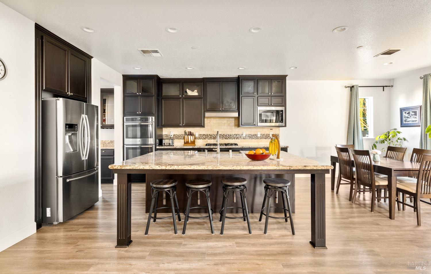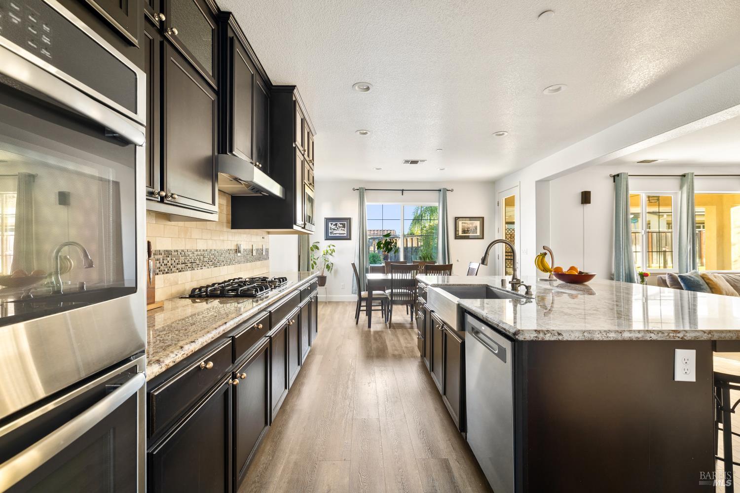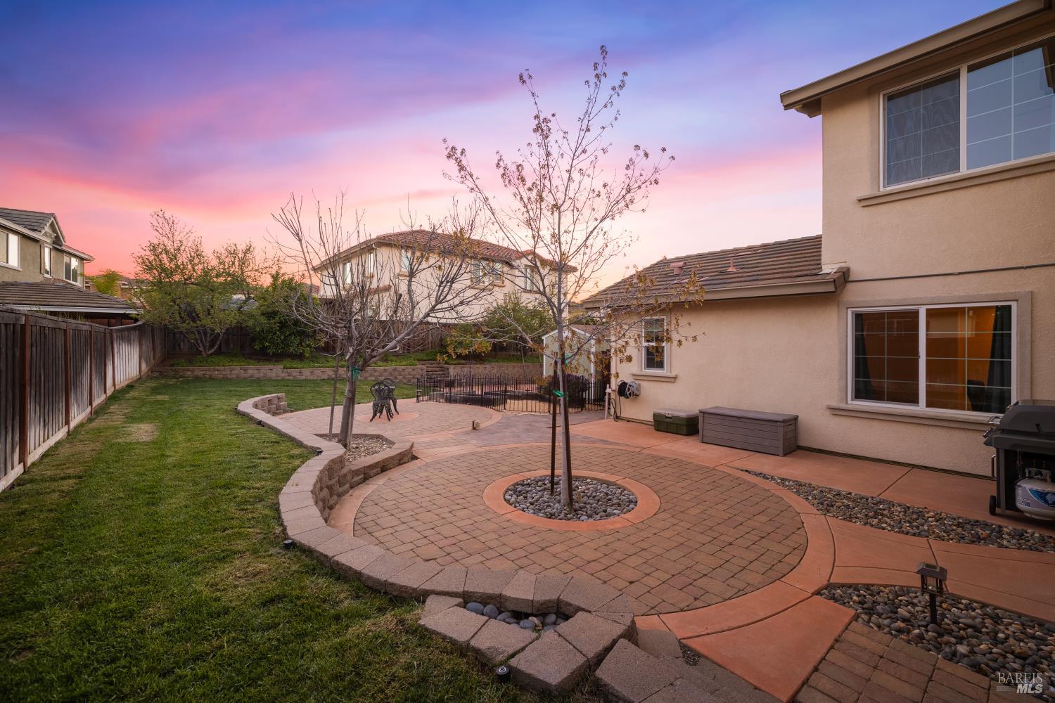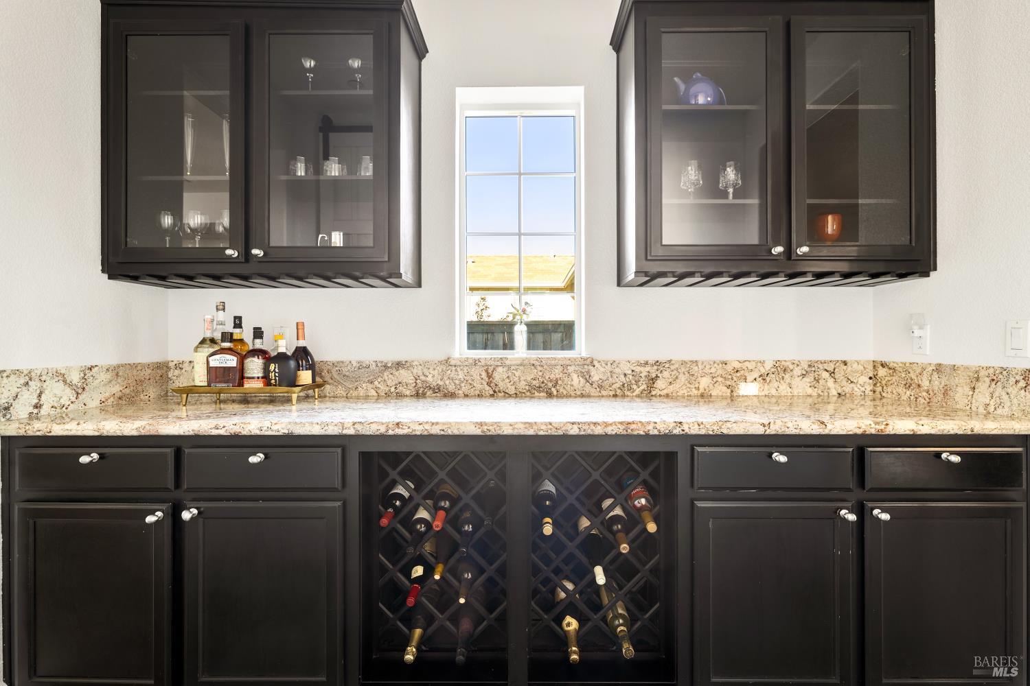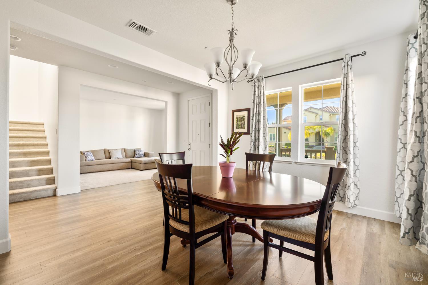 Tucked into Vacaville's highly sought after Cheyenne community in Browns Valley, this exceptional luxury residence with owned solar offers nearly 4,000 sq ft of beautifully designed living space on over a quarter acre premium lot with a 3-car garage and expanded driveway featuring pull through RV parking and backyard gate access. The impressive floorplan includes 6 bedrooms and 4.5 baths with 2 bedrooms on the main level including a private ensuite ideal for guests or multigenerational living plus an additional room (6th bedroom option) with exterior access, ideal for a home office, gym or playroom. The heart of the home is a stunning chef's kitchen with an oversized island with sink and bar seating, granite countertops, gas cooktop with hood, built-in double oven, newly installed dishwasher and built-in microwave as well as a spacious butler's pantry with wine storage and massive walk-in pantry, all opening to a large breakfast area and inviting great room with a gas fireplace. Elegant formal living and dining rooms create beautiful entertaining spaces while upstairs features 4 additional bedrooms including a luxurious primary suite with a spa-style bathroom with soaking tub, glass oversized shower, dual vanities and 2-walk in closets, plus a convenient upstairs laundry room with cabinetry and laundry closet. Interior upgrades include luxury vinyl plank flooring, recessed lighting, chandeliers, dual zone HVAC and a finished garage with epoxy flooring. The private backyard features a massive 13'x22' patio overhang with electrical and ceiling fan that anchors the space, creating the perfect setting for shaded gatherings and relaxed evenings. Additionally, retaining walls, garden, grass and patio areas, 8'x10' Tuff Shed and expansive side yards maximize the lot. Energy efficient features include dual pane windows, an upgraded tankless water heater and water softener. Located just minutes from parks, a top-ranked fitness center with a pool, shopping, dining and freeway access, this extraordinary Browns Valley home offers luxury living, space and flexibility in one of Vacaville's most desirable neighborhoods.