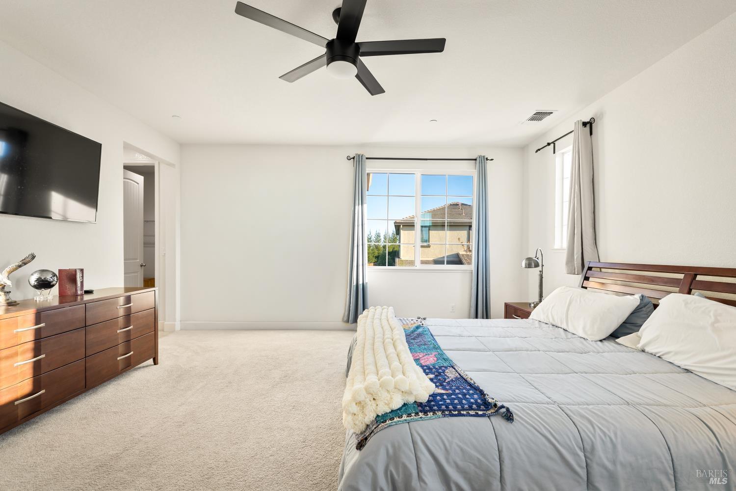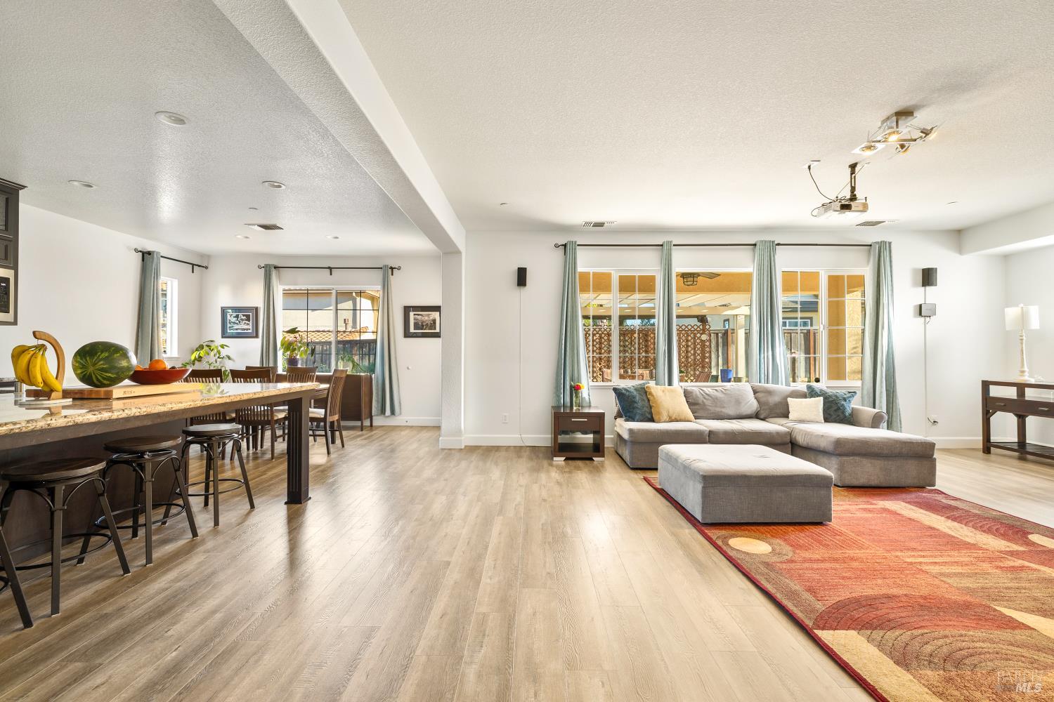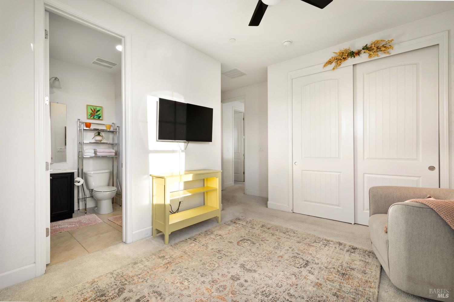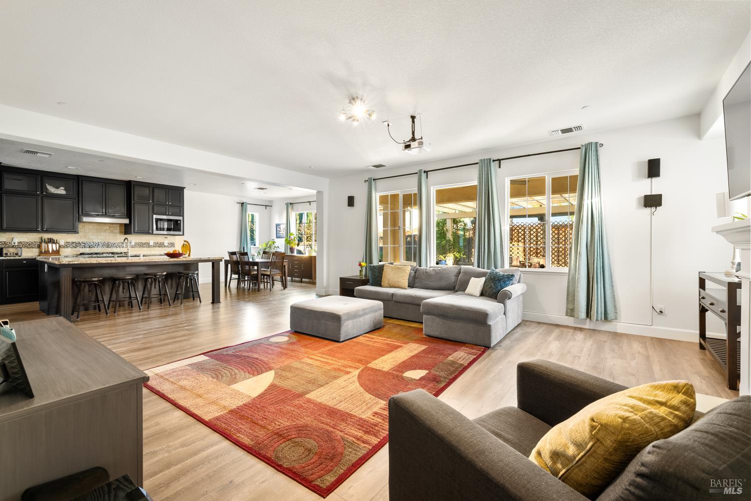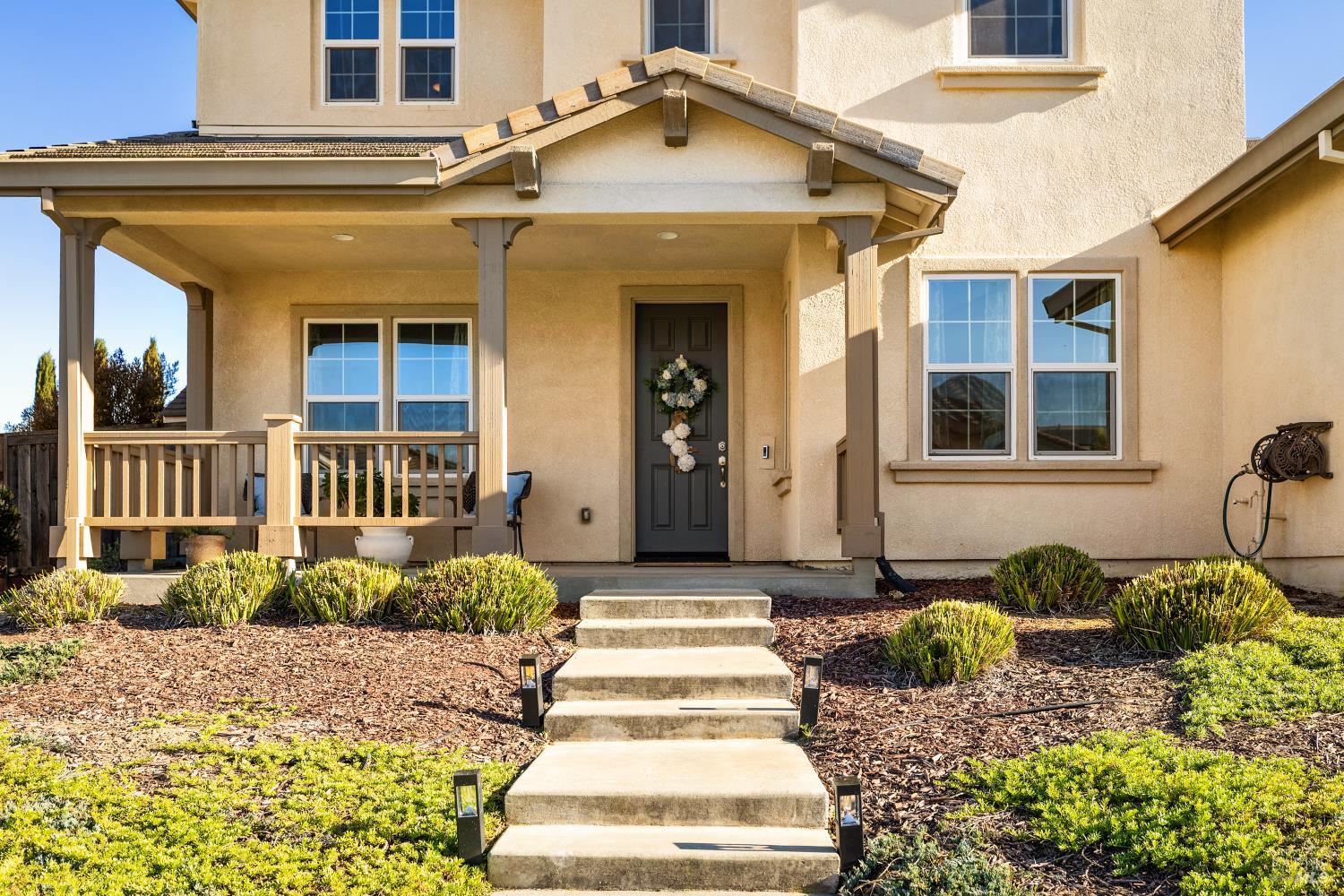 Tucked into Vacaville's highly sought after Cheyenne community in Browns Valley, this exceptional luxury residence with owned solar offers nearly 4,000 sq ft of beautifully designed living space on over a quarter acre premium lot with a 3-car garage and expanded driveway featuring pull through RV parking and backyard gate access. The impressive floorplan includes 6 bedrooms and 4.5 baths with 2 bedrooms on the main level including a private ensuite ideal for guests or multigenerational living plus an additional room (6th bedroom option) with exterior access, ideal for a home office, gym or playroom. The heart of the home is a stunning chef's kitchen with an oversized island with sink and bar seating, granite countertops, gas cooktop with hood, built-in double oven, newly installed dishwasher and built-in microwave as well as a spacious butler's pantry with wine storage and massive walk-in pantry, all opening to a large breakfast area and inviting great room with a gas fireplace. Elegant formal living and dining rooms create beautiful entertaining spaces while upstairs features 4 additional bedrooms including a luxurious primary suite with a spa-style bathroom with soaking tub, glass oversized shower, dual vanities and 2-walk in closets, plus a convenient upstairs laundry room with cabinetry and laundry closet. Interior upgrades include luxury vinyl plank flooring, recessed lighting, chandeliers, dual zone HVAC and a finished garage with epoxy flooring. The private backyard features a massive 13'x22' patio overhang with electrical and ceiling fan that anchors the space, creating the perfect setting for shaded gatherings and relaxed evenings. Additionally, retaining walls, garden, grass and patio areas, 8'x10' Tuff Shed and expansive side yards maximize the lot. Energy efficient features include dual pane windows, an upgraded tankless water heater and water softener. Located just minutes from parks, a top-ranked fitness center with a pool, shopping, dining and freeway access, this extraordinary Browns Valley home offers luxury living, space and flexibility in one of Vacaville's most desirable neighborhoods.