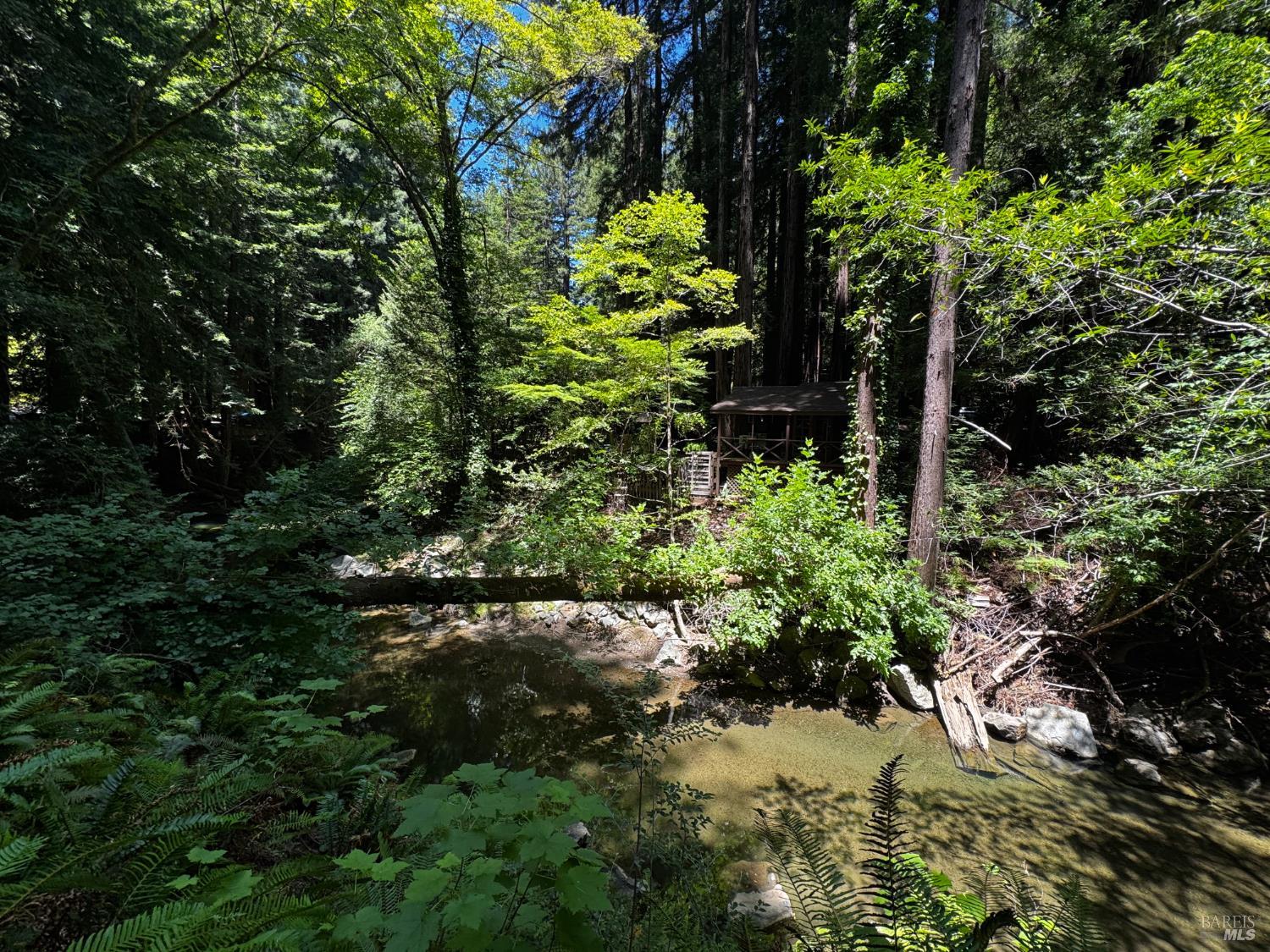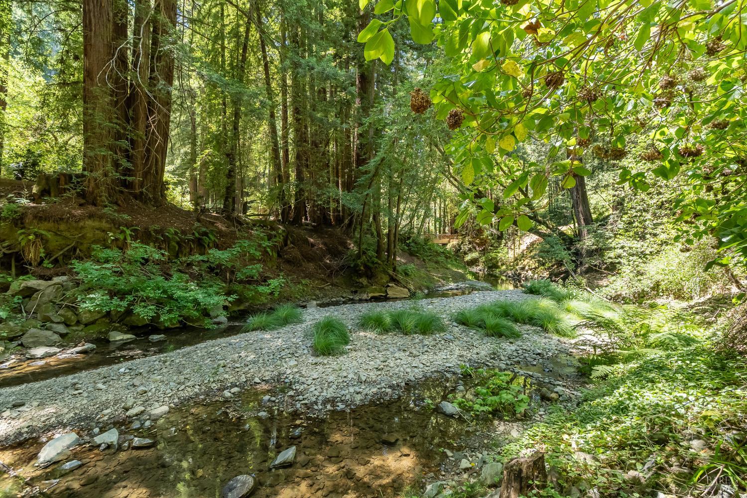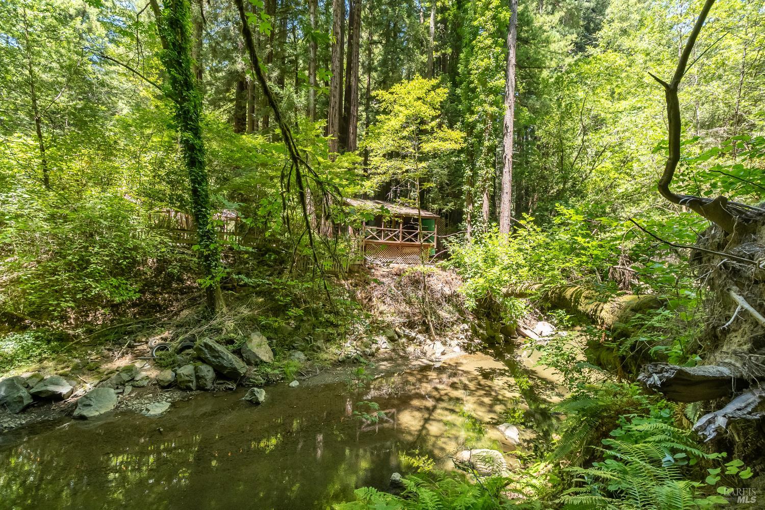 Nestled among the majestic redwoods alongside a picturesque span of Nicasio Creek, this house represents a perfect sense of balance: connected with nature, but with all the amenities of home. A rural and rustic feel, yet close to modernity. The peaceful sounds of flowing water and birds, with simple proximity to San Francisco (and high-speed fiber internet). For those seeking a tranquil retreat without being far from the action, this quaint main cabin, plus separate accessory unit, create the perfect compound for enjoying the natural surroundings and all that Marin County has to offer. This property spans just over an acre and has easy direct access to Lucas Valley Road, with the occasional passing of both cyclists and deer. Situated at a cinematically wide section of the Creek, this gated and fenced site feels totally encapsulated in privacy and nature. The year-round moving water ranges from gentle summer stream, ideal for cooling off barefoot, to more pronounced in the wet season. A large deck situated directly at the water's edge is the quintessential setting for morning coffee, afternoon reading, or forest dinners. Ample space for gardening, outdoor entertaining, or possible expansion (buyer to verify) make this an exciting opportunity. World class hiking and biking are at your doorstep, and it's a short drive to Point Reyes and the coast. This rarely available serene property and its evergreen foliage is ready for its new owners! As this home is still occupied by its current owners, please do not disturb.