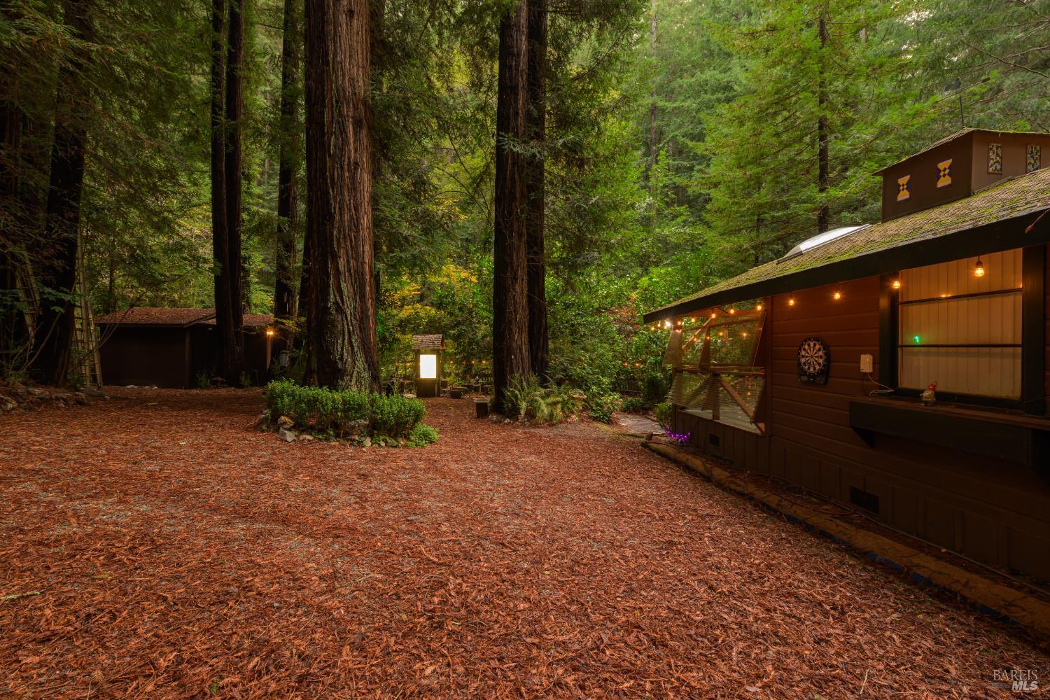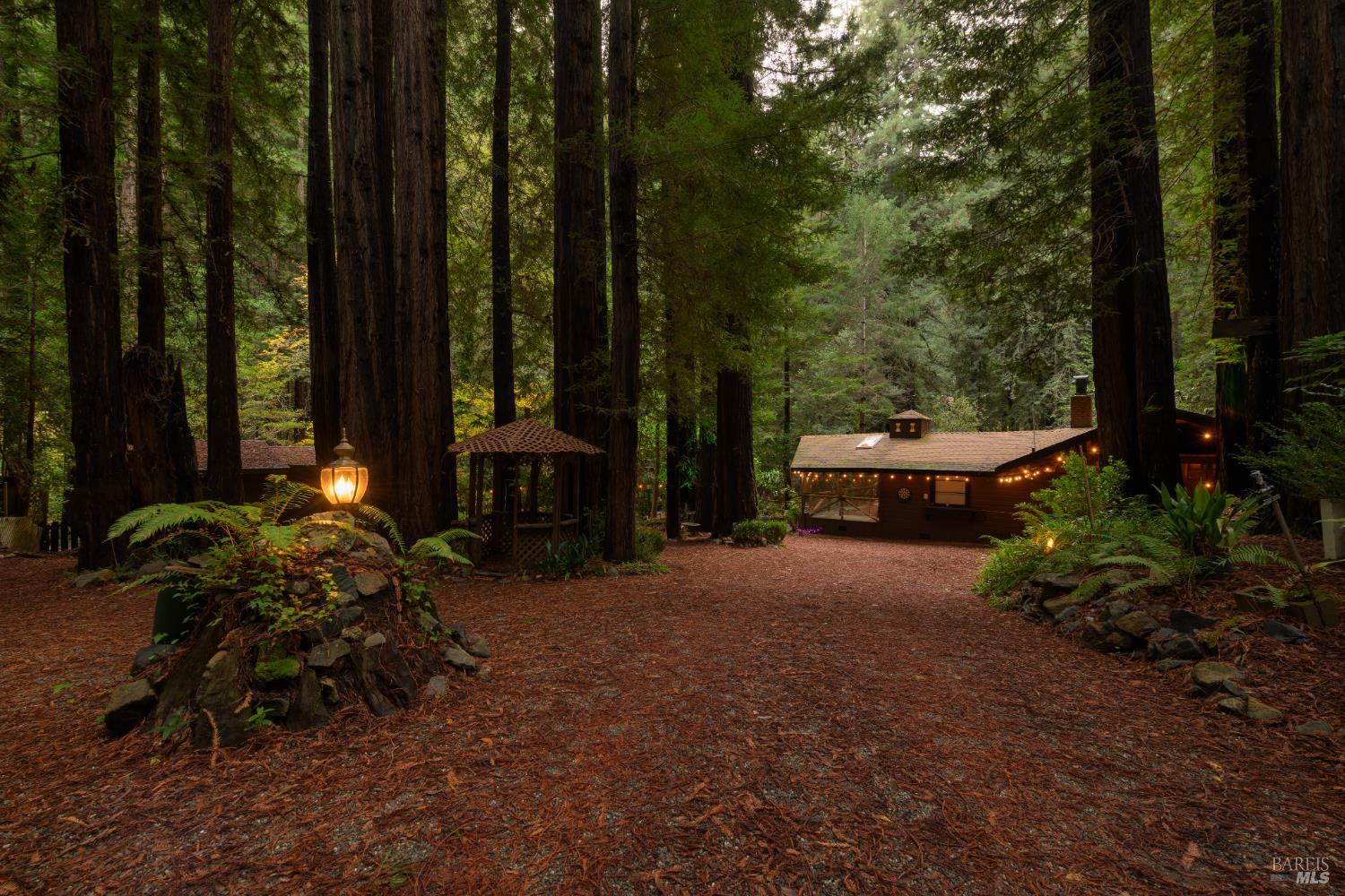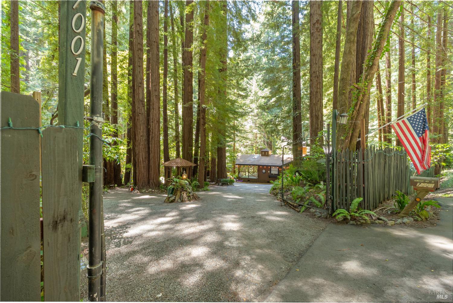 Nestled among the majestic redwoods alongside a picturesque span of Nicasio Creek, this house represents a perfect sense of balance: connected with nature, but with all the amenities of home. A rural and rustic feel, yet close to modernity. The peaceful sounds of flowing water and birds, with simple proximity to San Francisco (and high-speed fiber internet). For those seeking a tranquil retreat without being far from the action, this quaint main cabin, plus separate accessory unit, create the perfect compound for enjoying the natural surroundings and all that Marin County has to offer. This property spans just over an acre and has easy direct access to Lucas Valley Road, with the occasional passing of both cyclists and deer. Situated at a cinematically wide section of the Creek, this gated and fenced site feels totally encapsulated in privacy and nature. The year-round moving water ranges from gentle summer stream, ideal for cooling off barefoot, to more pronounced in the wet season. A large deck situated directly at the water's edge is the quintessential setting for morning coffee, afternoon reading, or forest dinners. Ample space for gardening, outdoor entertaining, or possible expansion (buyer to verify) make this an exciting opportunity. World class hiking and biking are at your doorstep, and it's a short drive to Point Reyes and the coast. This rarely available serene property and its evergreen foliage is ready for its new owners! As this home is still occupied by its current owners, please do not disturb.