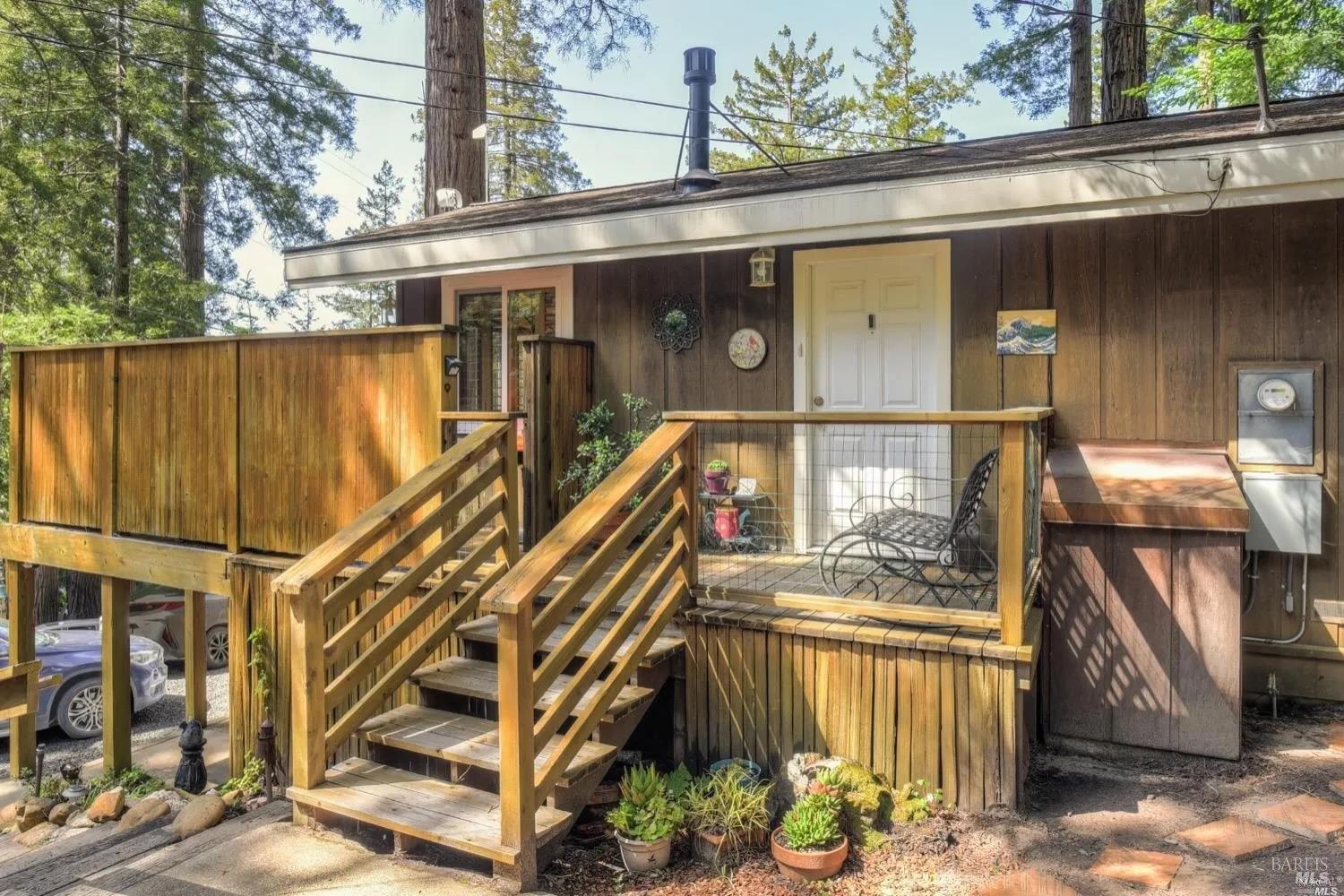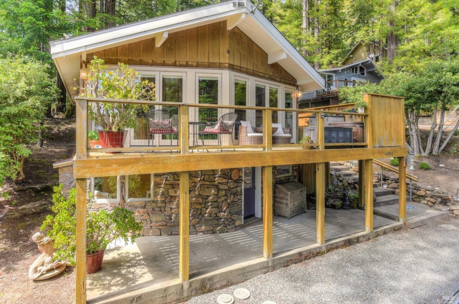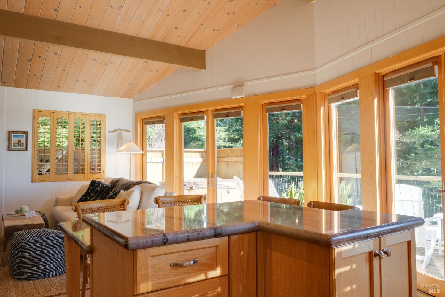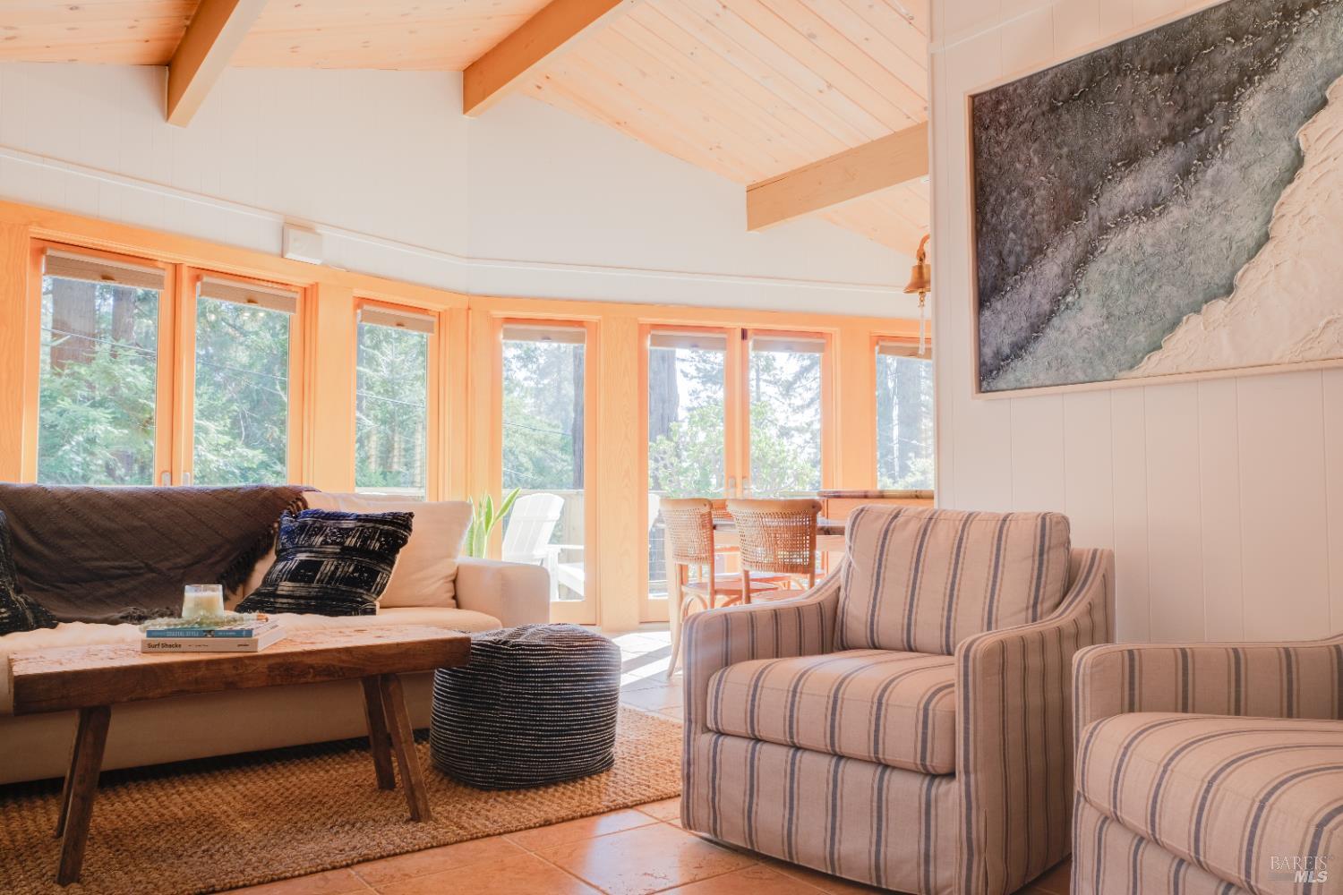 Your Beach House awaits! In a delightful coastal neighborhood, just above Anchor Bay Village, with deeded beach access to nearby Anchor Bay Beach. Walk to the local grocery store, Thai Restaurant, coffee shop or yoga studio, or continue down the path to the beach. Magical redwoods surround the home, which also gets good sun, even some space for gardening. Enjoy tranquil ocean views through the trees, and gorgeous sunsets every evening. In the living space...beautiful french doors frame the views at the living room and kitchen, opening out to the south facing front deck with a private hot tub, BBQ and outdoor seating. The remodeled kitchen features a beautiful island dining bar with Granite countertops, Oak cabinets and upgraded appliances. A propane fireplace keeps the living spaces warm and cozy, and there is also in-floor heating on the main level, added in 2019. The main living space features two main bedrooms and a full bath. A lower level guest room/studio, remodeled in 2014-2015, has a separate entrance, built-in Murphy bed, storage, tiled floors and a full bath with jetted tub/shower and stacked washer/dryer. New roof in 2013. This home is served by public water, sewer, propane, and high-speed internet. Located in the heart of the Banana Belt, this little neighborhood gets the best weather in town! Great for part-time, full-time or vacation rental. Sold furnished and ready to go for your coastal adventures!