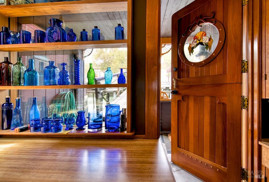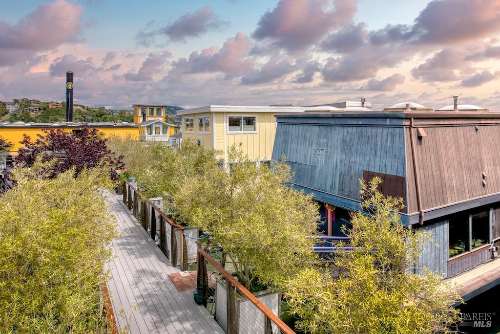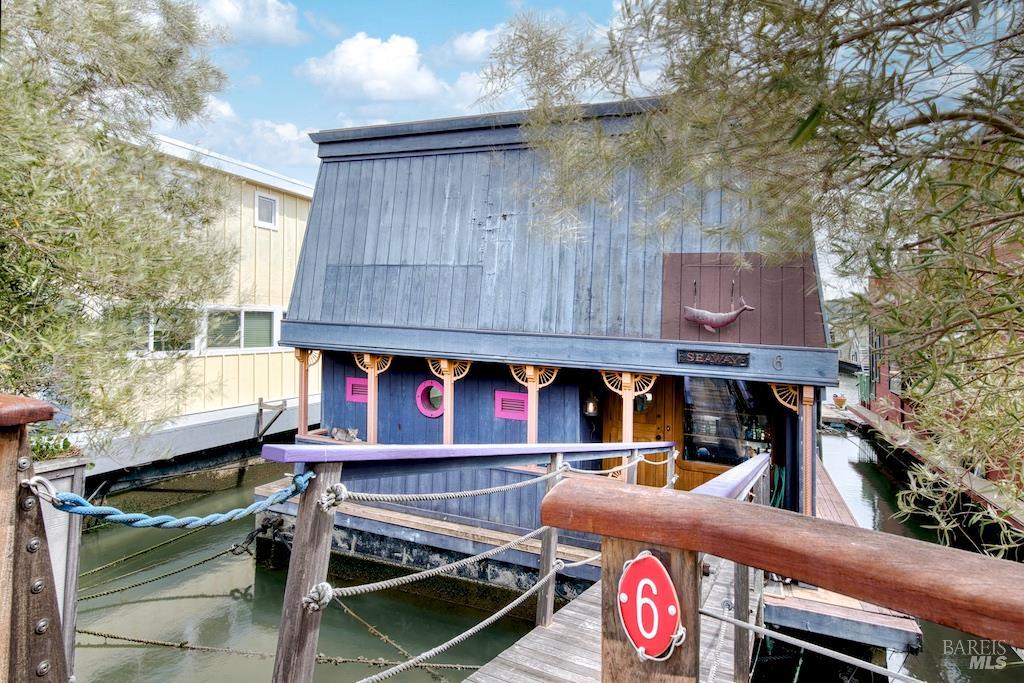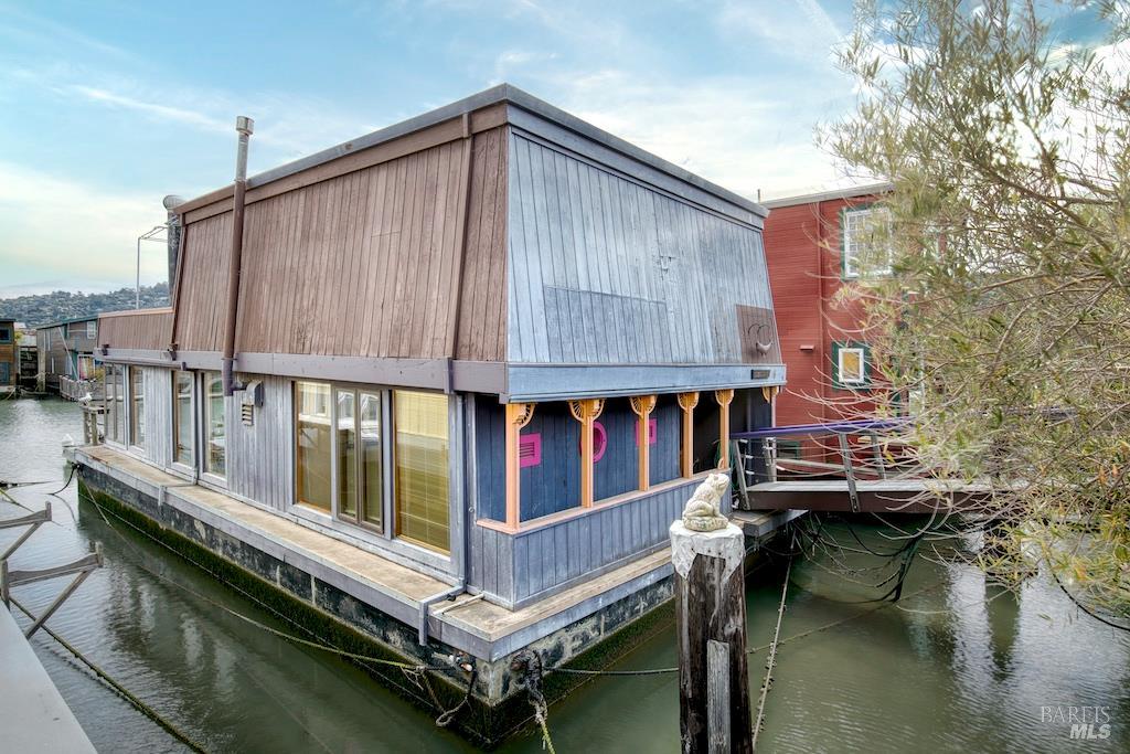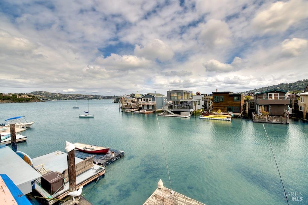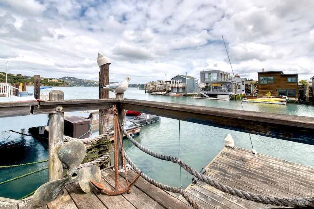 Perched close near the end of the dock, where the world seems to melt into shimmering blue, 6 Yellow Ferry Harbor is not just a home, it's a story waiting to be continued. Welcome to Seaway. Born in 1954 as a humble barge and reimagined in the late 1970s atop a sturdy ferro-cement hull, this floating retreat carries decades of character, soul, and possibility within its walls. With just under 1,700 square feet of living space, every inch whispers history while inviting transformation. Step inside, and the great room immediately steals your breath. One wall, rich with warm teak, grounds the space in timeless elegance. The other? Pure glass-framing the ever-changing canvas of water, sky, and distant headlands. Light pours in from every angle, dancing across skylights and windows, wrapping the home in a constant glow. The primary suite is nothing short of expansive a sanctuary within a sanctuary offering endless potential to reimagine, reshape, or even divide into additional rooms. Nearby, a separate office awaits your creativity, whether as a studio, retreat, or quiet escape. And then there's the staircase crowned by an original floor-to-ceiling stained glass window, casting jeweled light as you ascend, a daily moment of magic. Outside, the experience only deepens. An expansive terrace stretches toward the horizon, delivering sweeping, cinematic views of the bay, Strawberry Point, and Belvedere. Mornings begin with coffee and mist rising off the water. Evenings end with sunsets that feel almost unreal. Adventure is always just a step away. Launch your kayak at dawn, or cruise over in your Boston Whaler for waterfront dining or Sausalito summer concerts. Your private dock generous in size stands ready to host every water-bound dream. Seaway is a fixer, yes but that's where the magic lies. This is not just a property. It's an invitation. To dream. To design. To create something utterly one-of-a-kind. Bring your vision. Bring your style. And let Seaway become the floating masterpiece it was always meant to be.