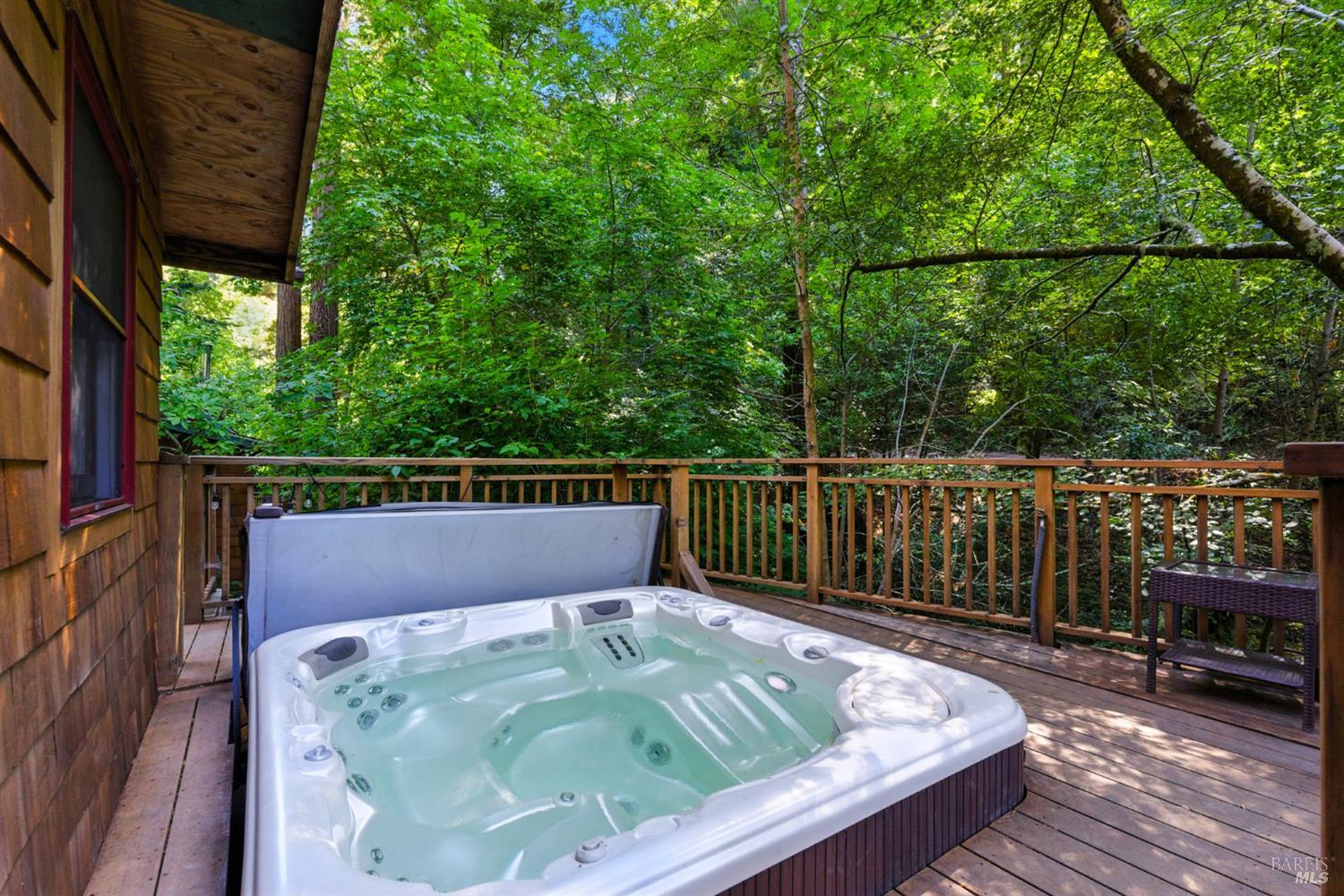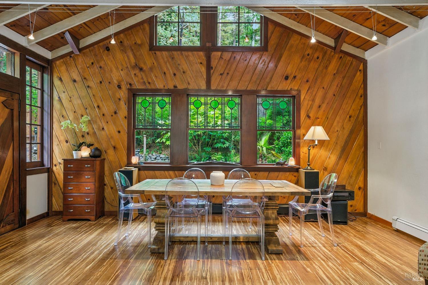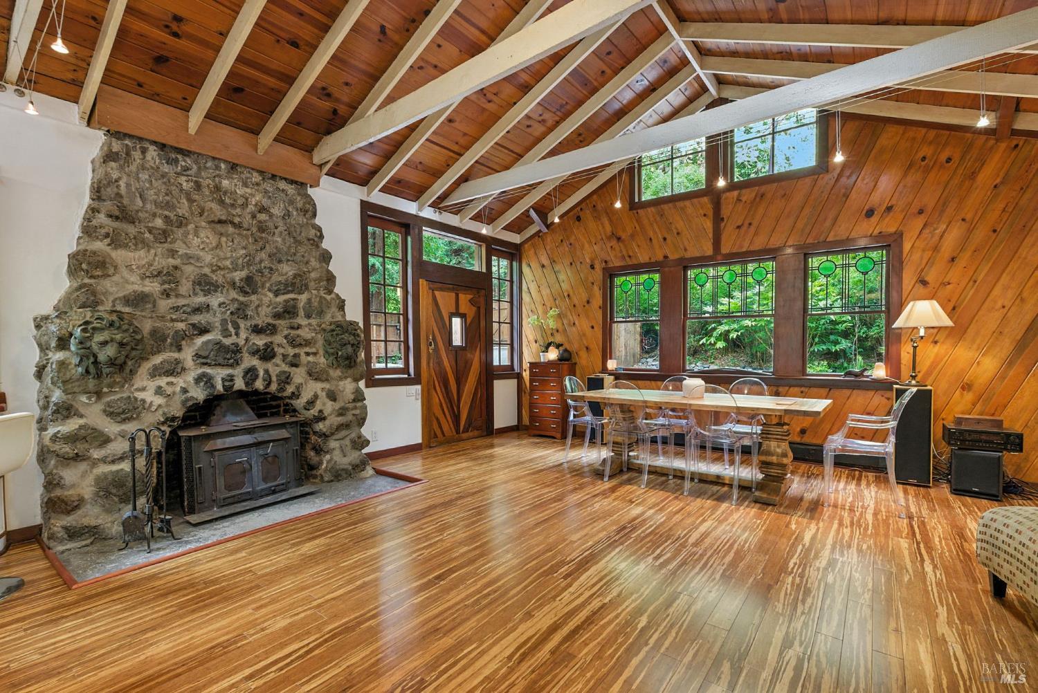 Lagunitas Wonder Lodge Step into a piece of West Marin history with this enchanting gated compound, originally built in 1907 and steeped in local folklore. Rumored to have hosted President Theodore Roosevelt during a visit to California, this rare estate captures the magic and mystique of a bygone era while offering the flexibility and amenities suited to modern living. Nestled along the serene banks of the Sn Geronimo Creek and framed by majestic redwood groves, these sprawling level grounds offer privacy and beauty, uniquely suited as a personal retreat, creative compound, or event venue. The main residence features 4 bedrooms and 3 baths and can easily be configured as two 2-bedroom living spaces, perfect for multi-generational living or income potential. The east side of the property offers a charming detached 1-bedroom, 1-bath guest house with a full kitchen, ideal for hosting or rental opportunities. Additionally, a detached studio/office provides a quiet space for work or artistic pursuits. Enjoy multiple private decks, two luxurious spa areas, and an abundance of outdoor gathering spaces that seamlessly blend with the natural surroundings. Whether you're seeking a peaceful retreat, a home with rich character, or a flexible investment property, this extraordinary estate is a rare find in the heart of West Marin. This is truly a destination property, offering the perfect balance of Northern California living for both indoor and outdoor entertaining---all just minutes from downtown Fairfax, at the gateway to some of West Marin's best parks and open space preserves, world class beaches and some of the finest hiking, biking, and riding trails in the Bay Area.