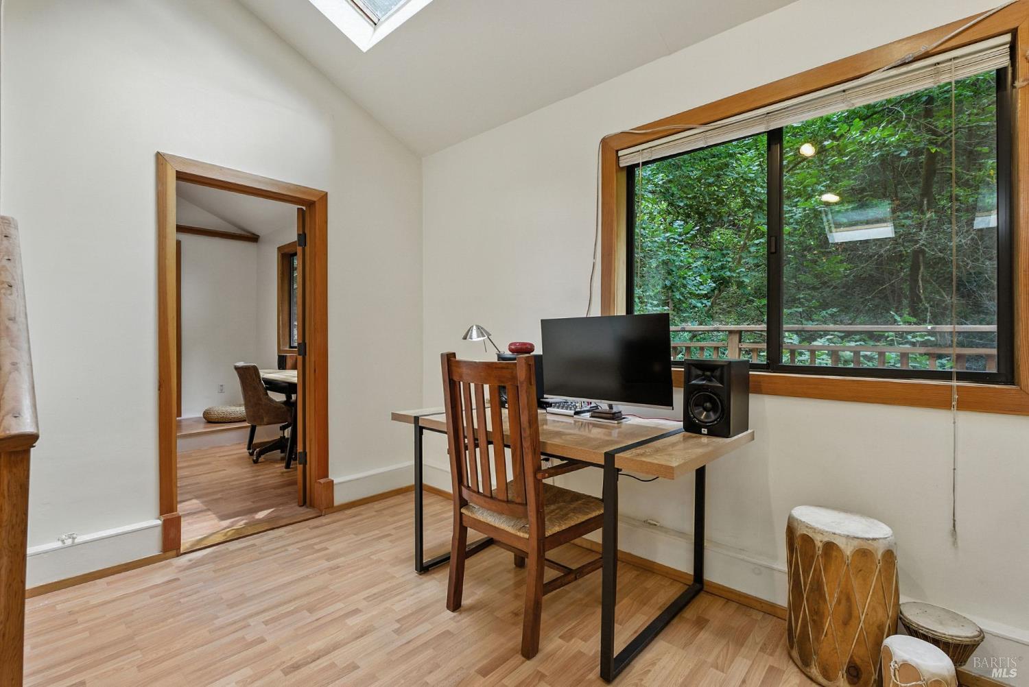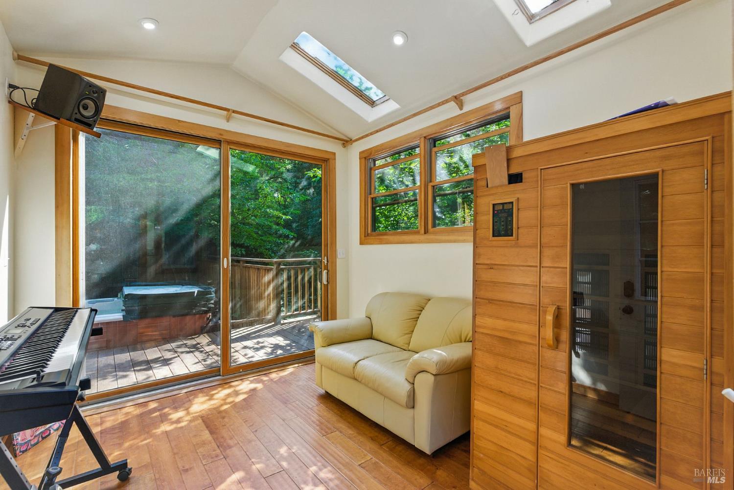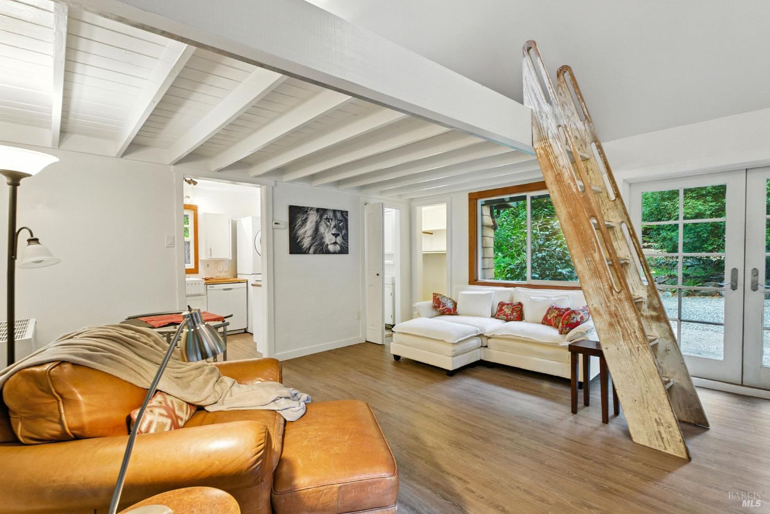 Lagunitas Wonder Lodge Step into a piece of West Marin history with this enchanting gated compound, originally built in 1907 and steeped in local folklore. Rumored to have hosted President Theodore Roosevelt during a visit to California, this rare estate captures the magic and mystique of a bygone era while offering the flexibility and amenities suited to modern living. Nestled along the serene banks of the Sn Geronimo Creek and framed by majestic redwood groves, these sprawling level grounds offer privacy and beauty, uniquely suited as a personal retreat, creative compound, or event venue. The main residence features 4 bedrooms and 3 baths and can easily be configured as two 2-bedroom living spaces, perfect for multi-generational living or income potential. The east side of the property offers a charming detached 1-bedroom, 1-bath guest house with a full kitchen, ideal for hosting or rental opportunities. Additionally, a detached studio/office provides a quiet space for work or artistic pursuits. Enjoy multiple private decks, two luxurious spa areas, and an abundance of outdoor gathering spaces that seamlessly blend with the natural surroundings. Whether you're seeking a peaceful retreat, a home with rich character, or a flexible investment property, this extraordinary estate is a rare find in the heart of West Marin. This is truly a destination property, offering the perfect balance of Northern California living for both indoor and outdoor entertaining---all just minutes from downtown Fairfax, at the gateway to some of West Marin's best parks and open space preserves, world class beaches and some of the finest hiking, biking, and riding trails in the Bay Area.